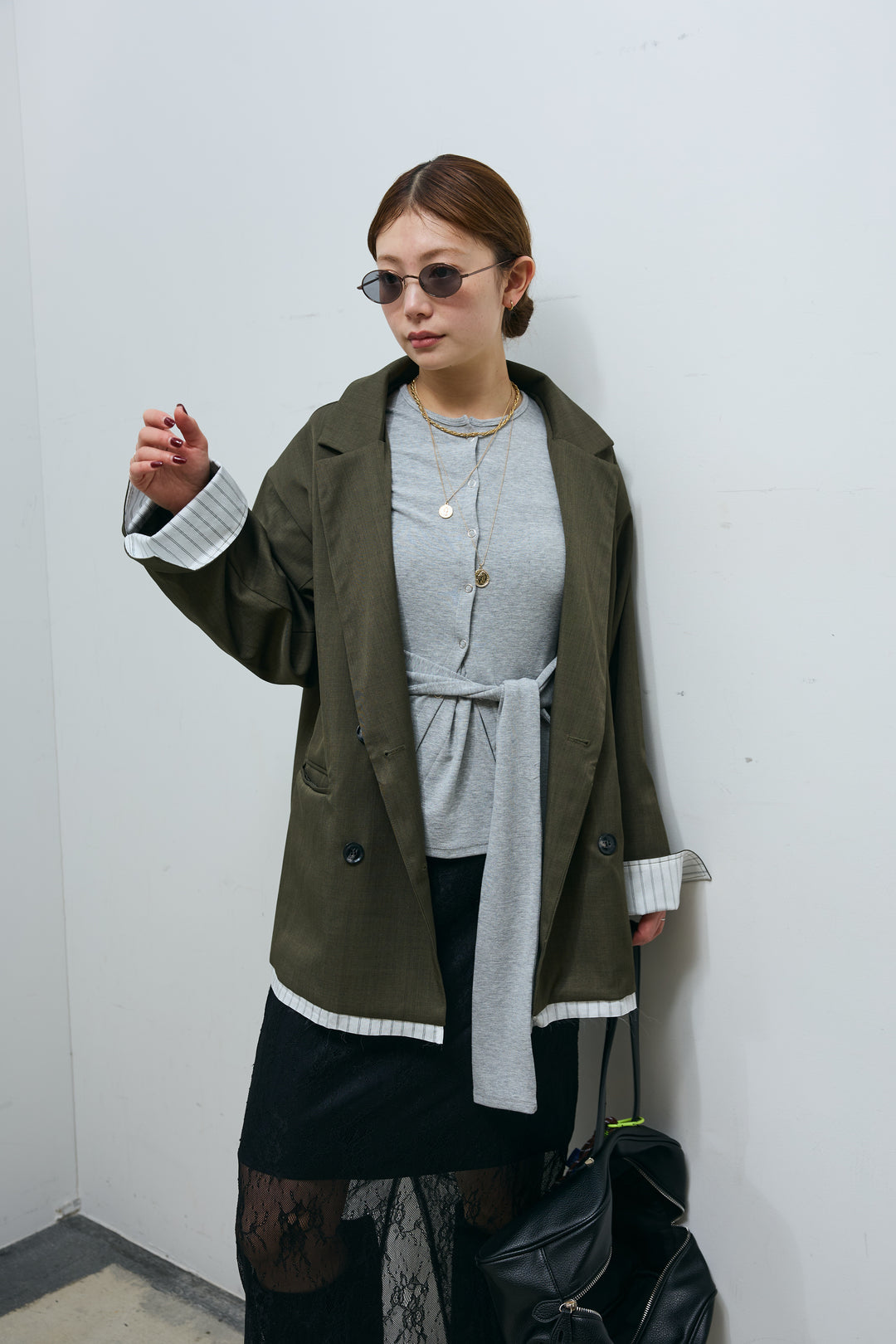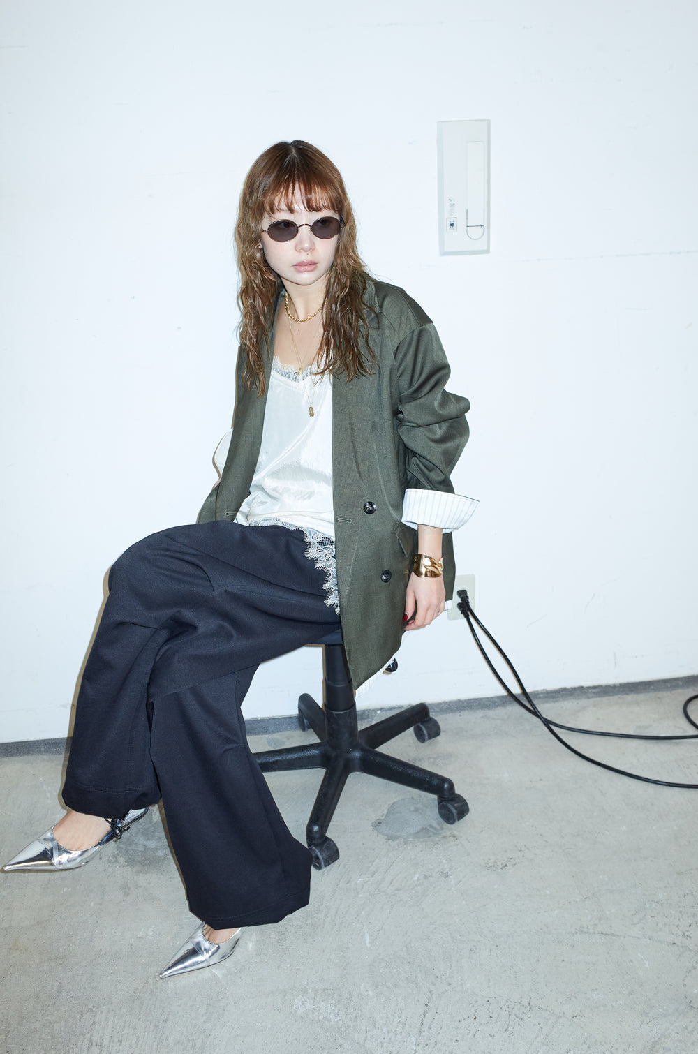 [予約/SET]TRツイルレイヤードダブルテーラードジャケット+サテンレースキャミソール+ランダムニータックデザインワイドパンツ(3set)