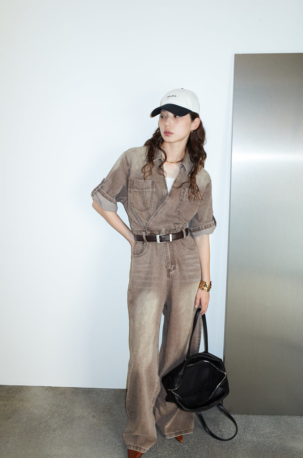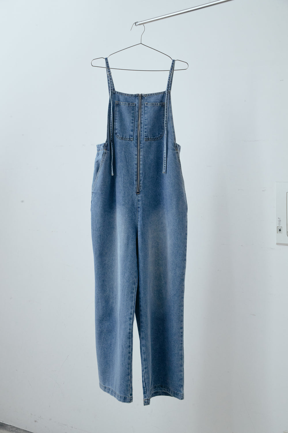 [予約]フロントジップストラップデザインデニムサロペット