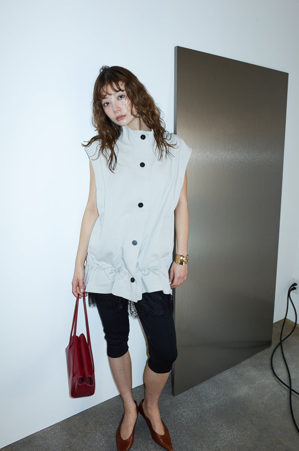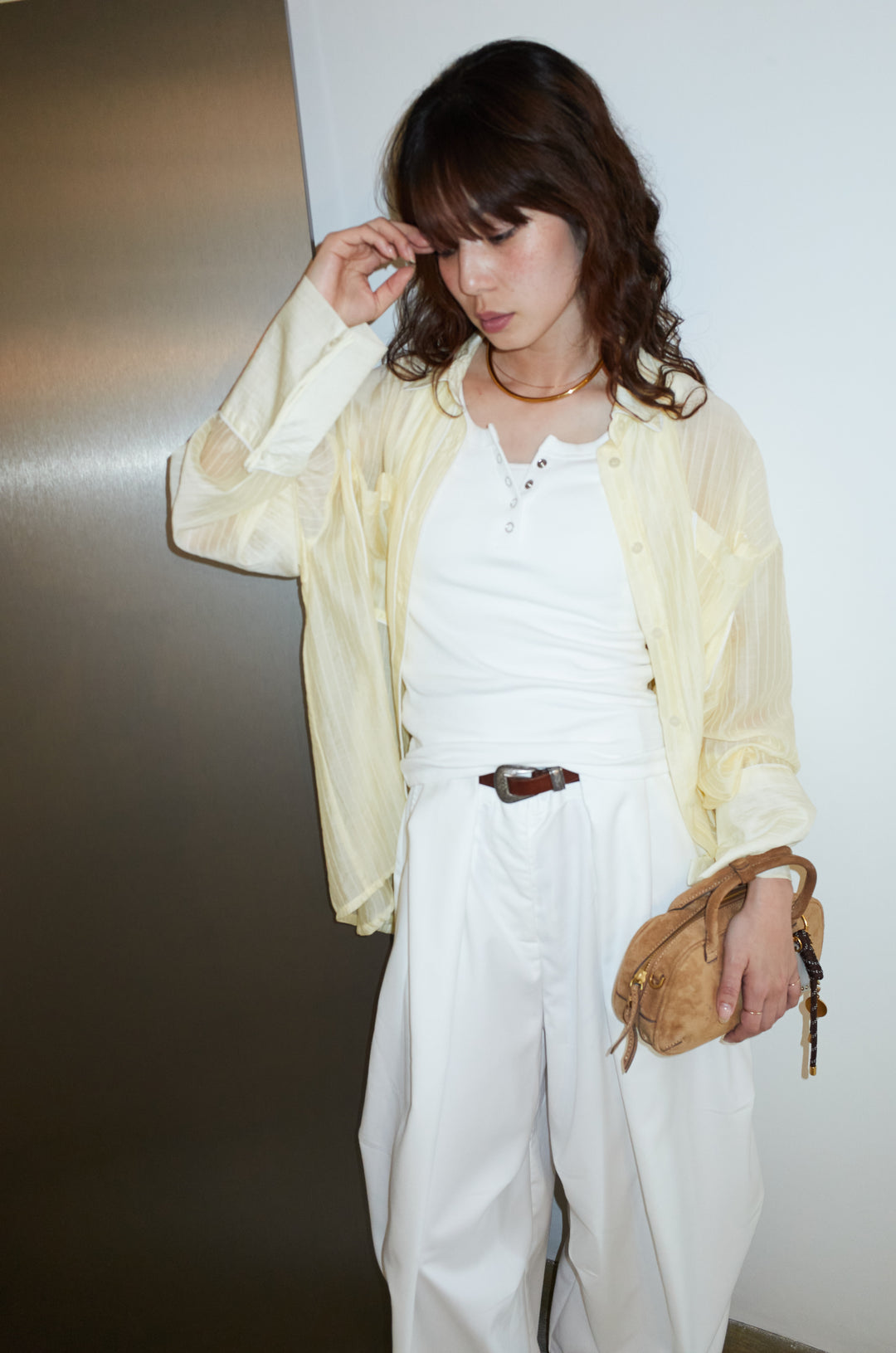[予約/SET]裾スカラップレースシャツ+ハイウエストタックワイドパンツ(2set)