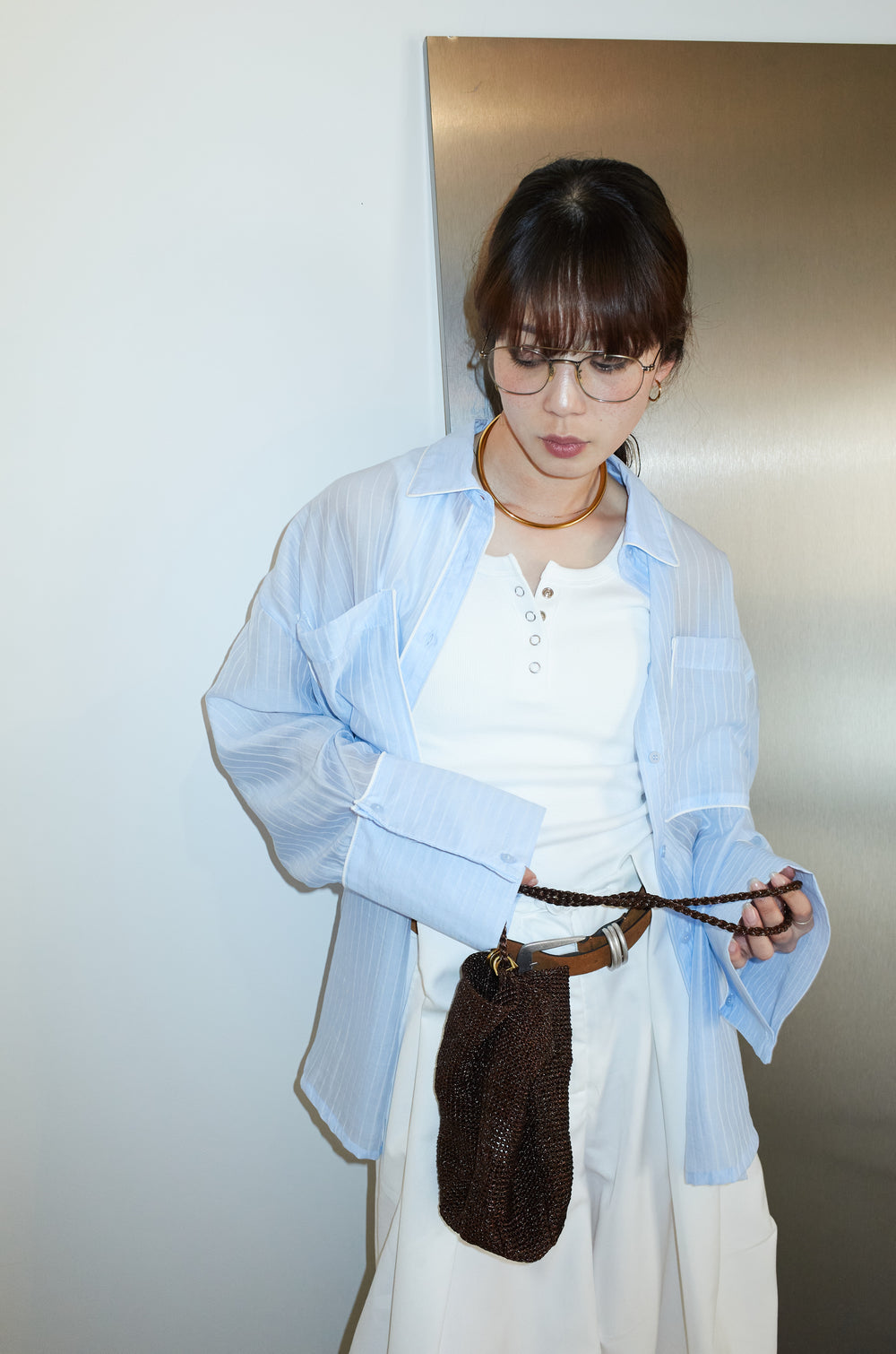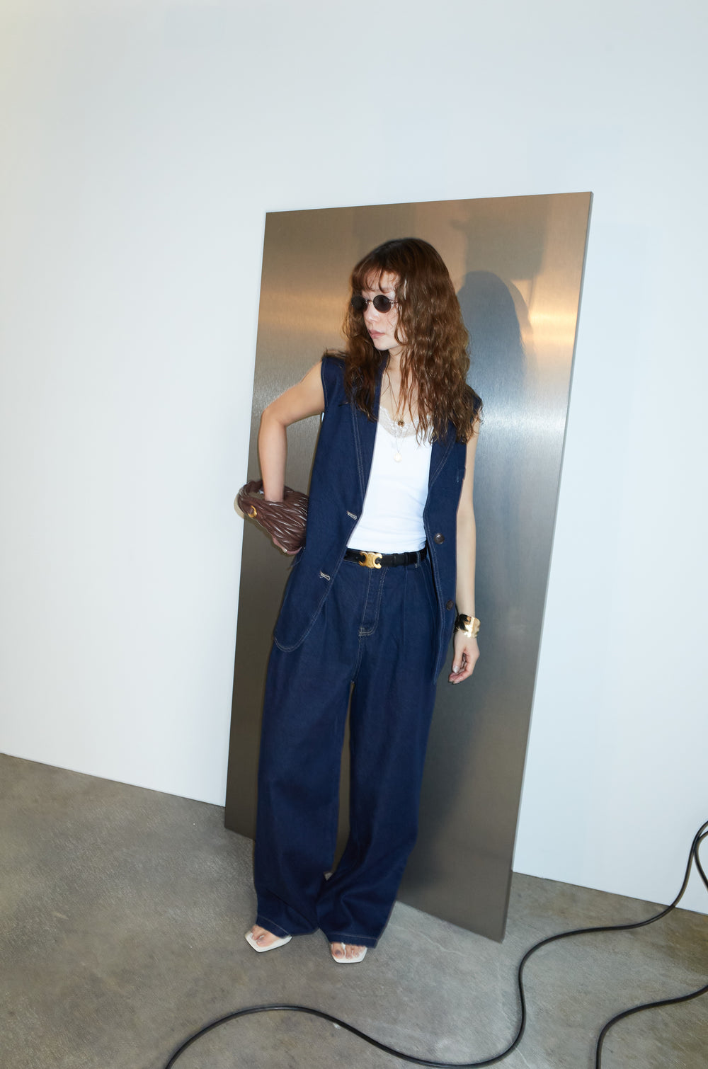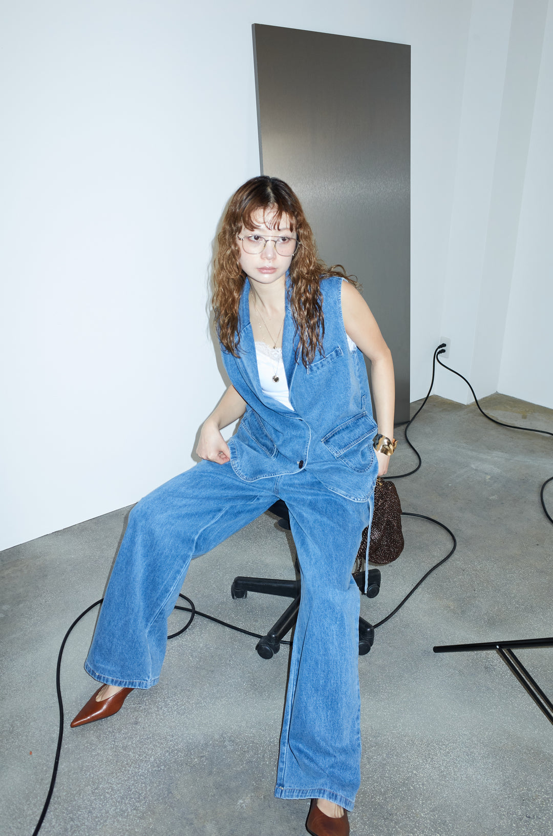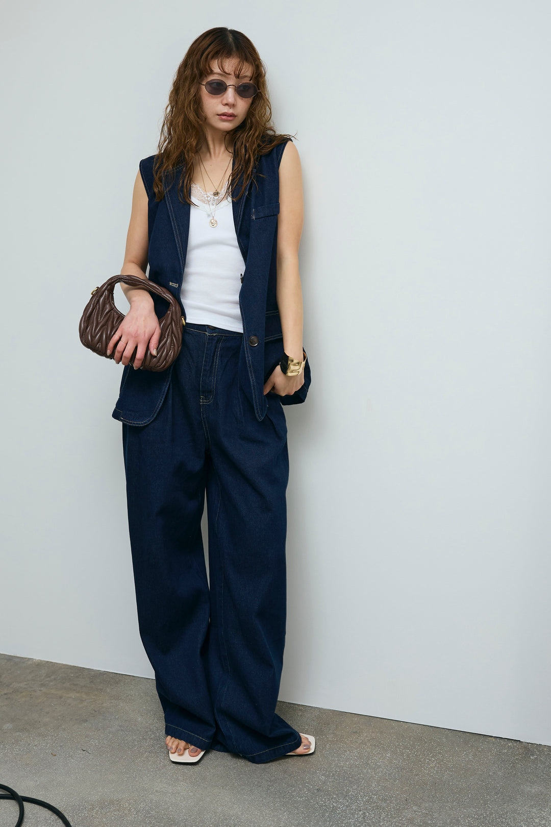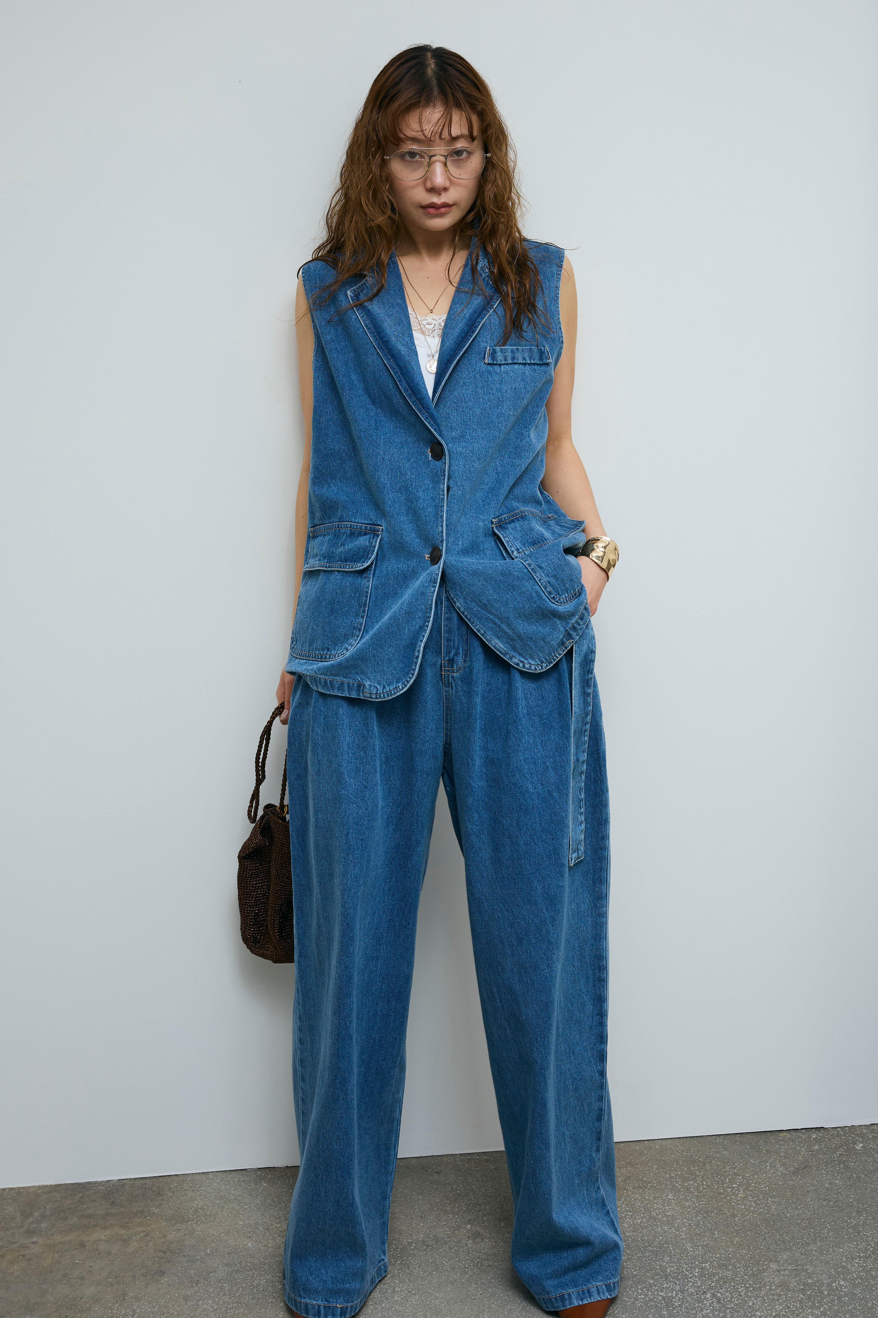 [予約/SET]デニムセットアップ+カップ付きカットリブレース付きキャミ(2set)