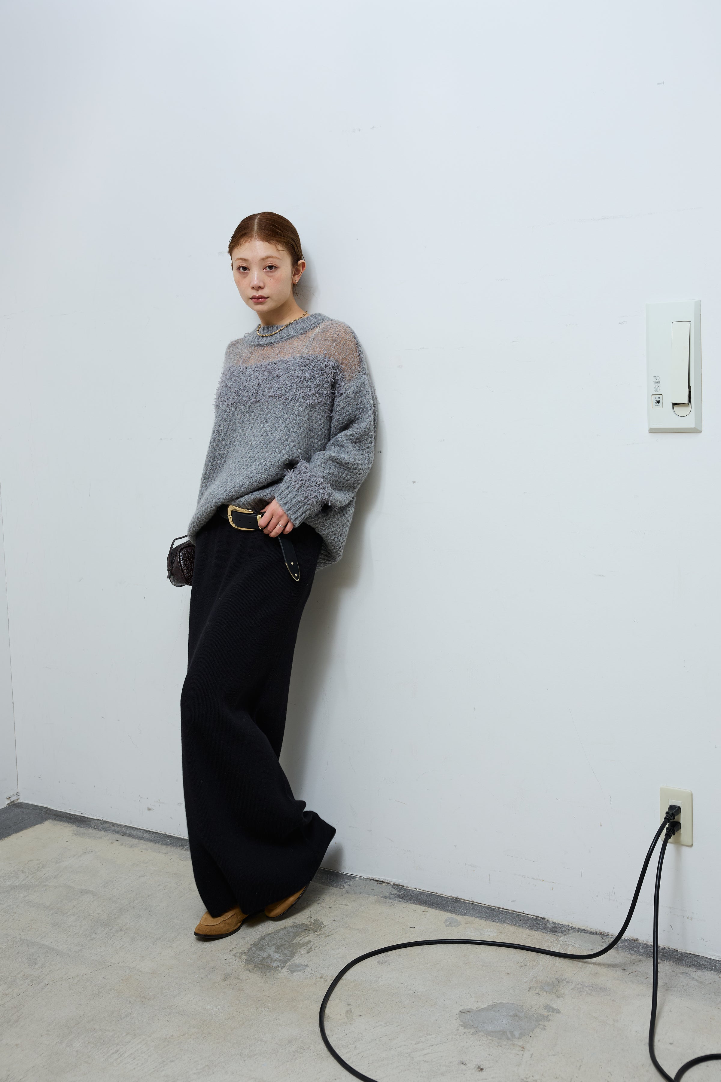 [予約/SET]デニムカラーラガーニットPO+ベルト付きリバースタックパンツ(2set)
