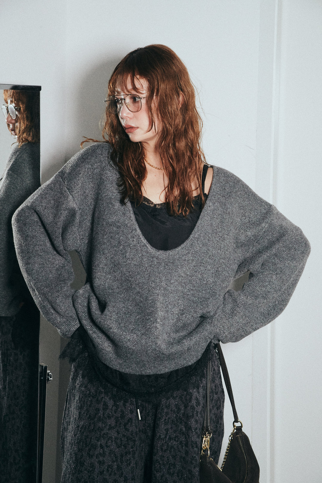 [予約/SET]ディープカットニット+サテンレースキャミソール(2set)
