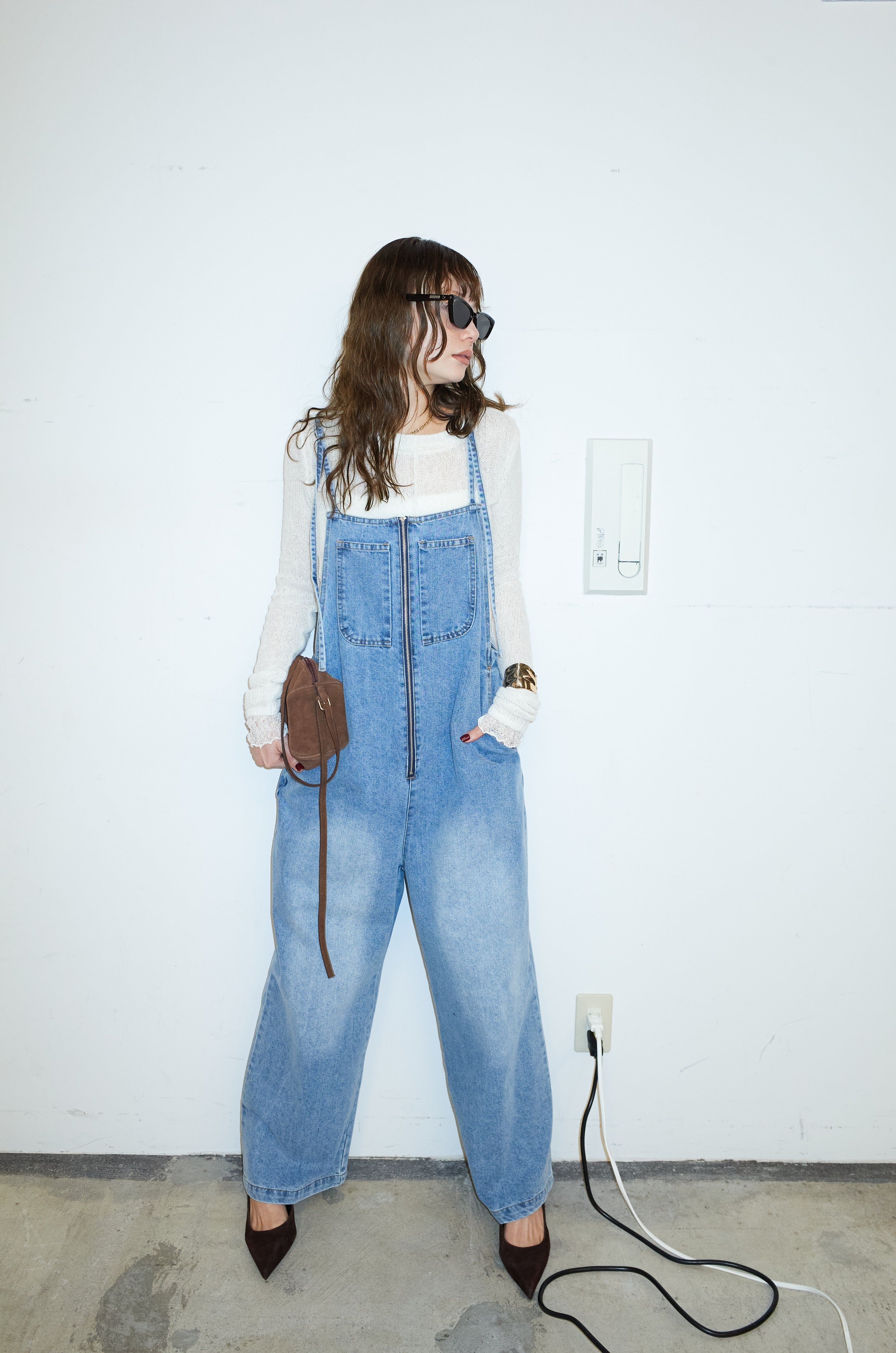 [予約/SET]モヘアセンターリンキングシアーニット+フロントジップストラップデザインデニムサロペット(2set)