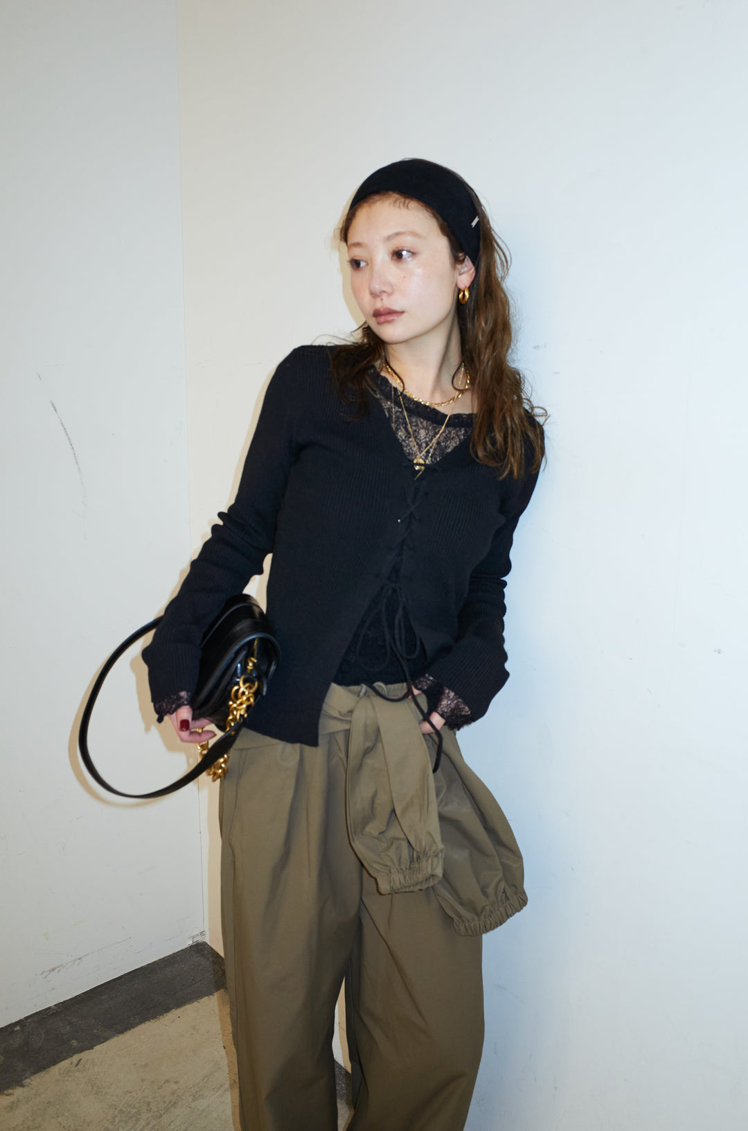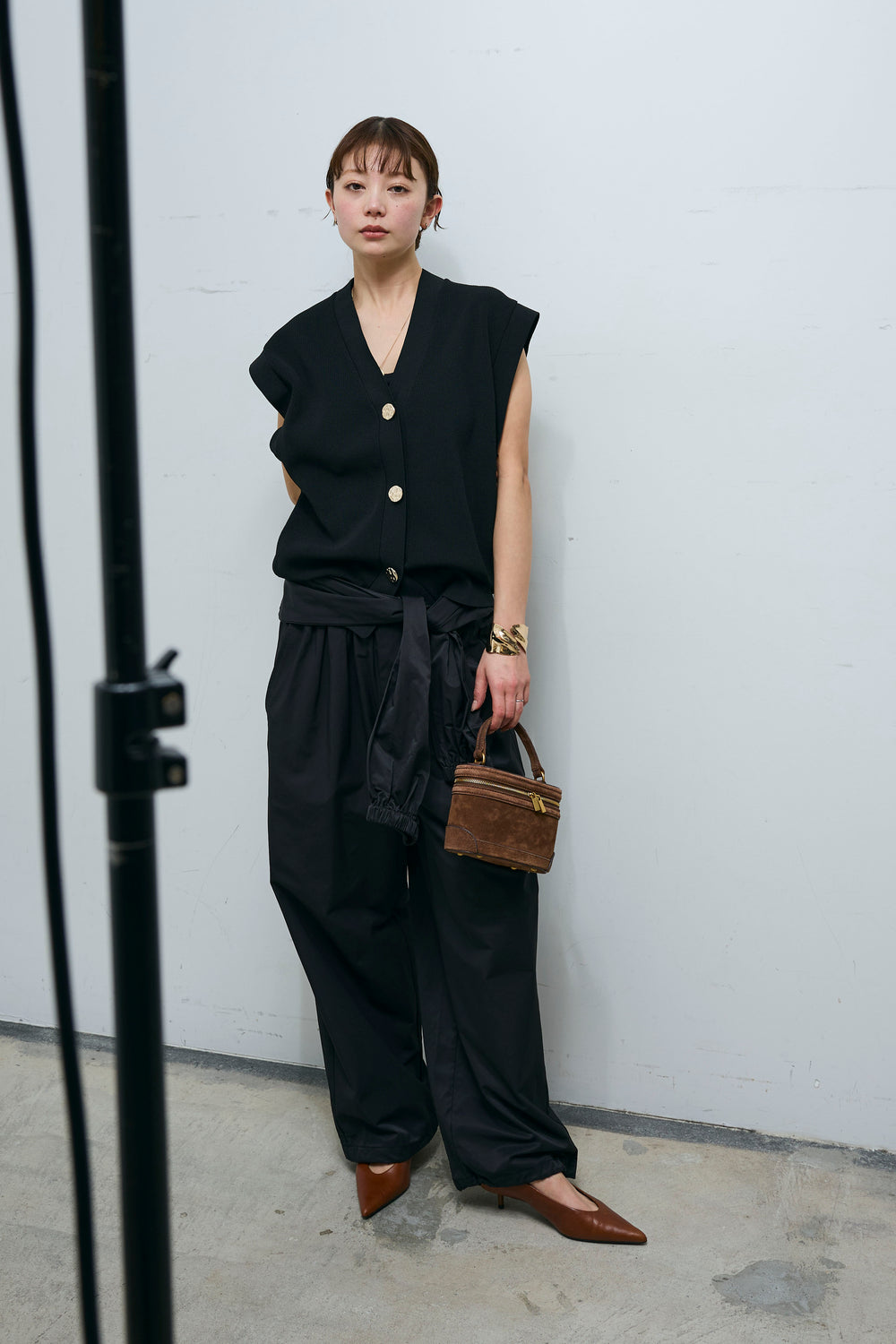 [予約/SET]レースアップ2wayリブニット+シアーレーストップス+合繊ツイルスタンドウエストラップジョガーPT(3set)