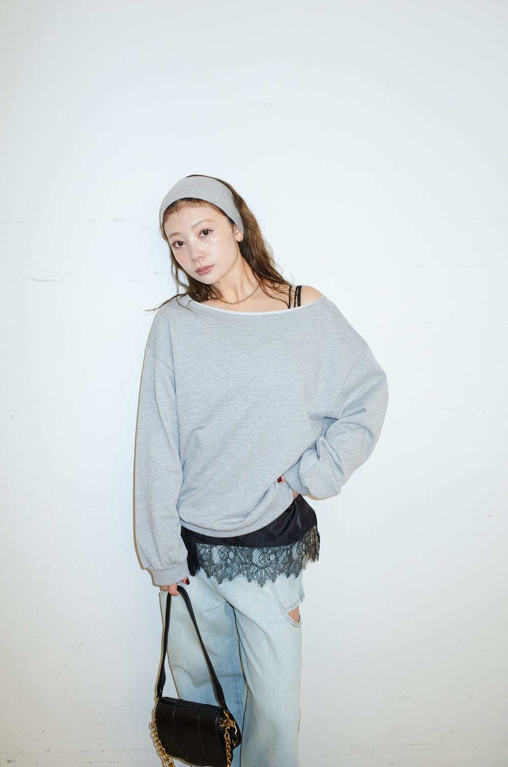 [予約/SET]ワイドネックスウェットPO+サテンレースキャミソール(2set)