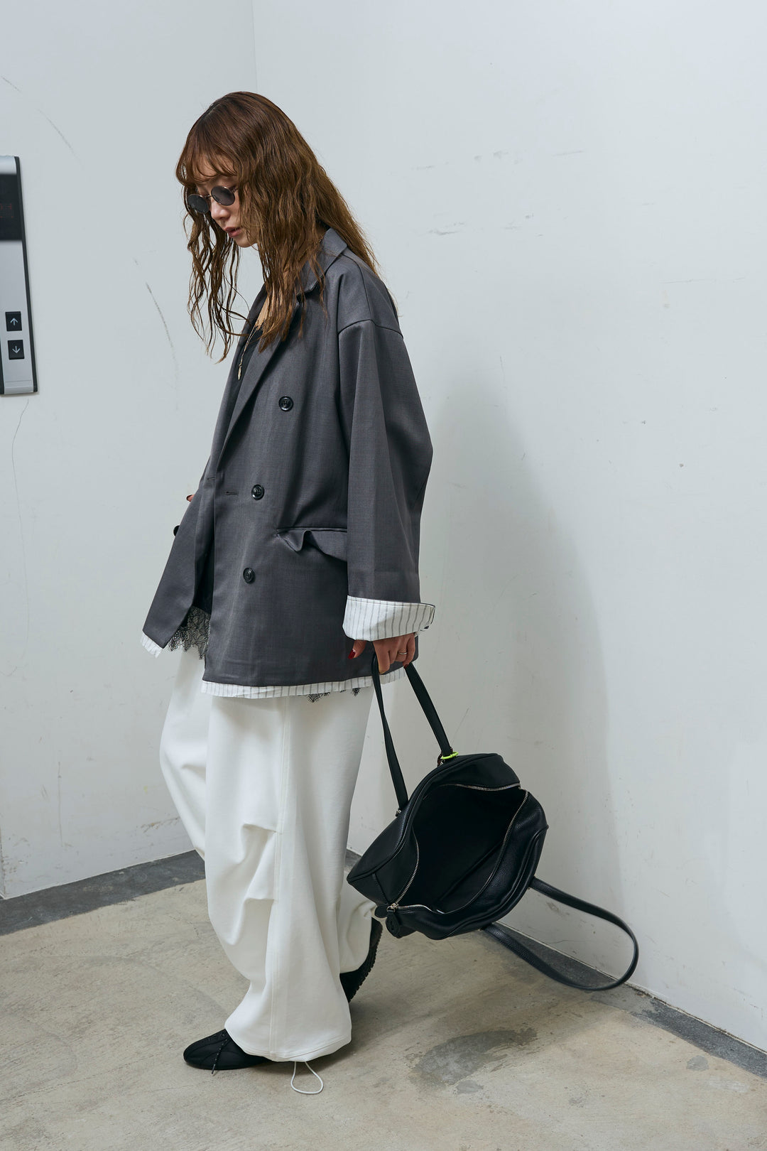 [予約/SET]TRツイルレイヤードダブルテーラードジャケット+ランダムニータックデザインワイドパンツ(2set)