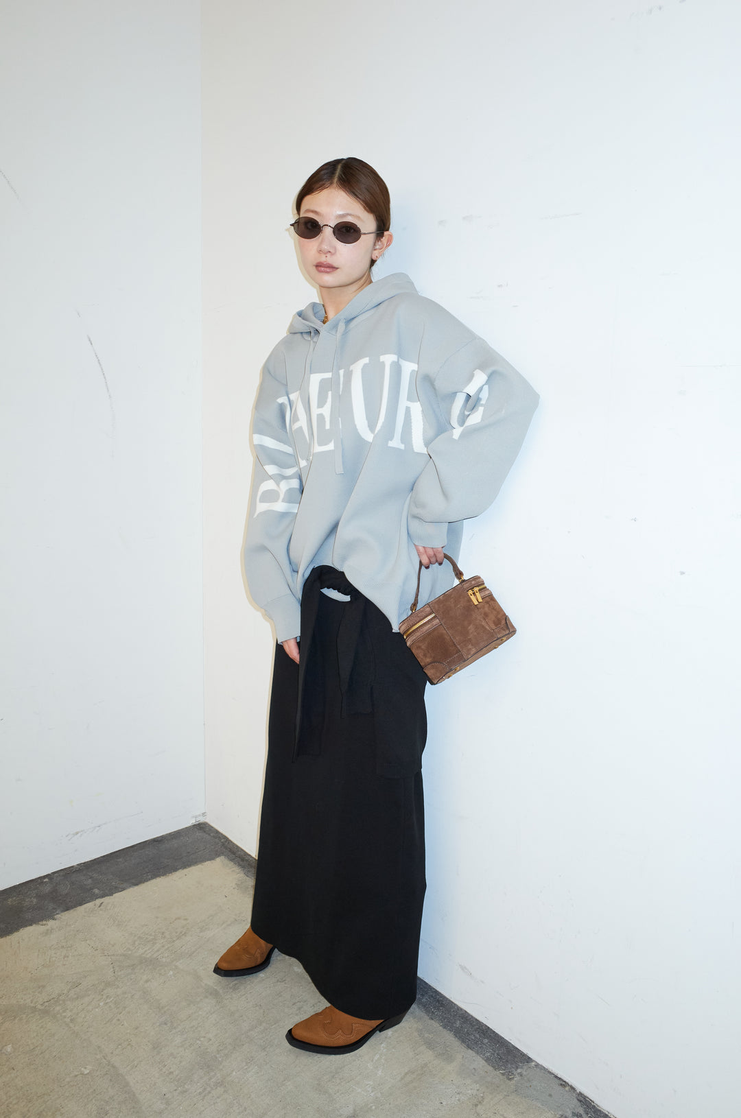 [予約/SET]ジャガードロゴニットフーディ+フェイクレイヤードニットスカート(2set)