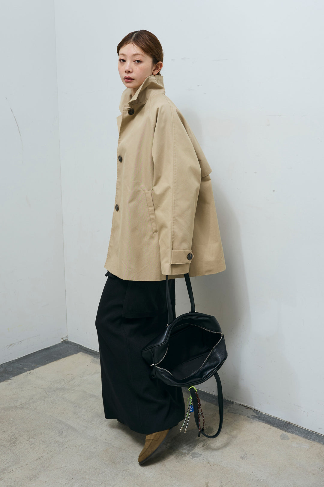 [予約/SET]TRツイルAラインショートトレンチ+フェイクレイヤードニットスカート(2set)