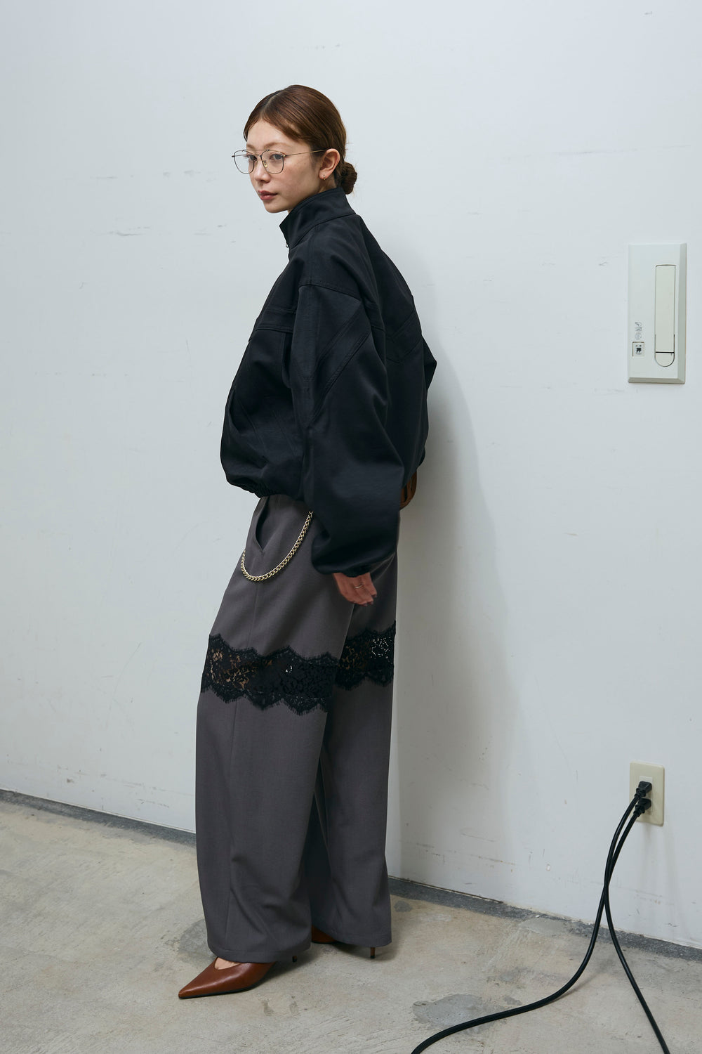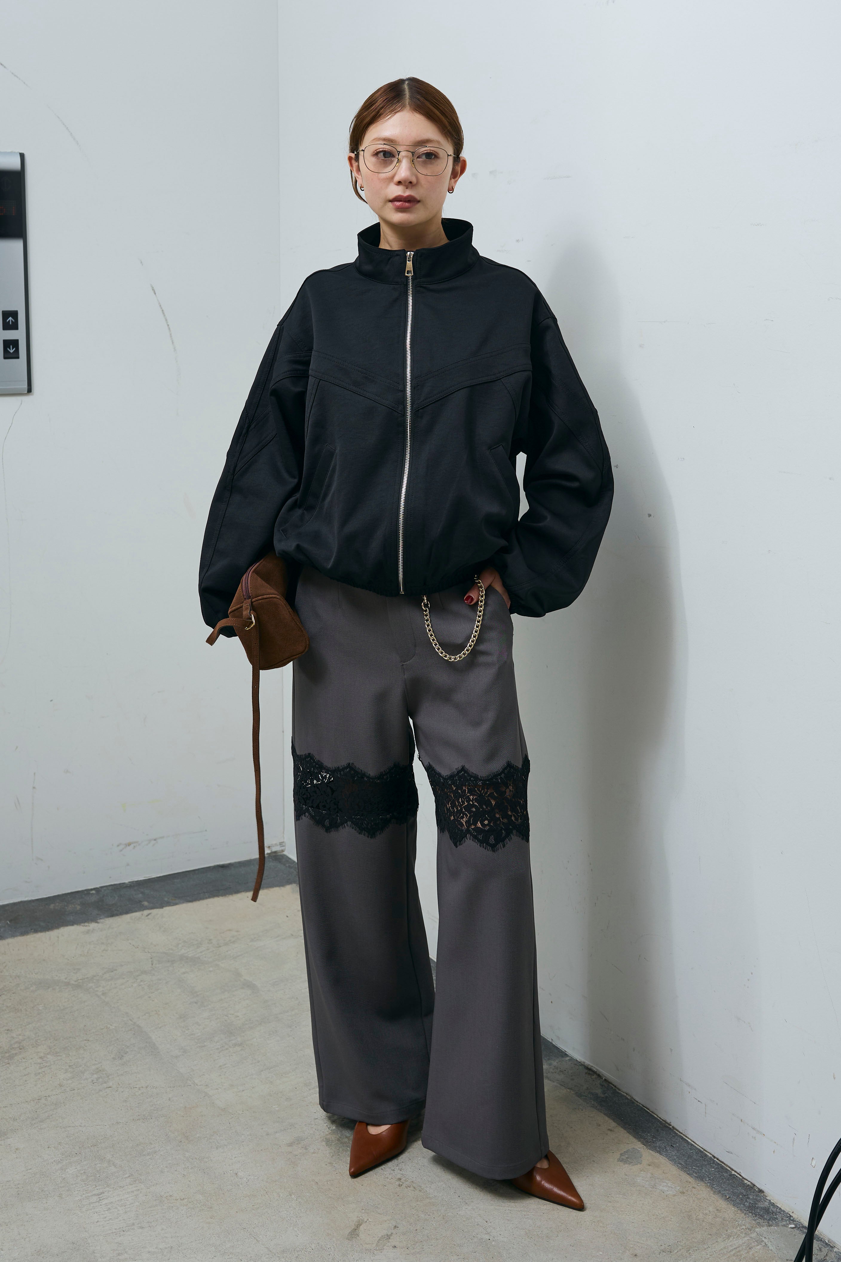 [予約/SET]ジップアップソフトブルゾン+レースパネルパンツ(2set)