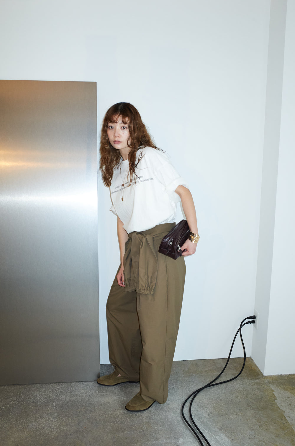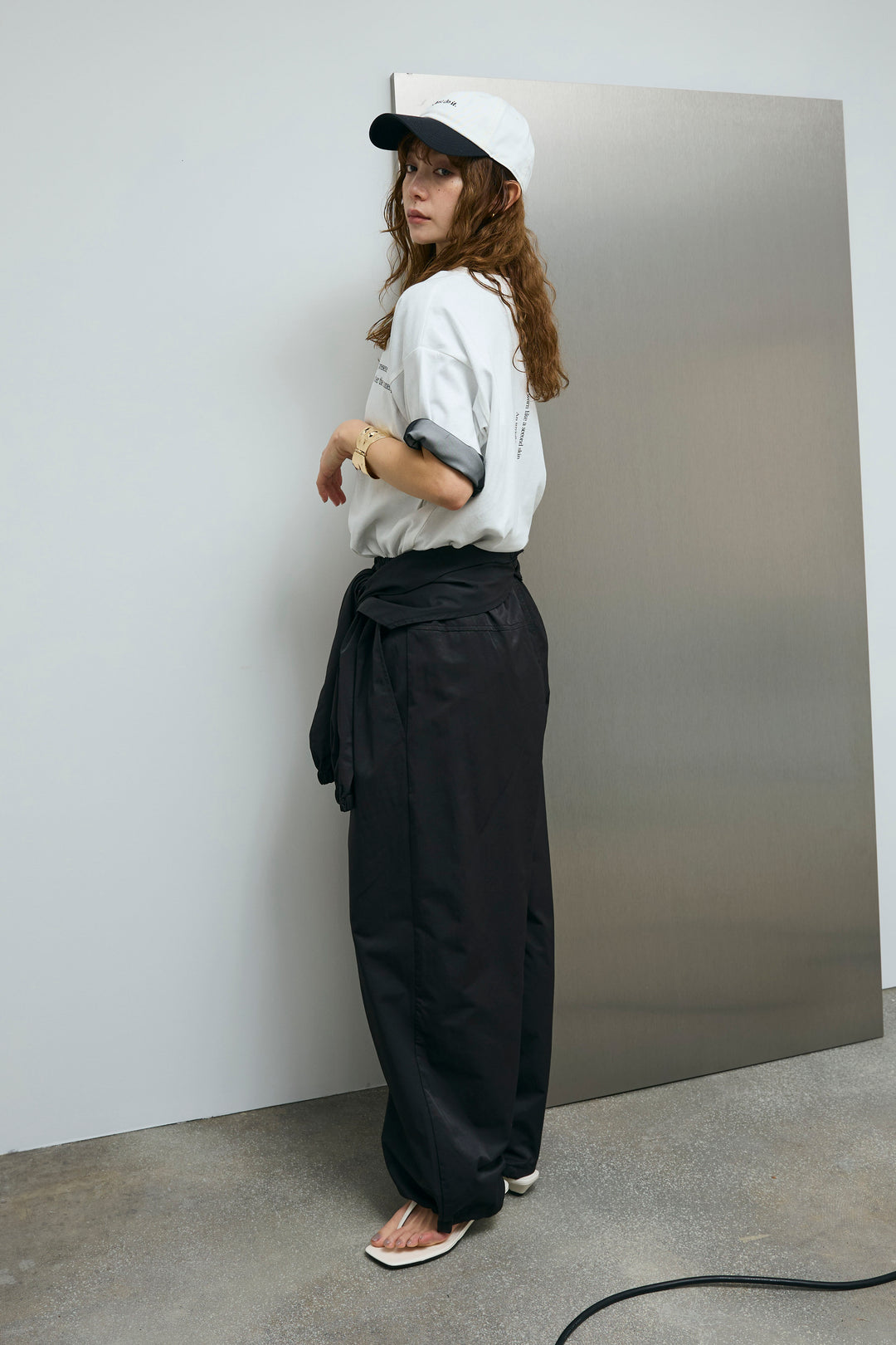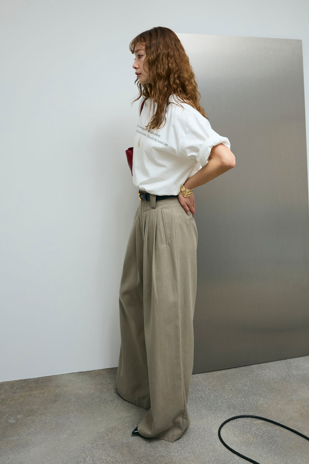 [予約/SET]チュールレイヤードロゴTシャツ+サイドベルトタックパンツ(2set)