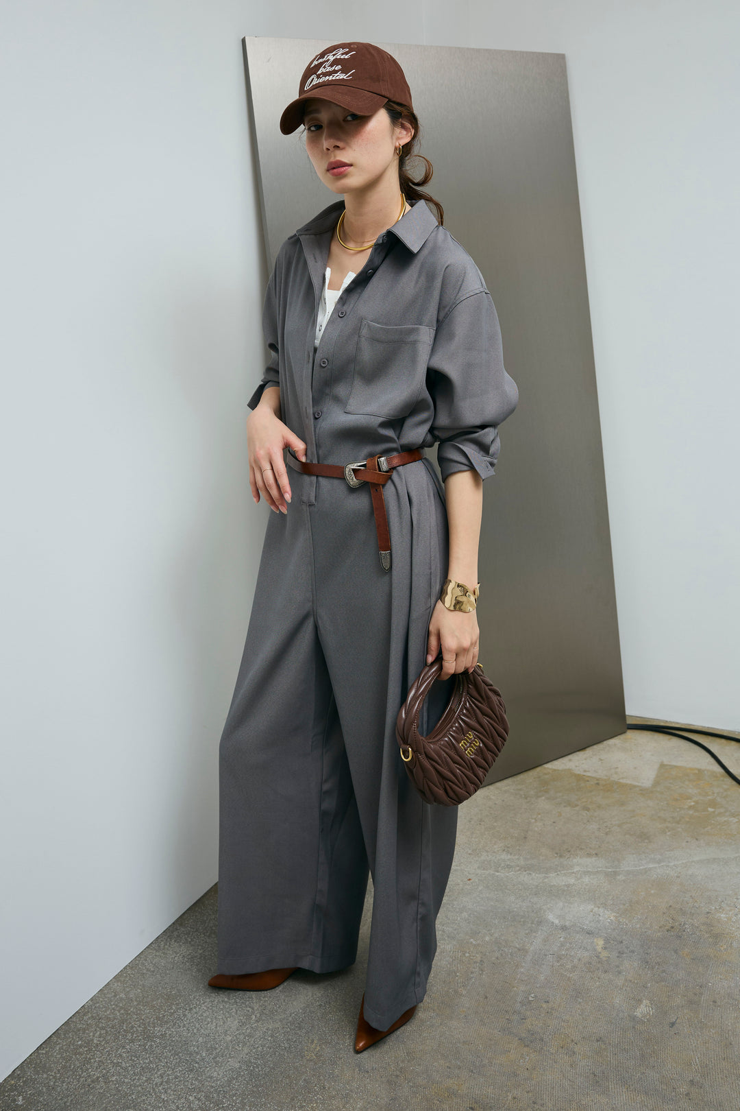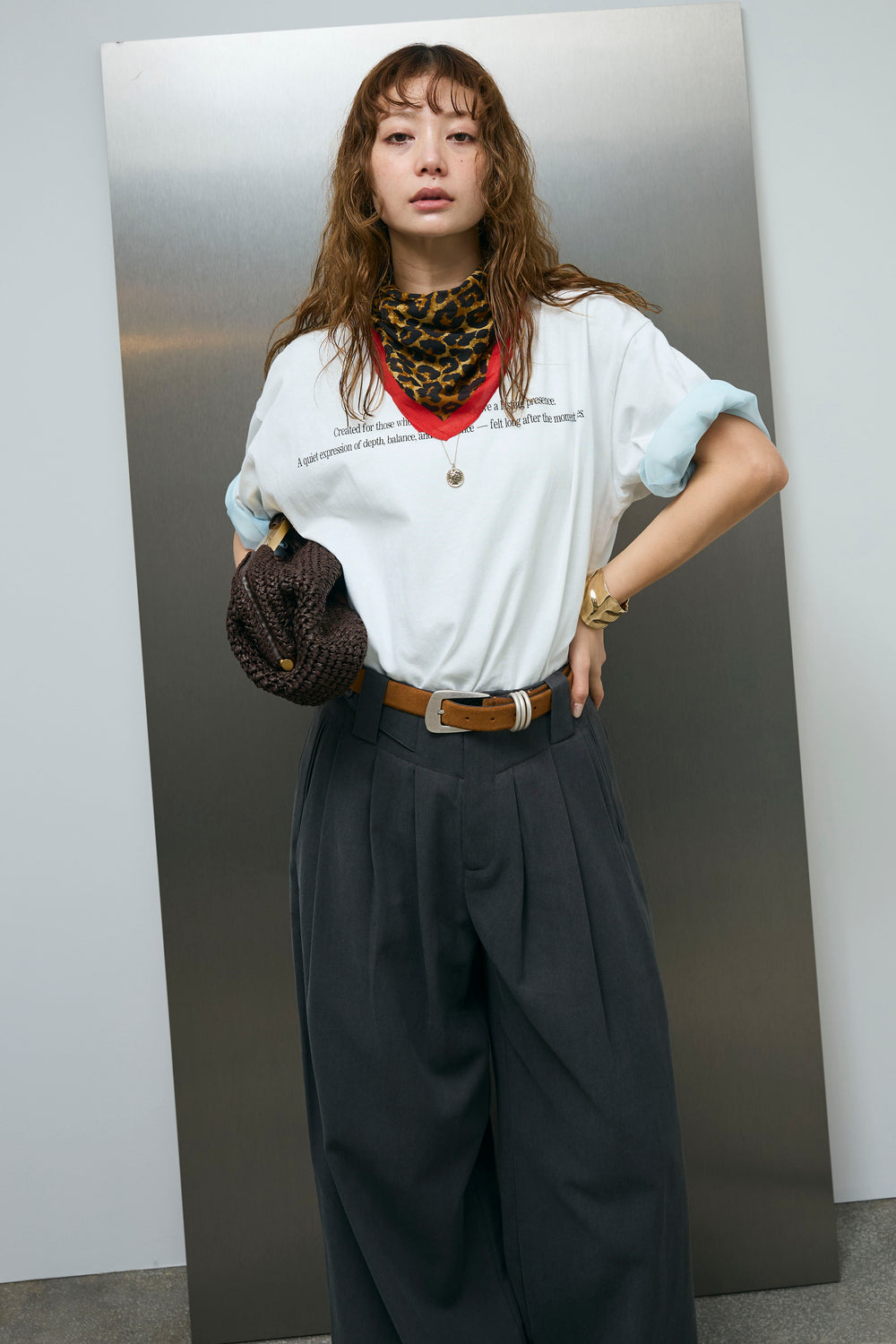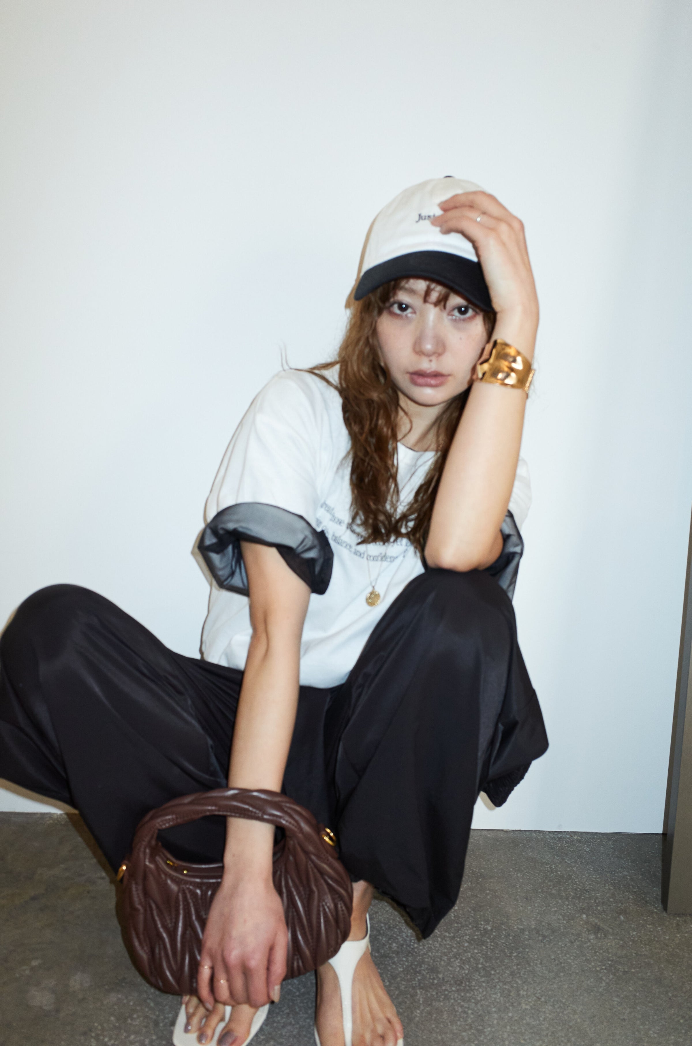 [予約/SET]チュールレイヤードロゴTシャツ+サイドベルトタックパンツ(2set)