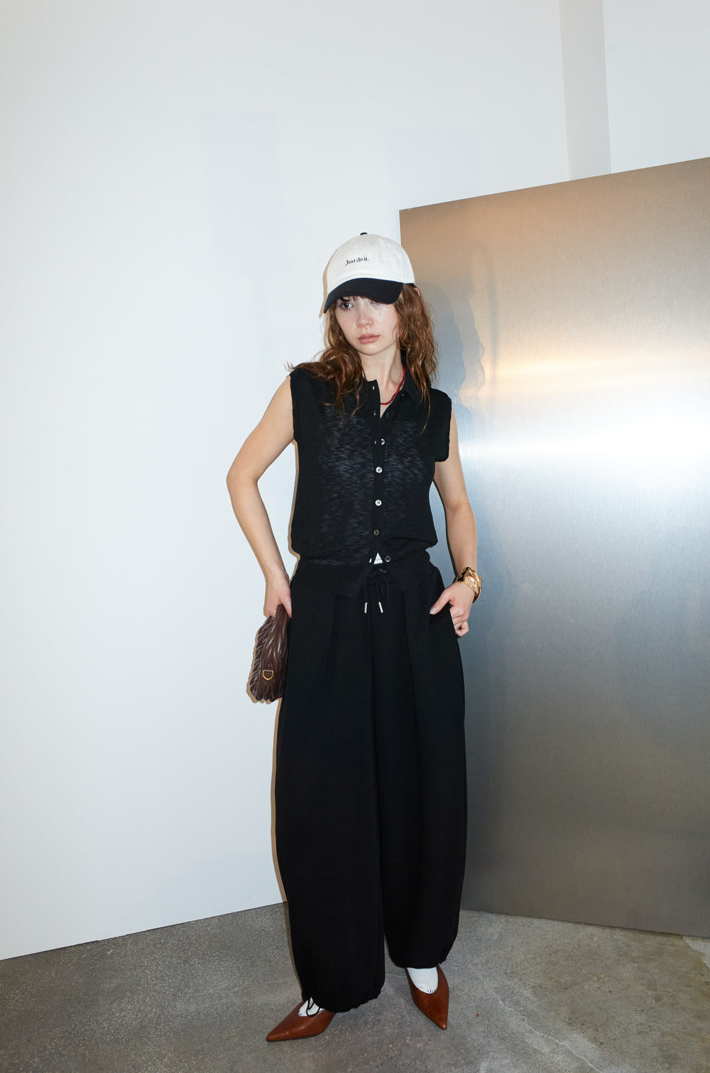 [予約/SET]ノースリーブポロニット+ダンボールスウェットパンツ(2set)