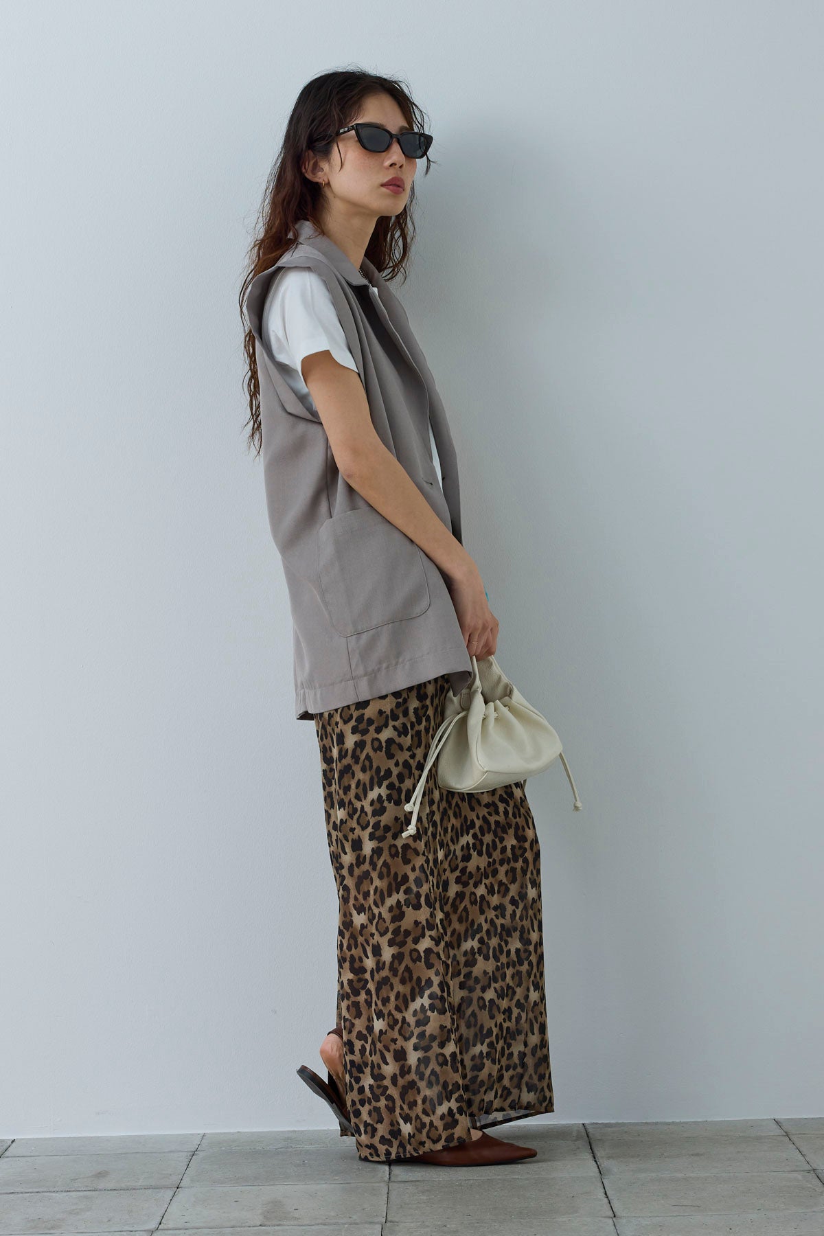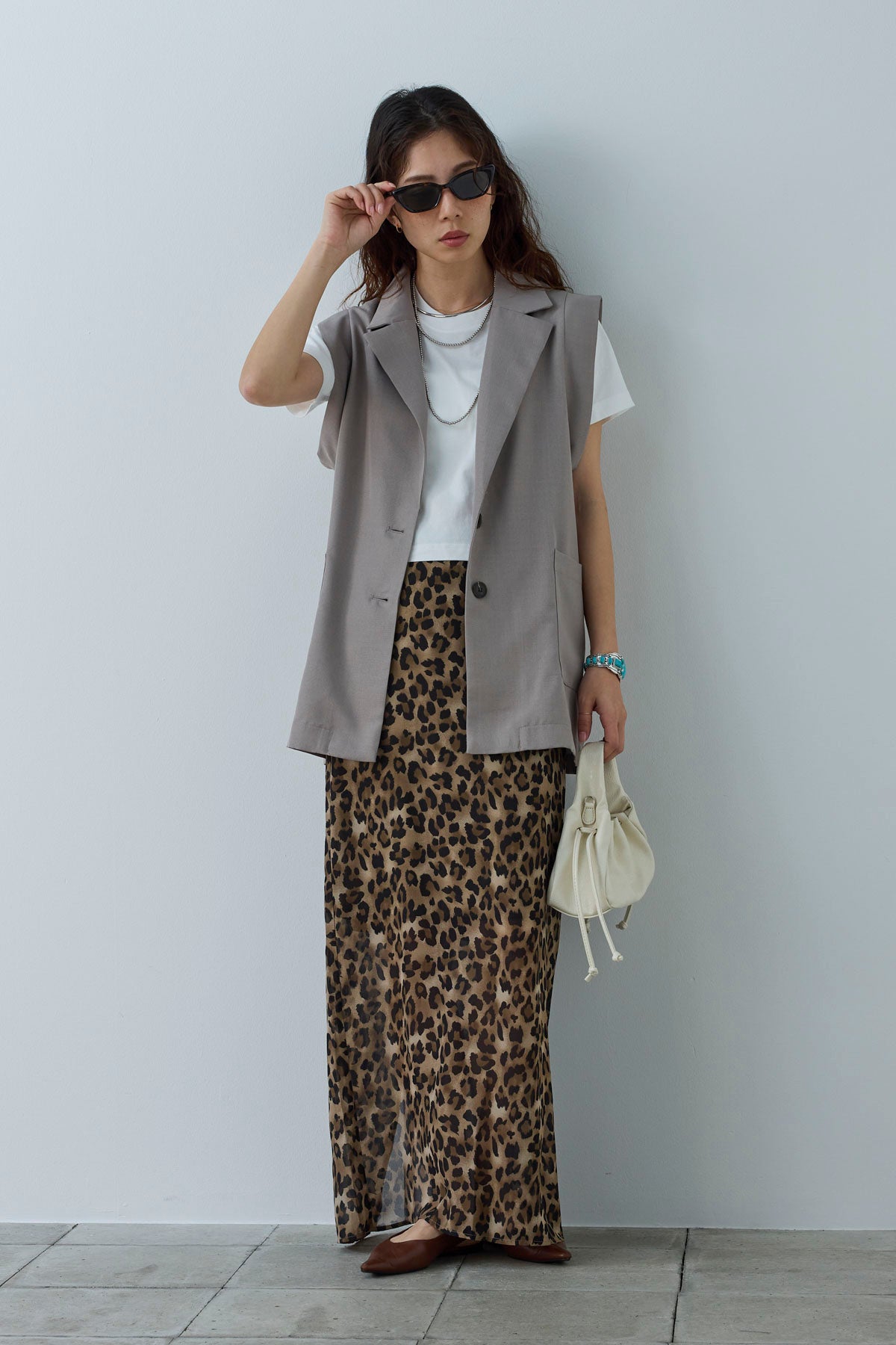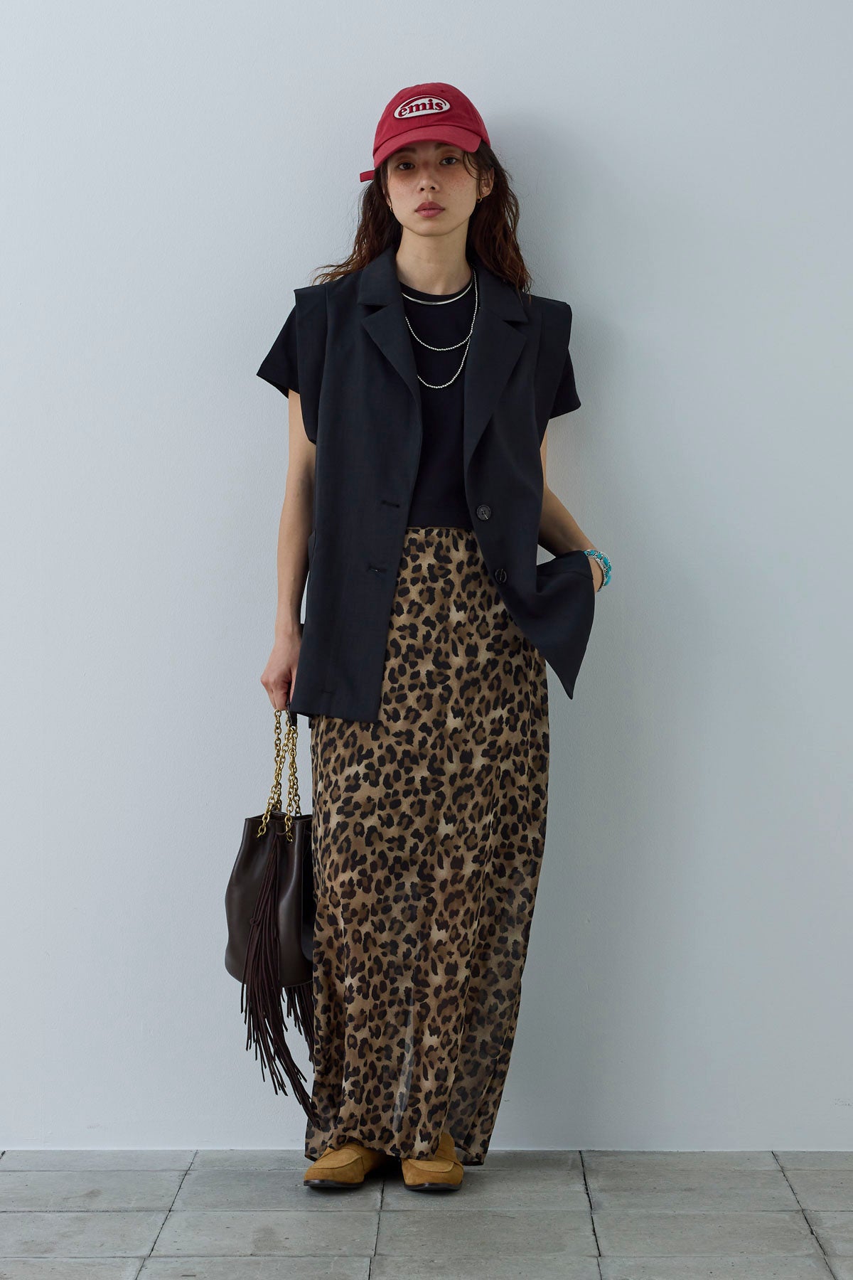 [予約/SET]リネンタッチテーラードジレ+刺繍ロゴショート丈 Tシャツ+レオパードシアースカート(3set)