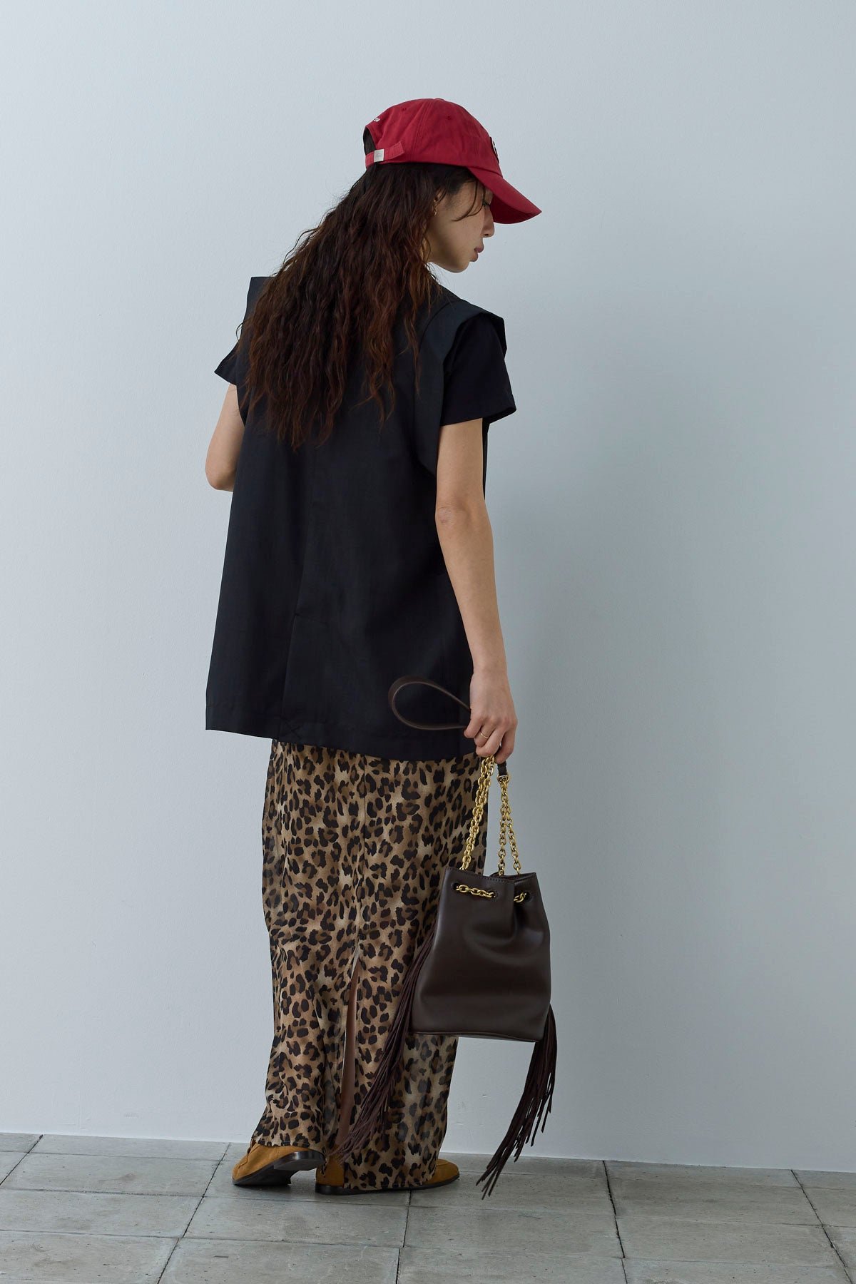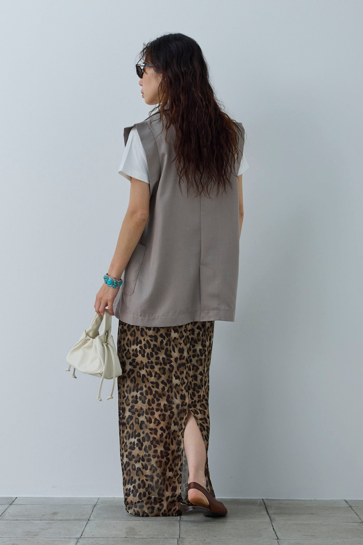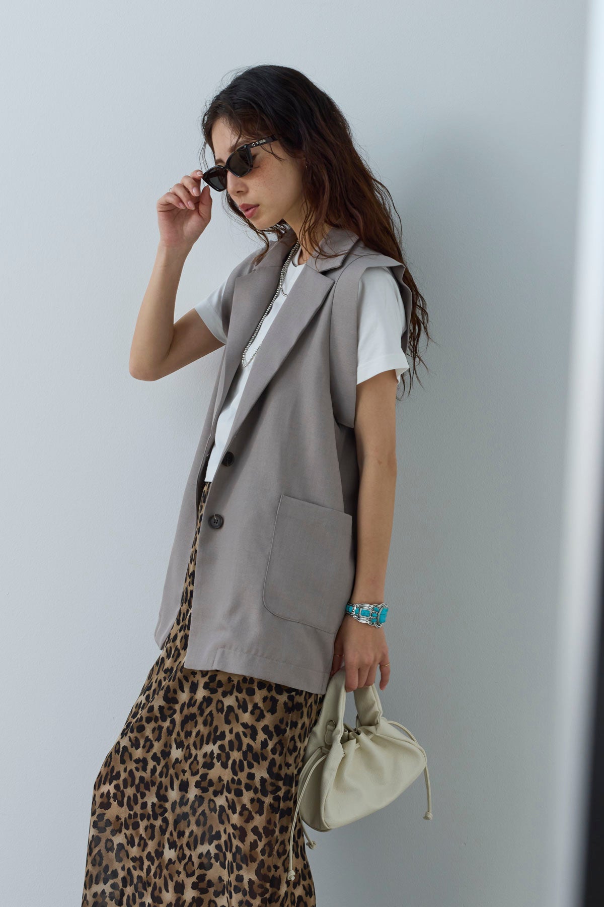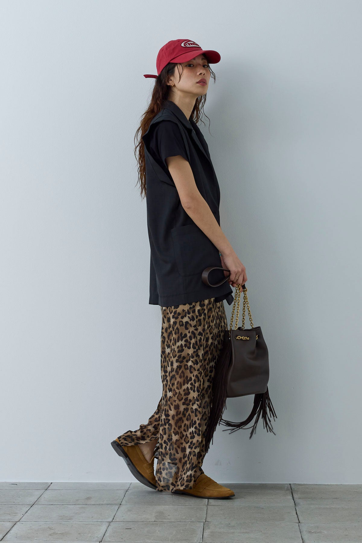 [予約/SET]リネンタッチテーラードジレ+刺繍ロゴショート丈 Tシャツ+レオパードシアースカート(3set)