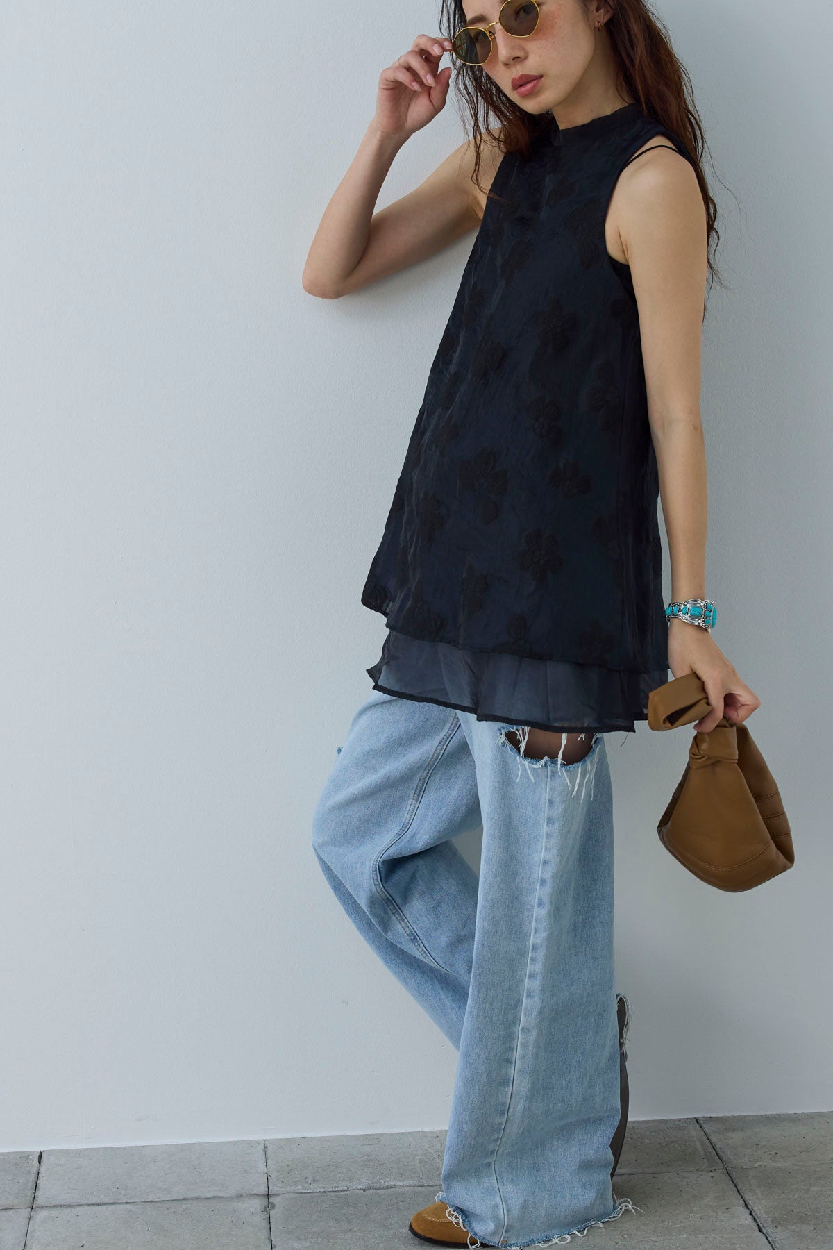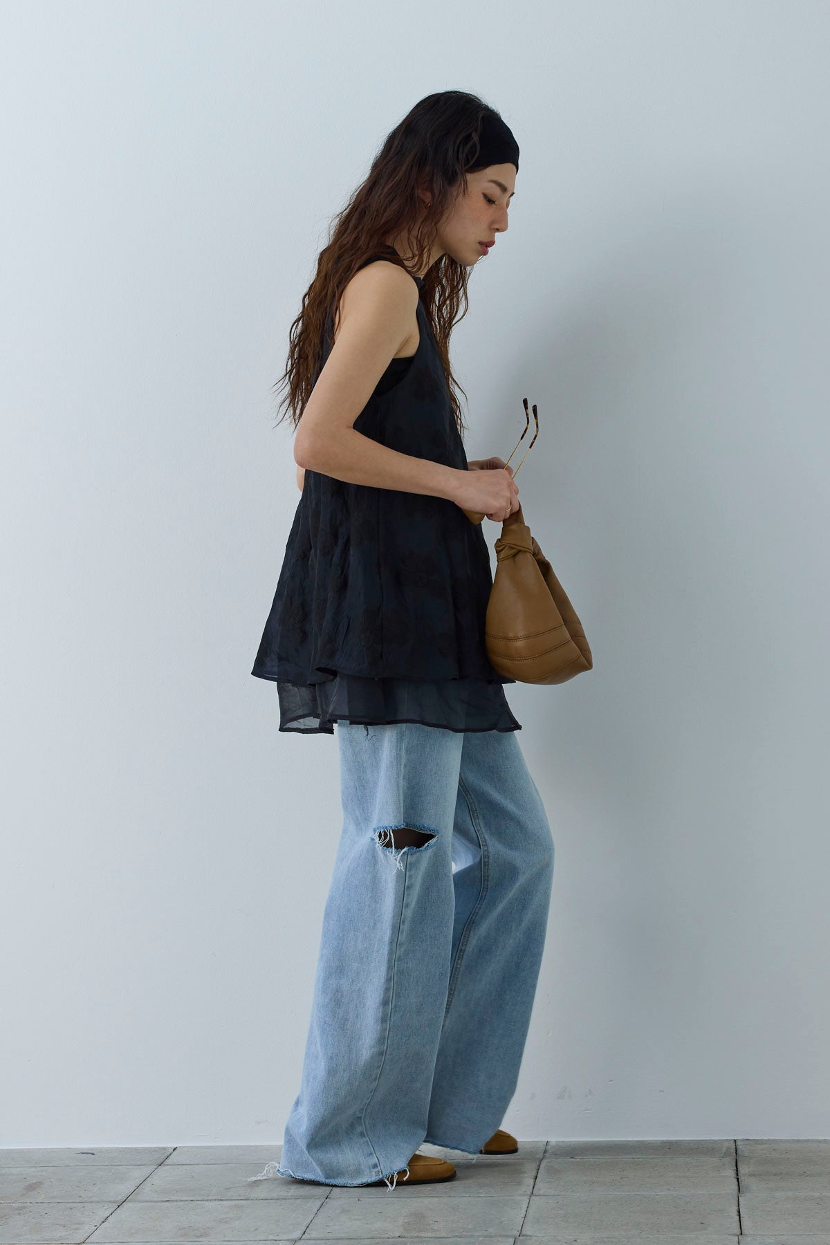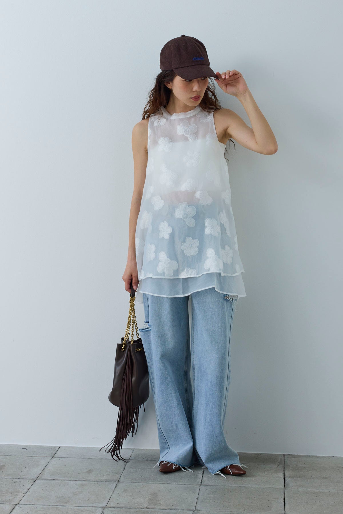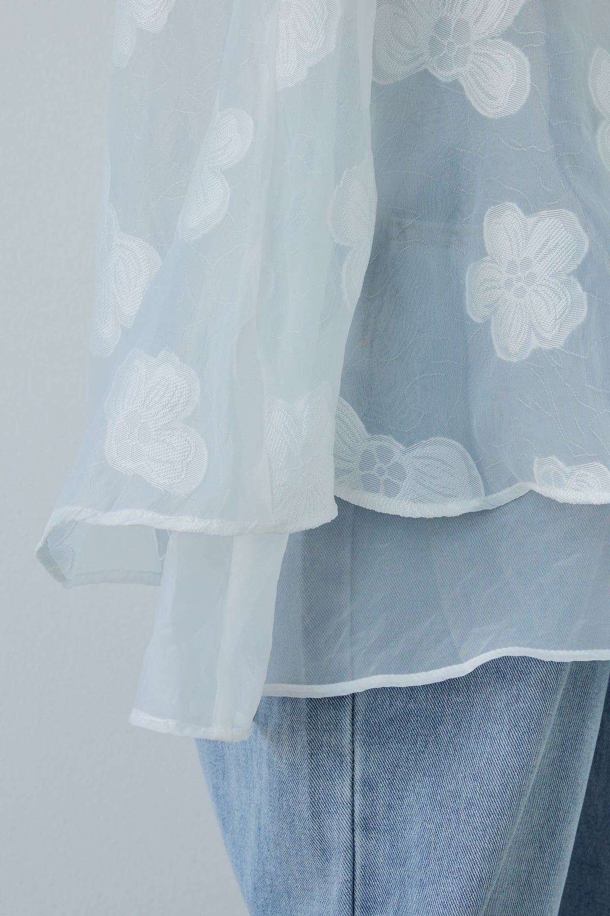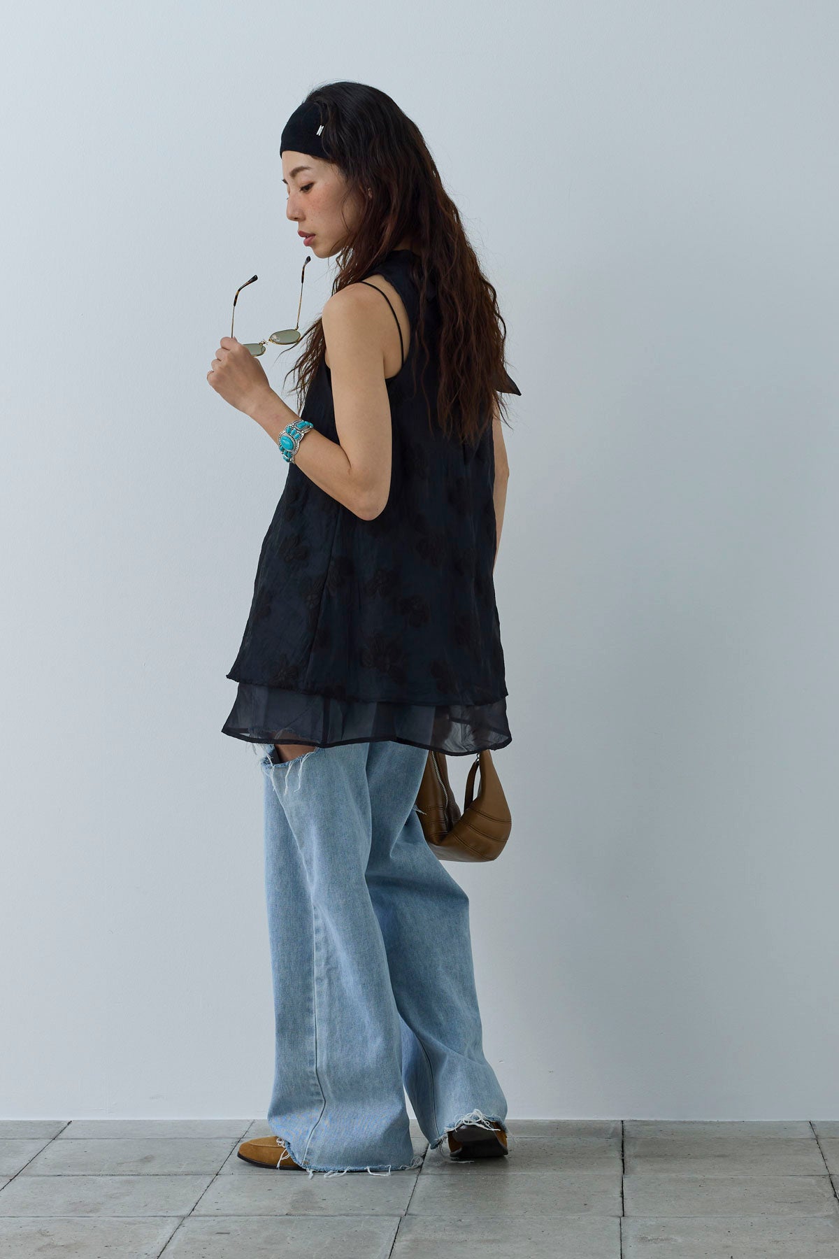[予約/SET]フラワーシアーブラウス+サイドスラッシュデニム(2set)