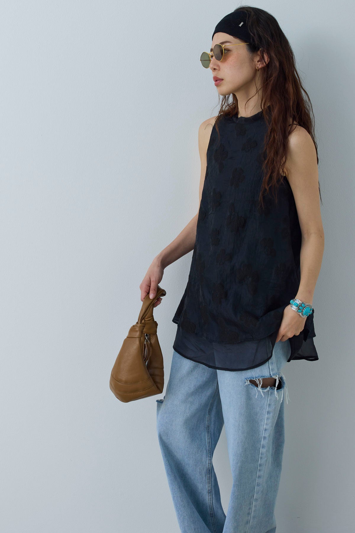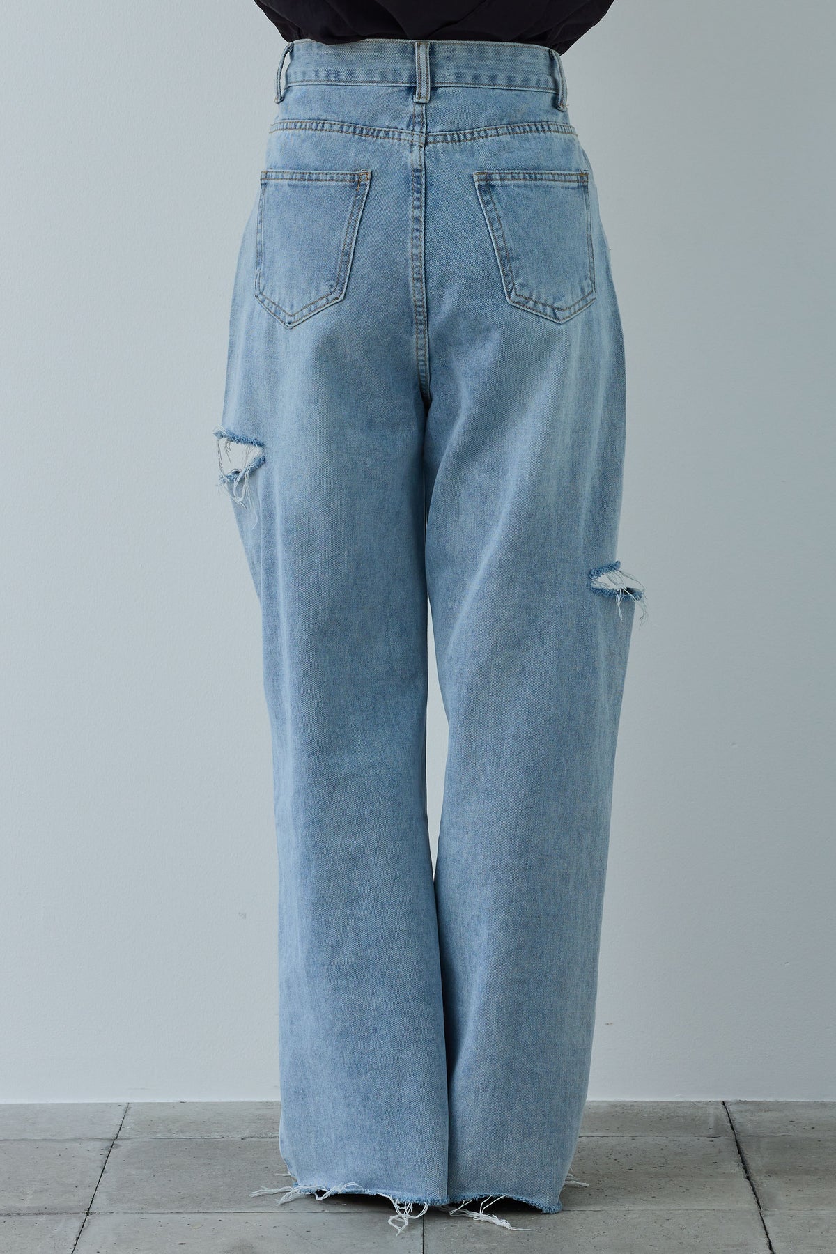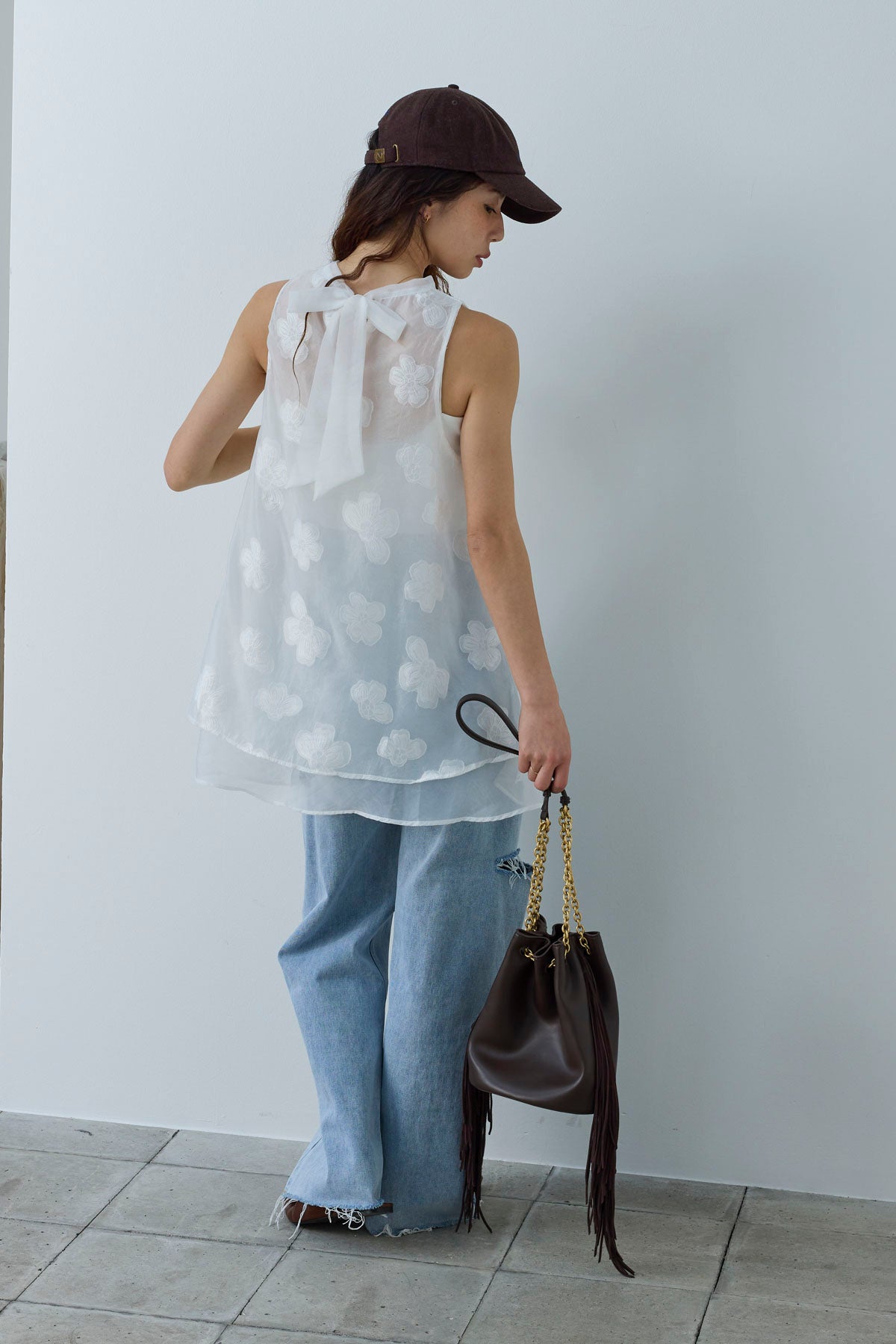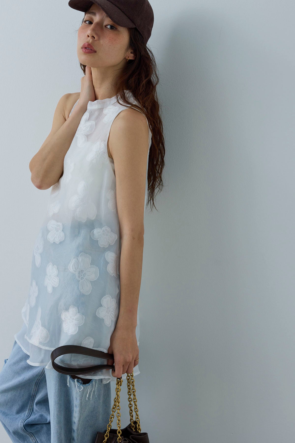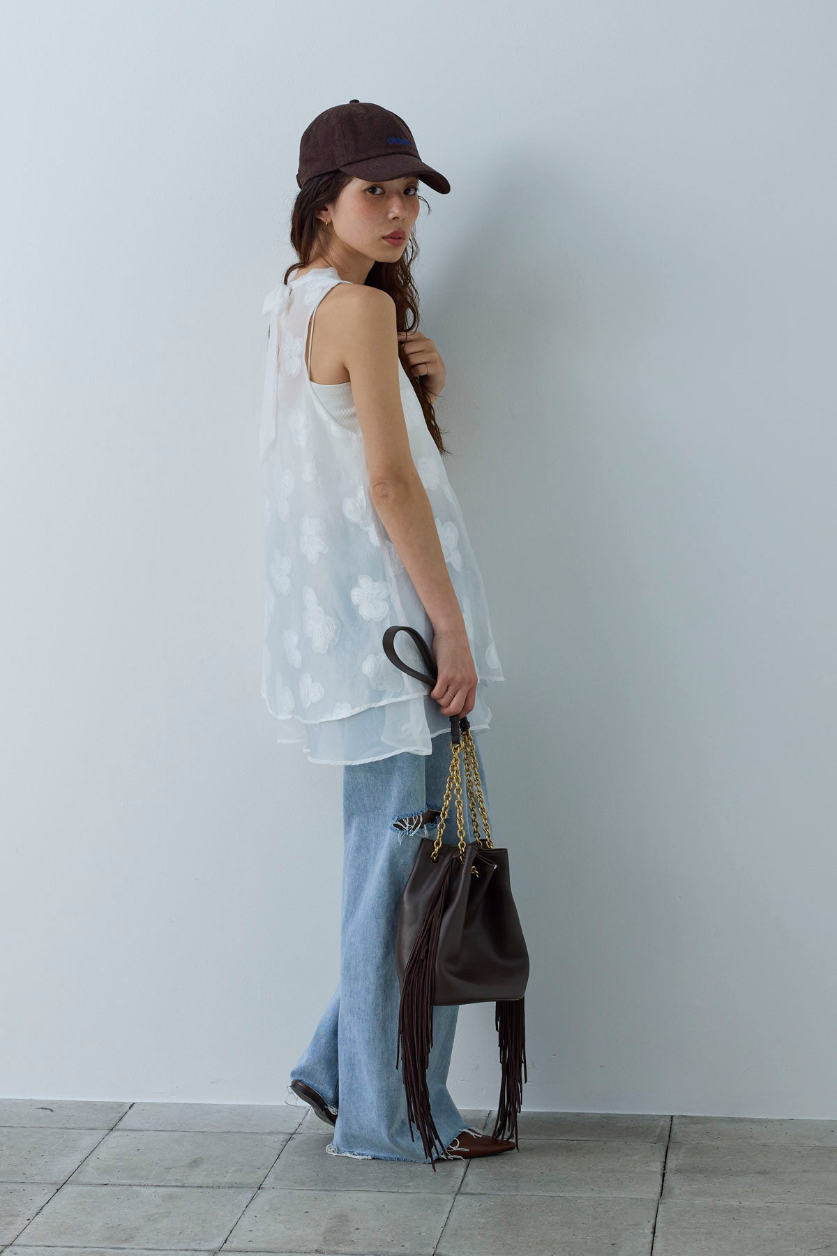 [予約/SET]フラワーシアーブラウス+サイドスラッシュデニム(2set)