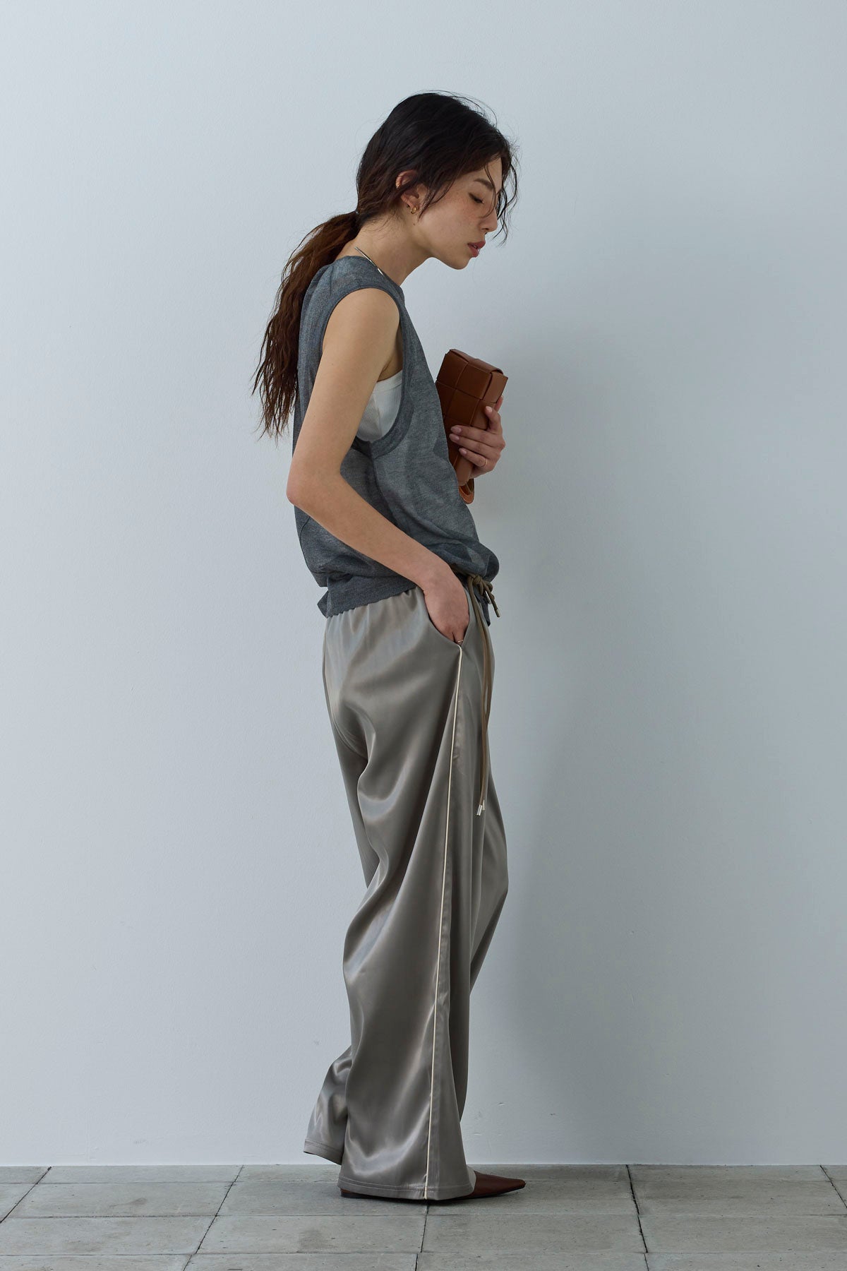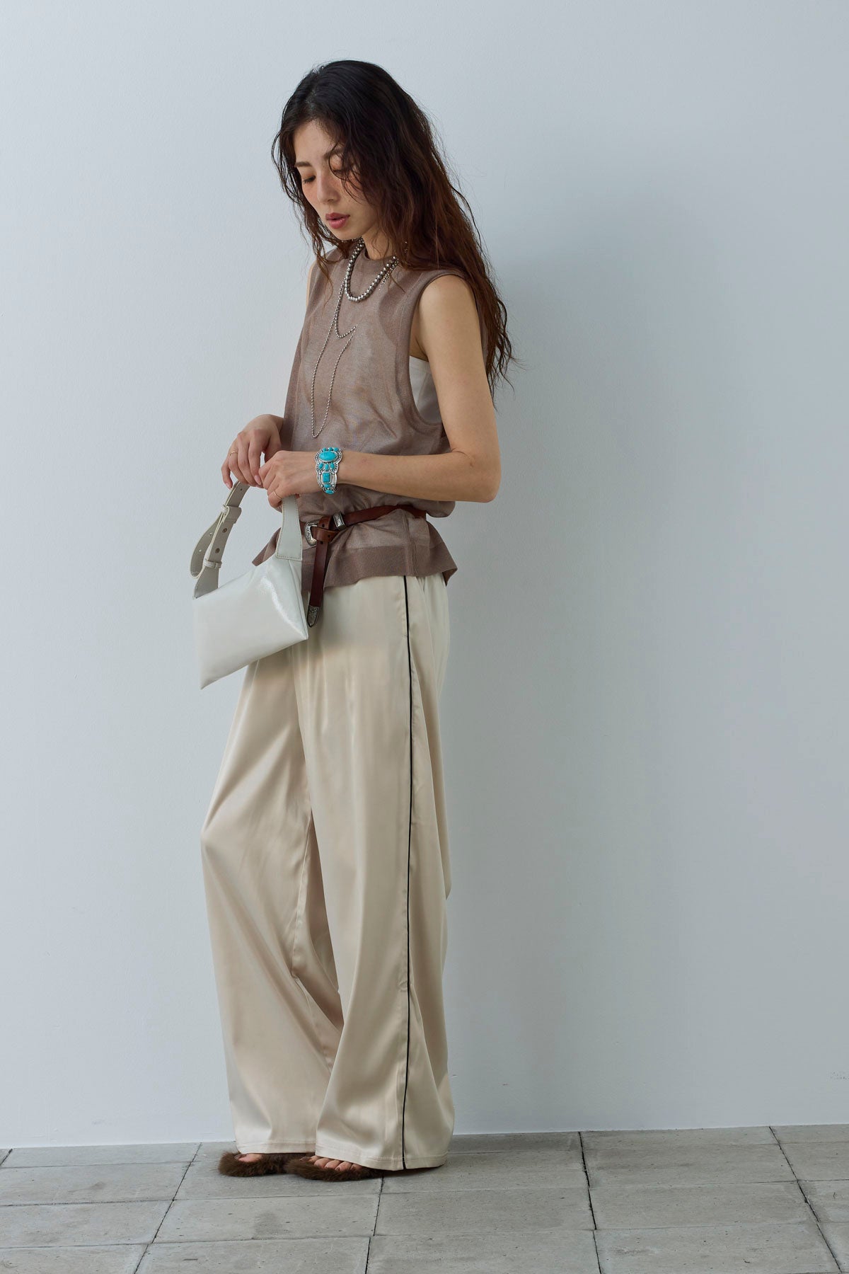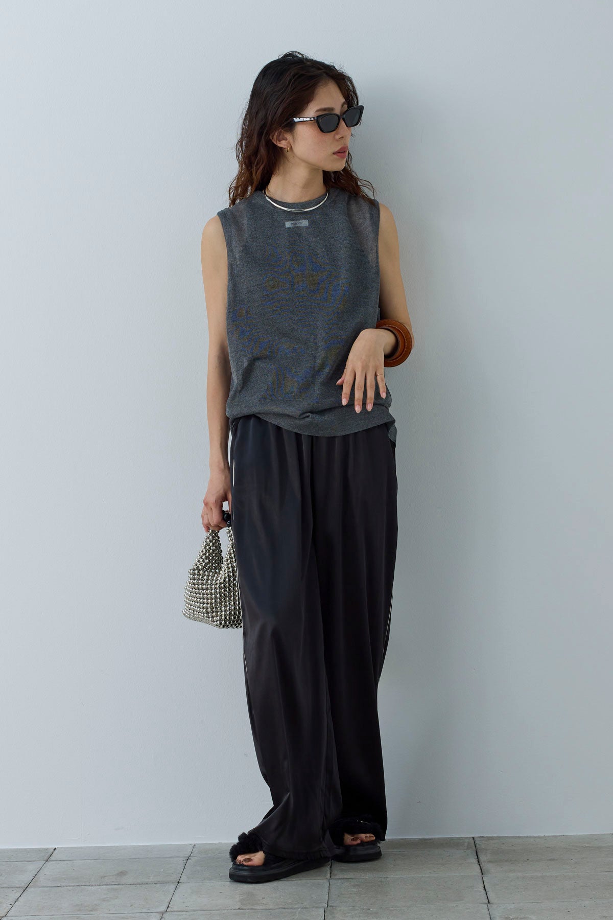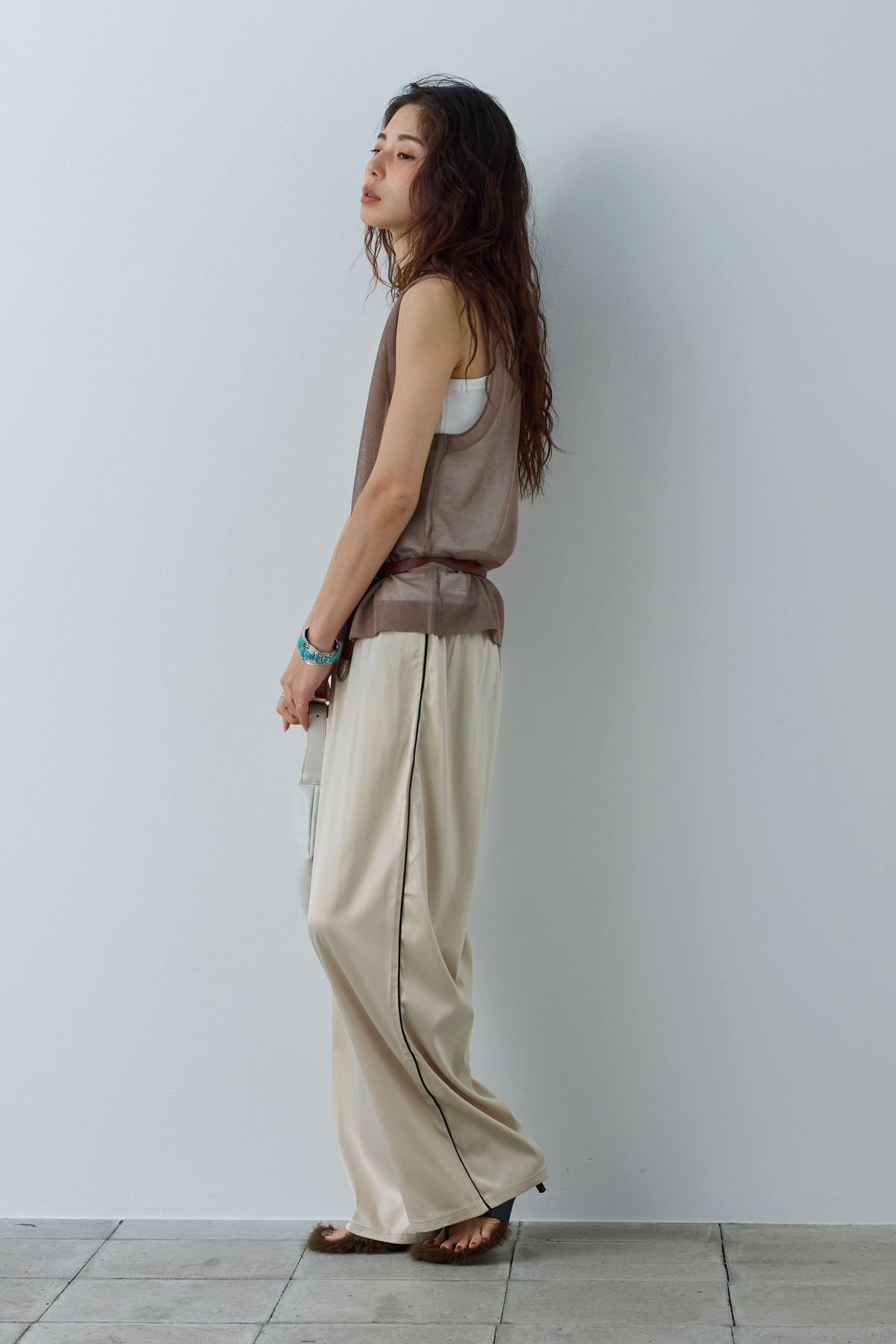 [予約/SET]シアーノースリーブニット+ネーム入りアメスリタンク+サイドラインサテンパンツ(3set)
