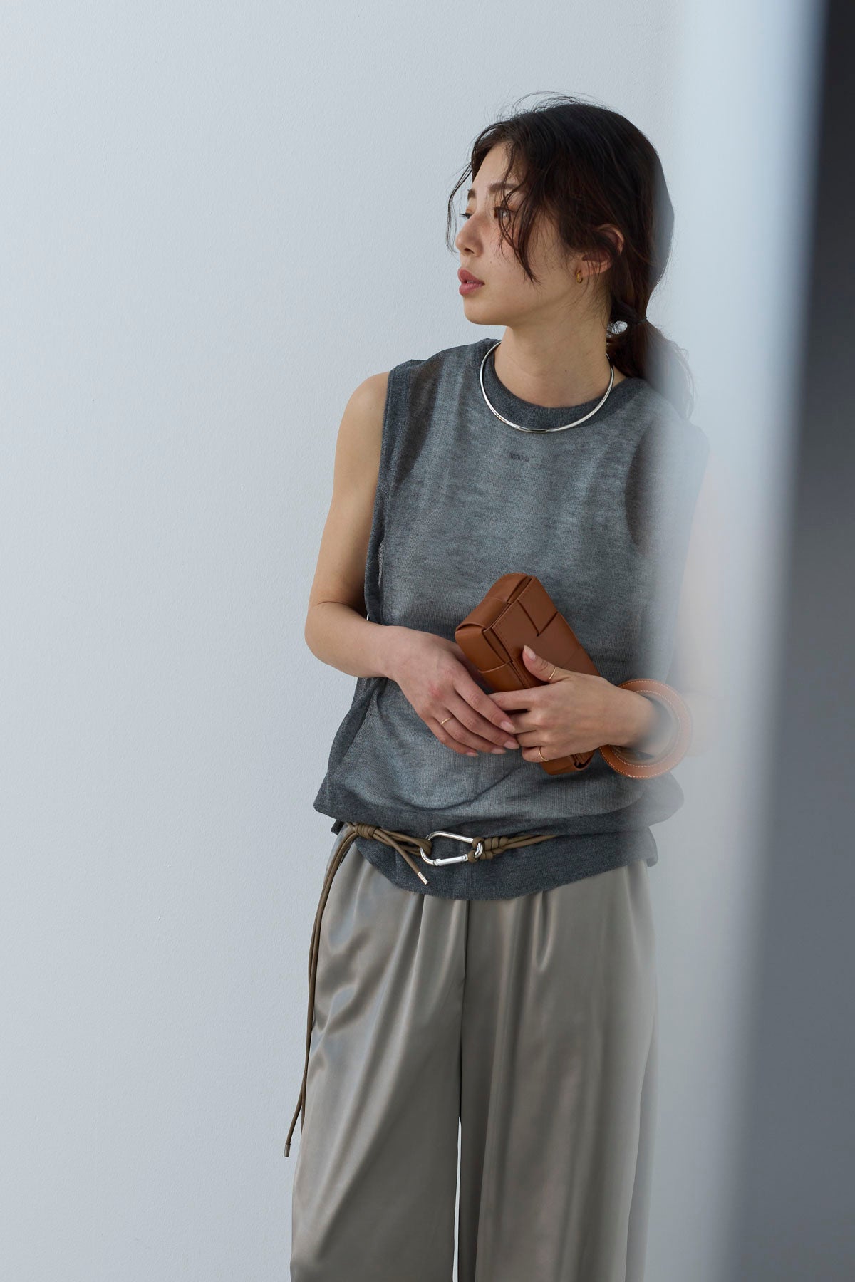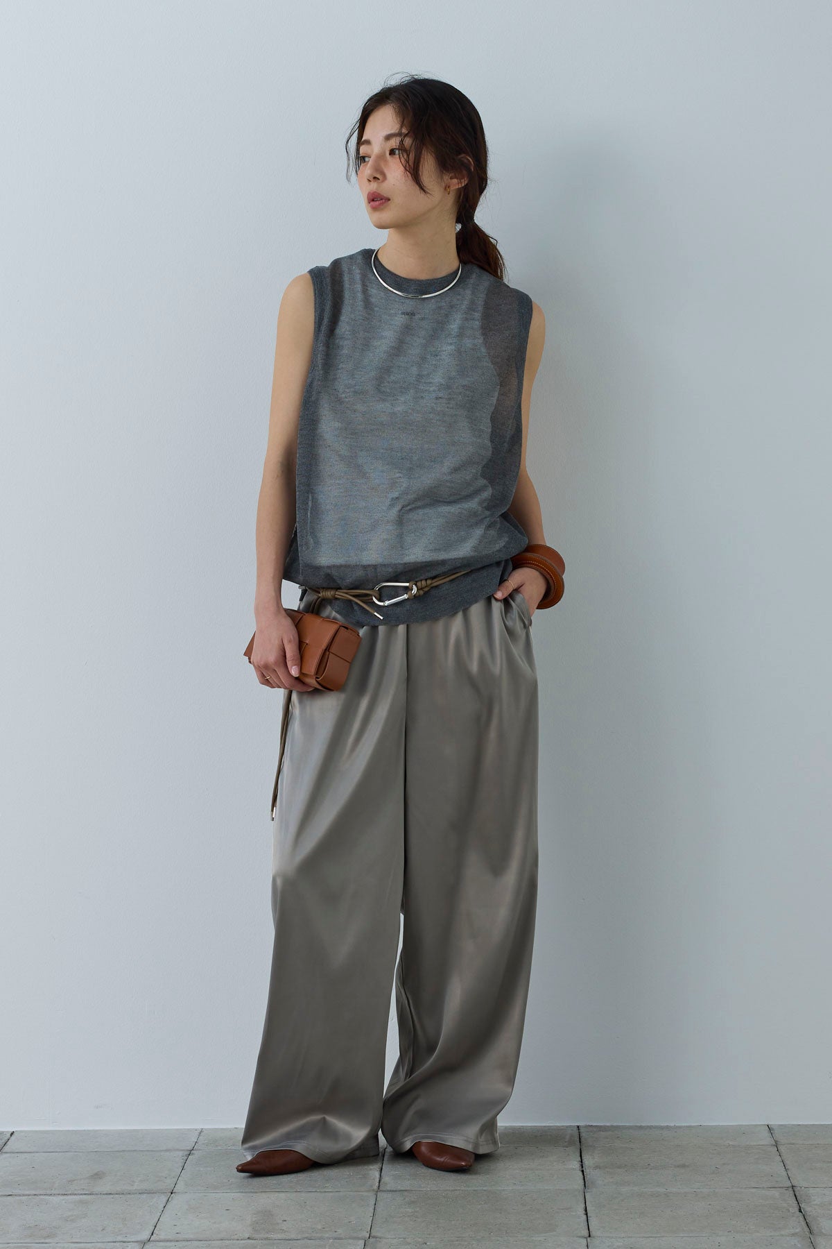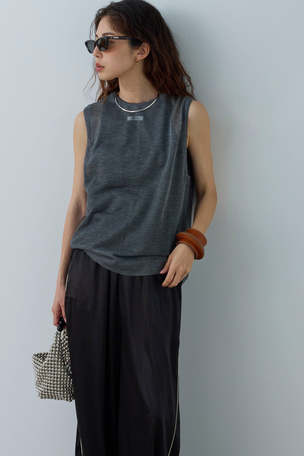 [予約/SET]シアーノースリーブニット+ネーム入りアメスリタンク+サイドラインサテンパンツ(3set)