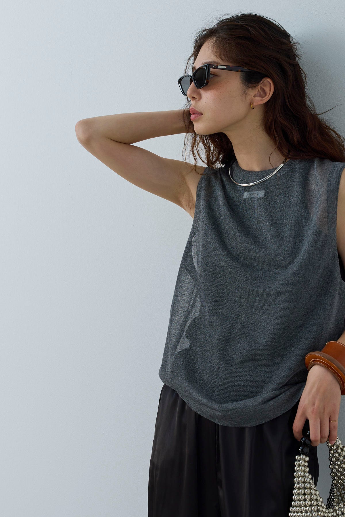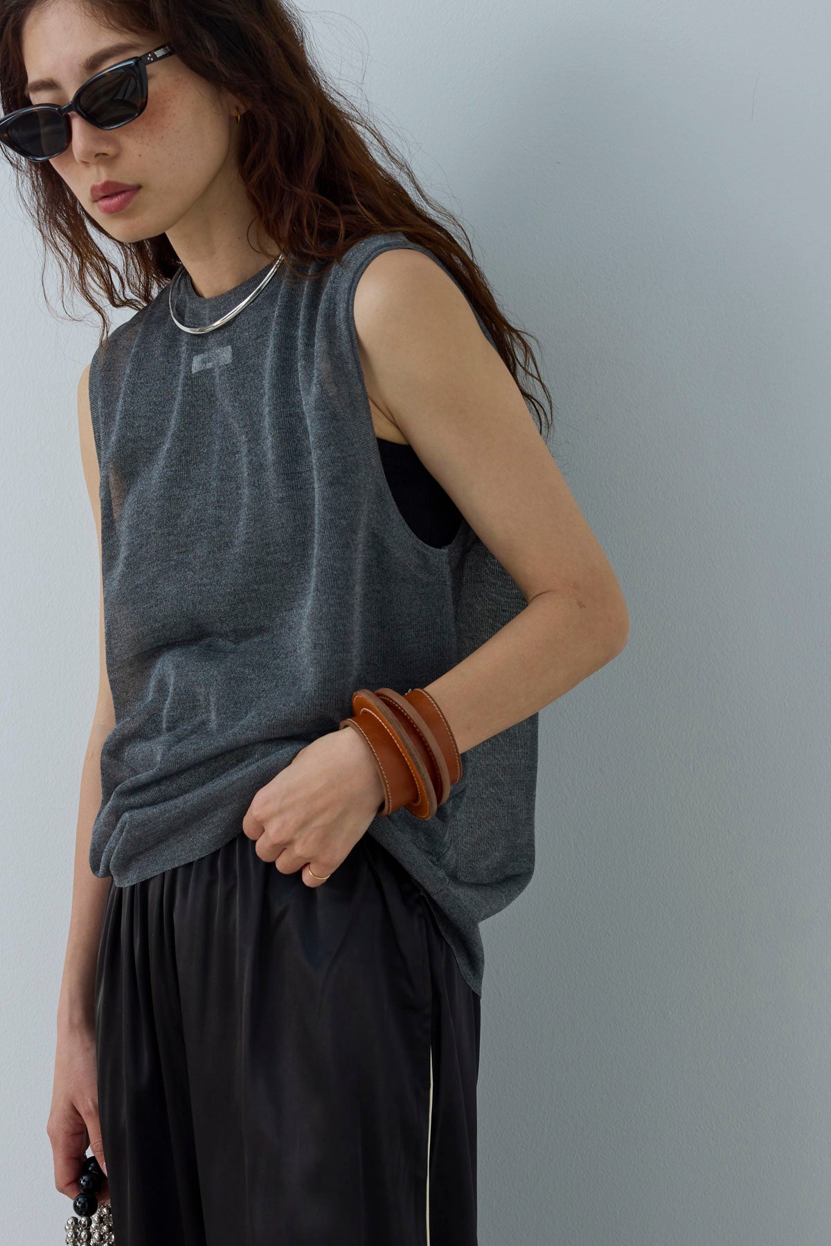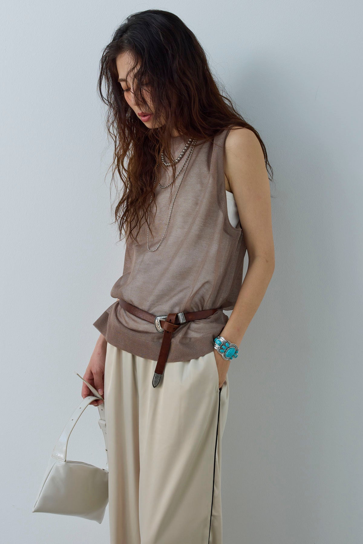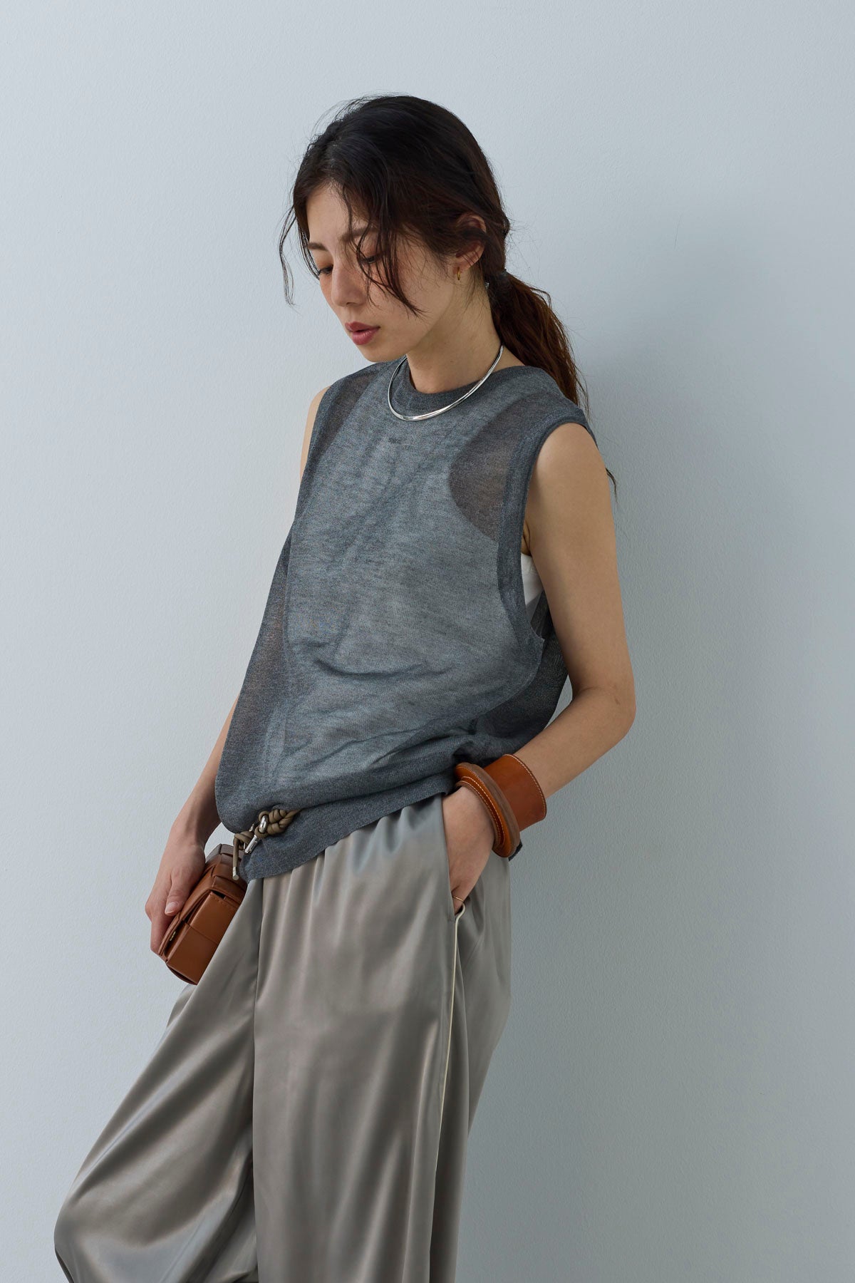 [予約/SET]シアーノースリーブニット+ネーム入りアメスリタンク+サイドラインサテンパンツ(3set)