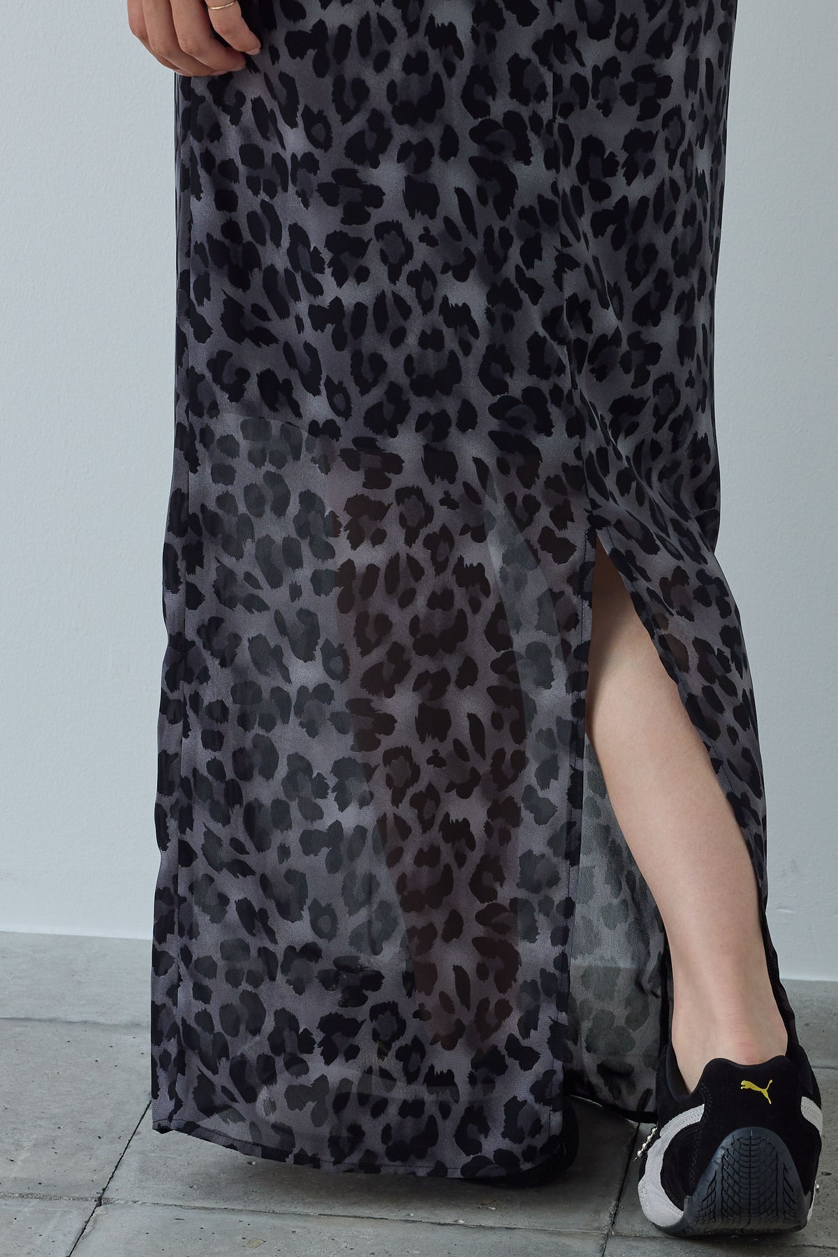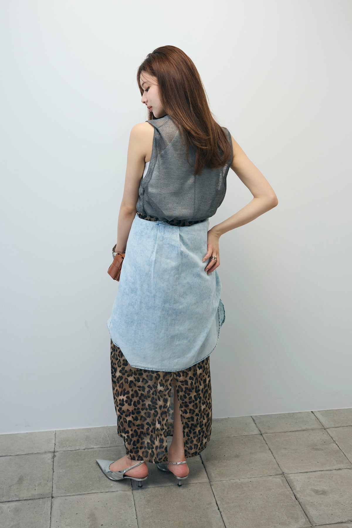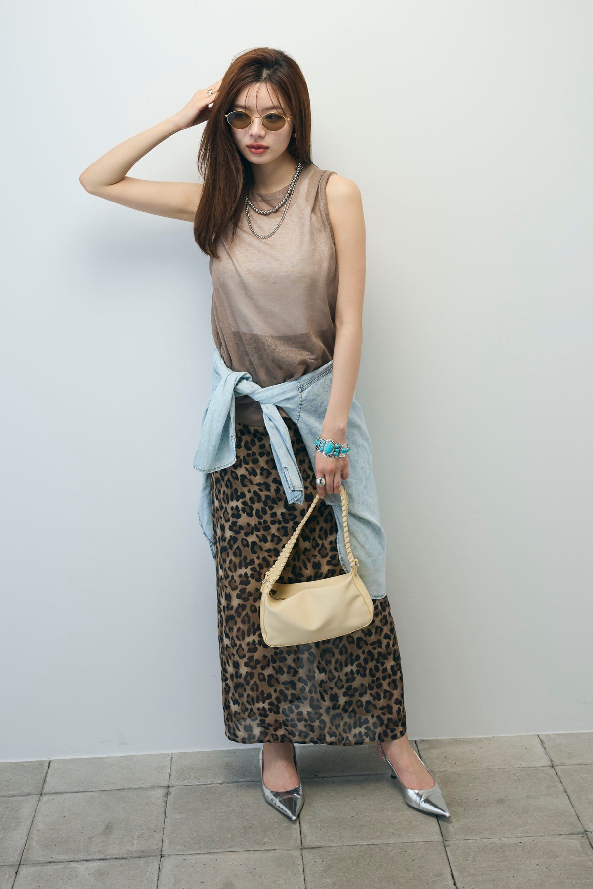 [予約/SET]シアーノースリーブニット+レオパードシアースカート(2set)