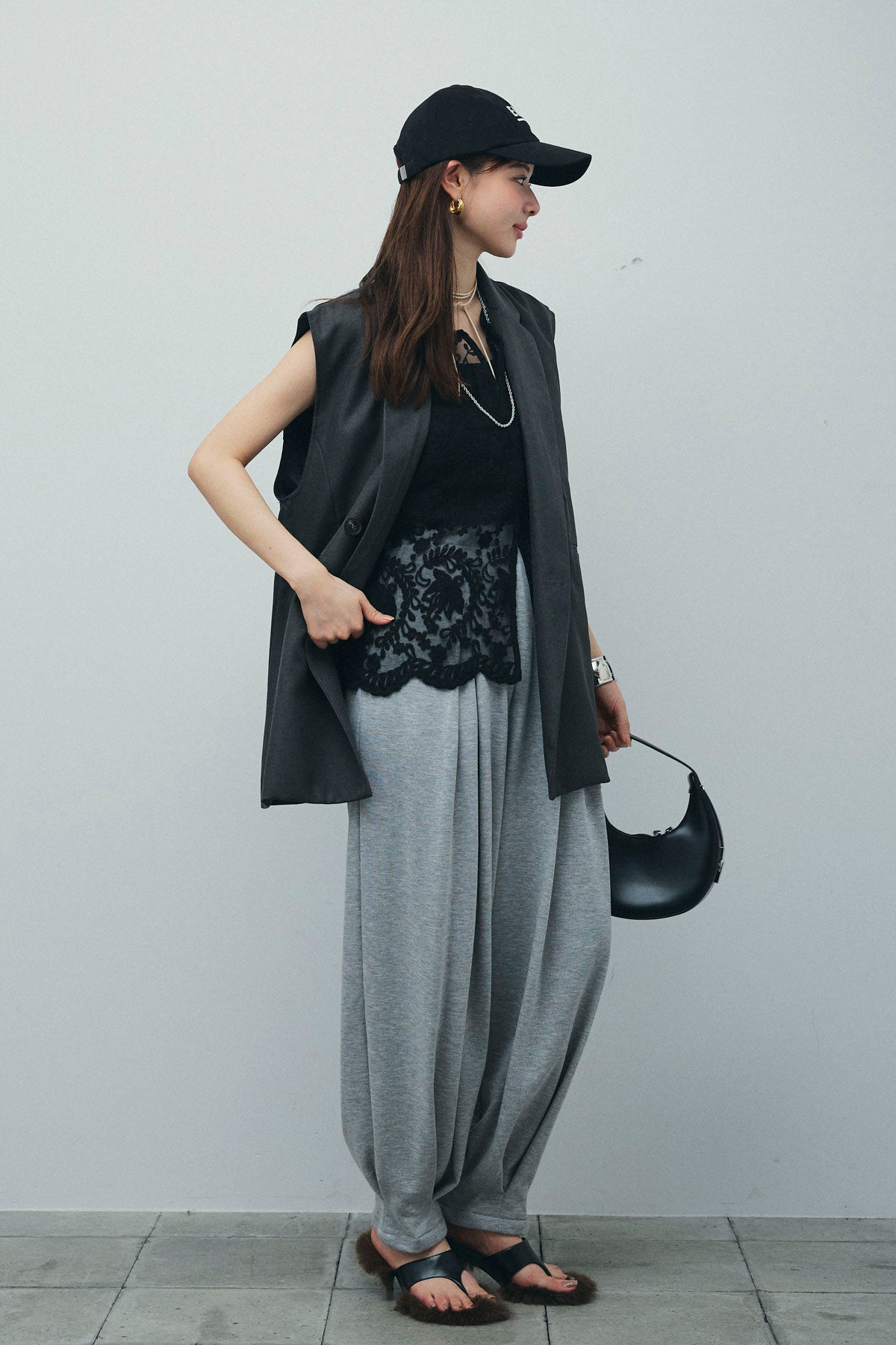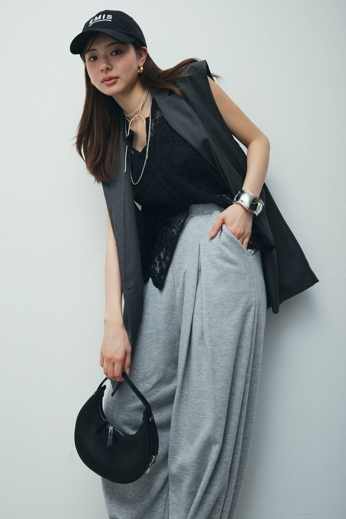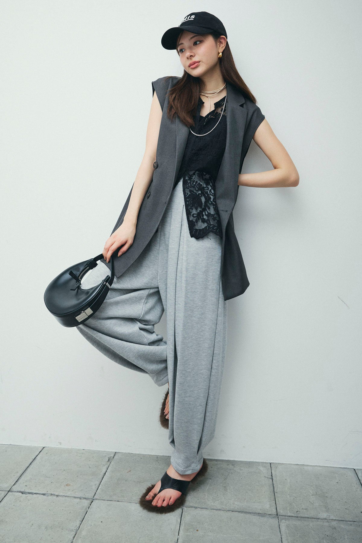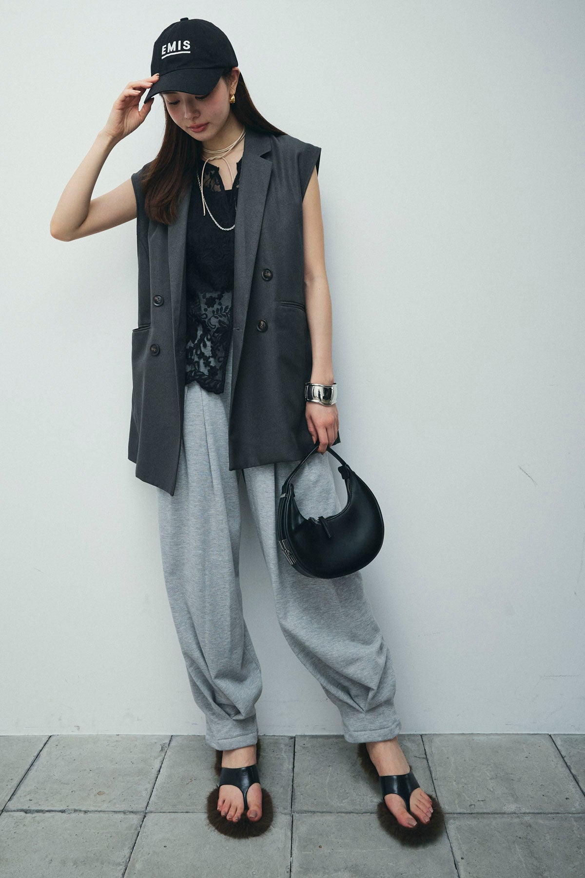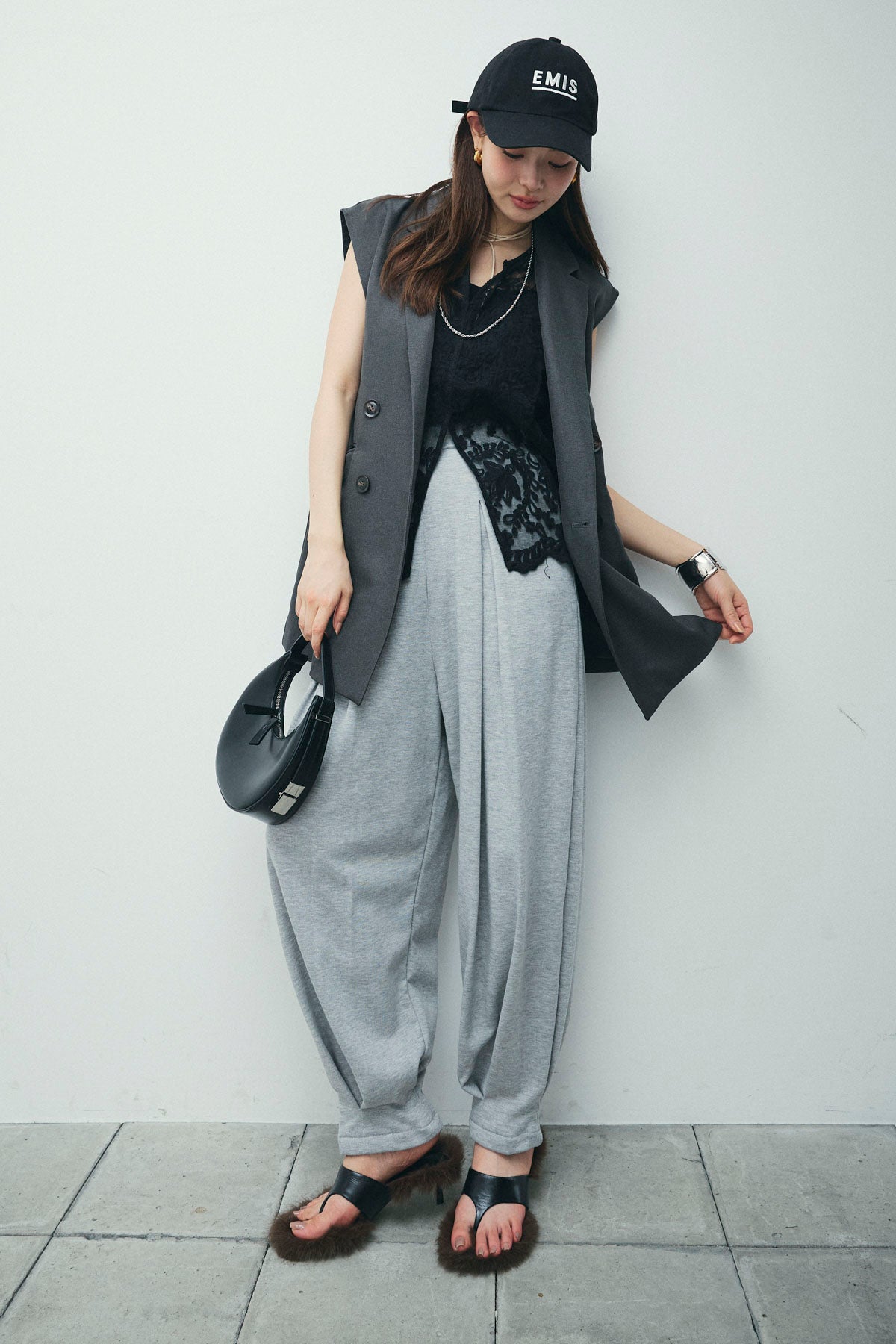 [予約/SET]ヘザーエステルテーラードジレ+オーガンジーレースPO+タックボリュームスウェットパンツ(3set)