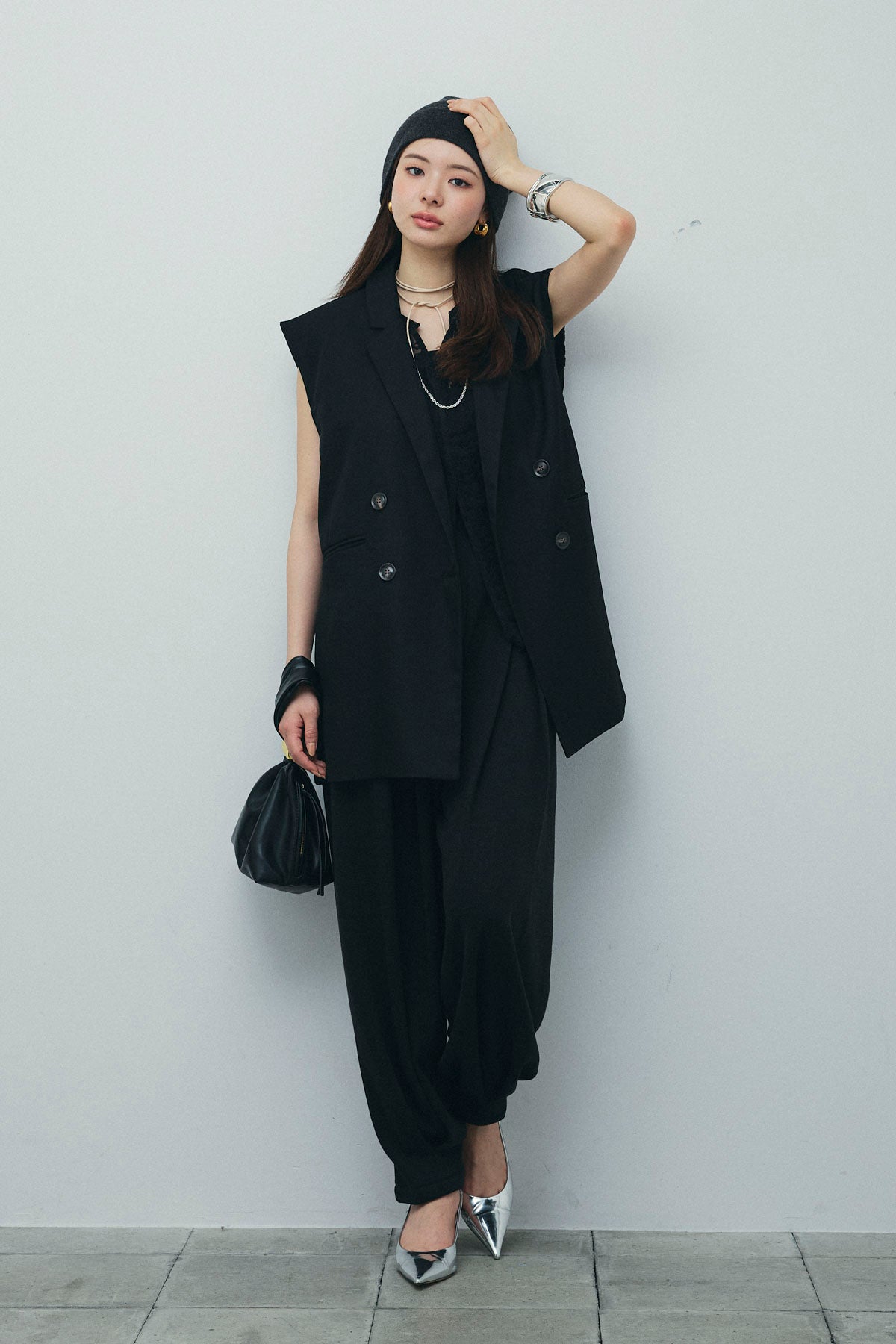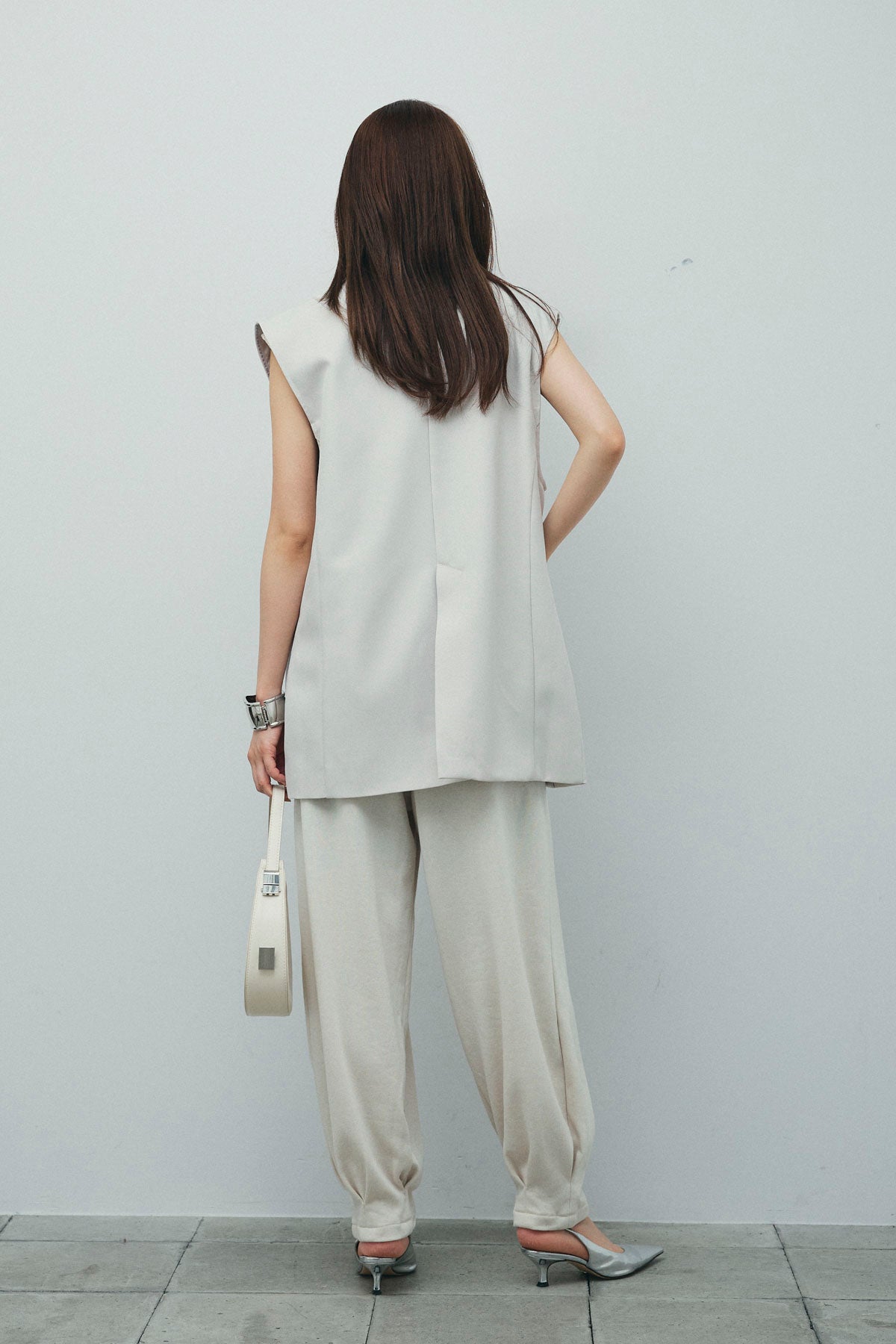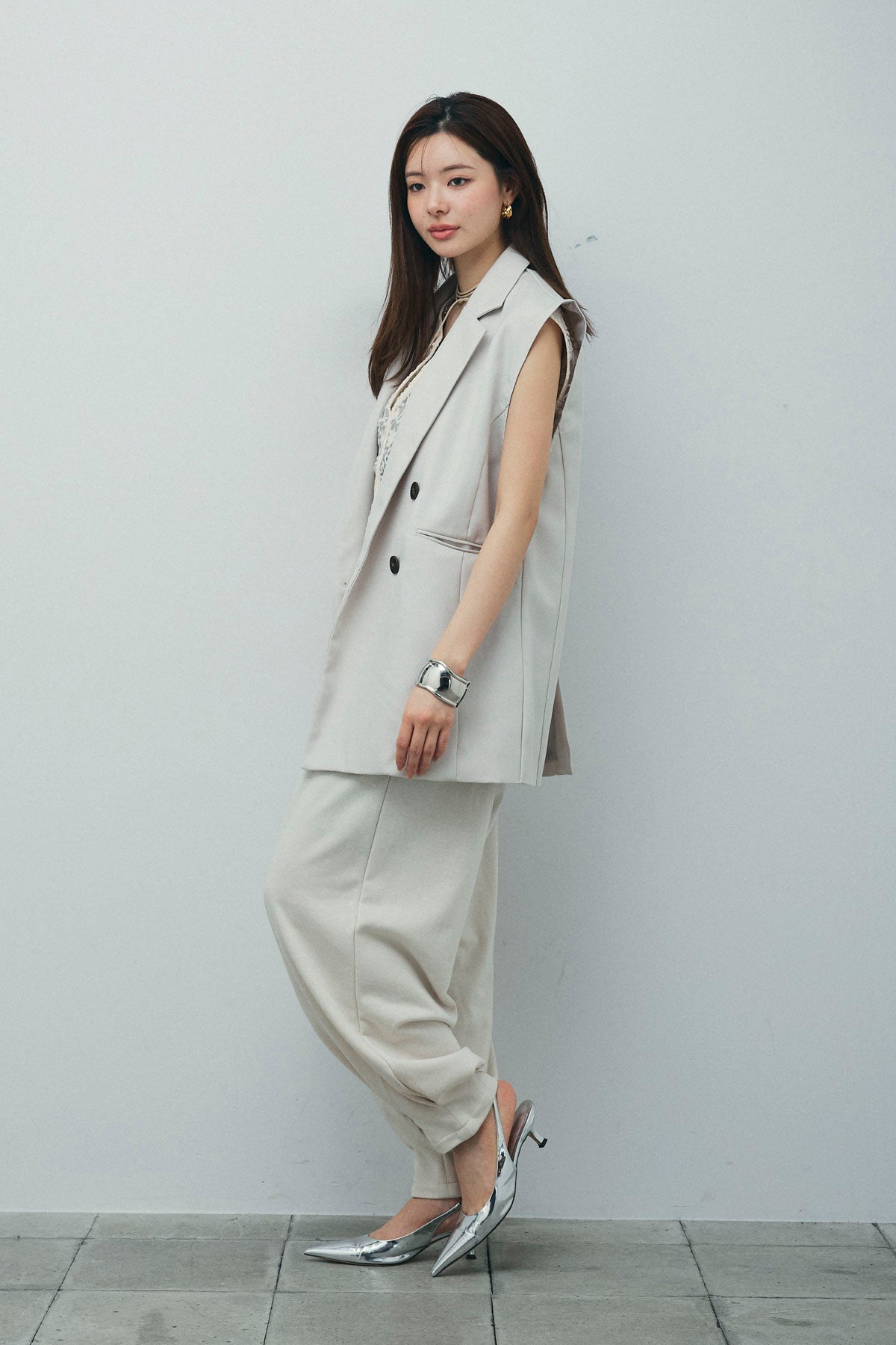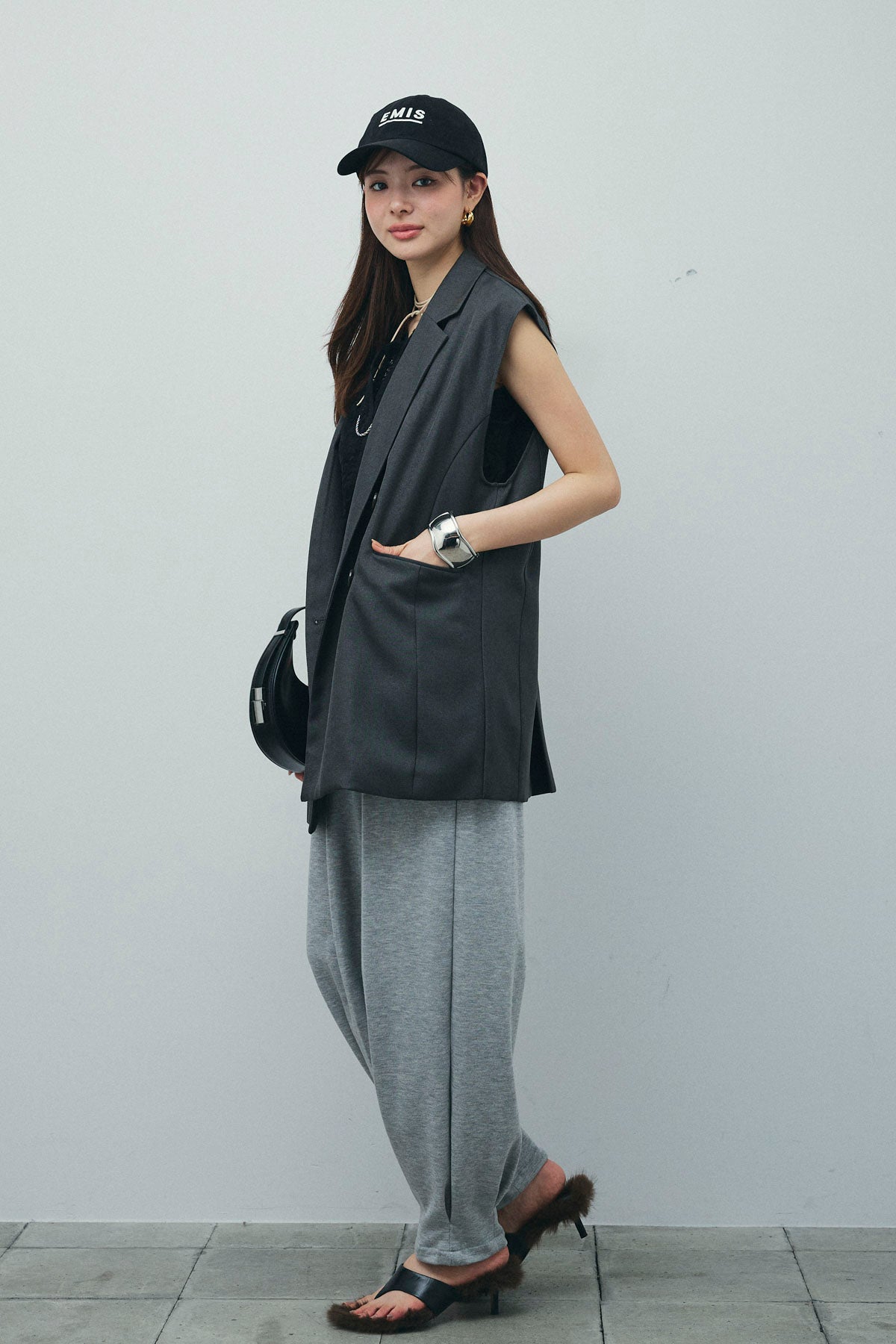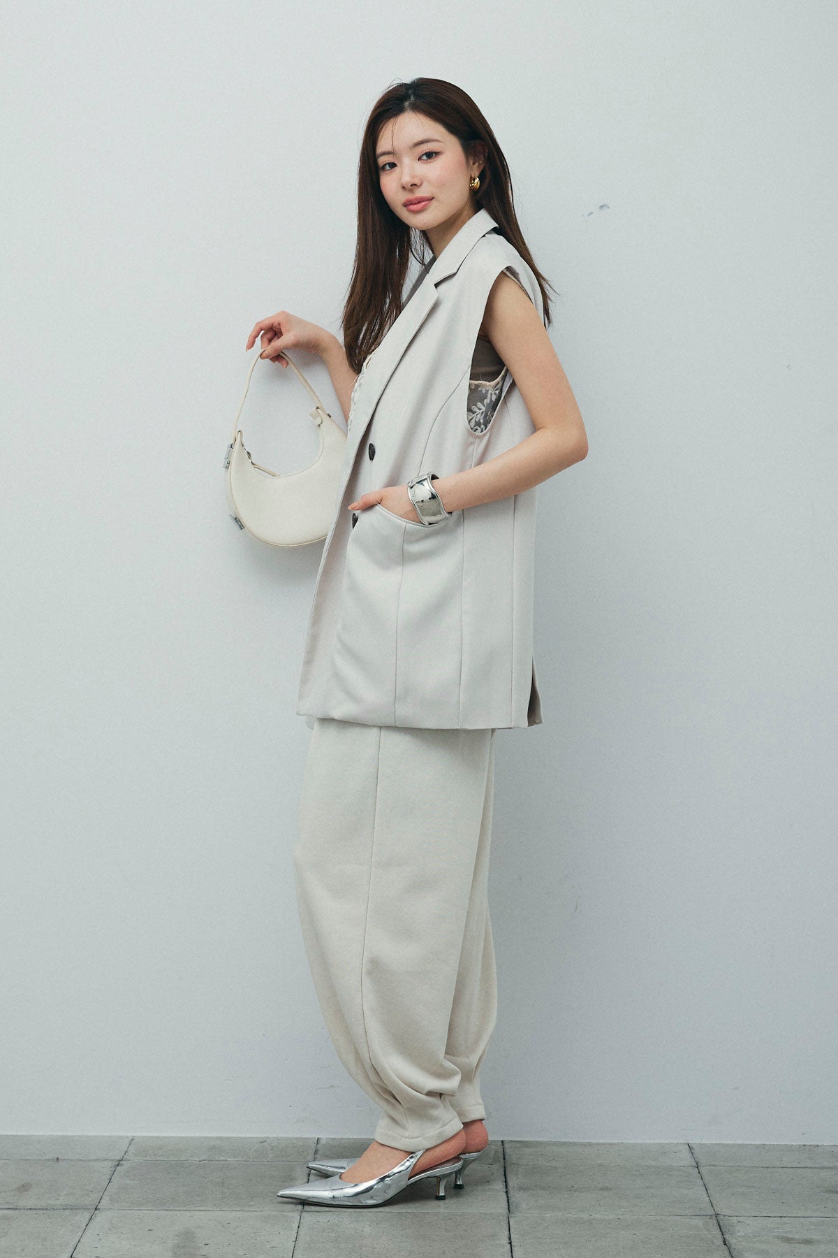 [予約/SET]ヘザーエステルテーラードジレ+オーガンジーレースPO+タックボリュームスウェットパンツ(3set)