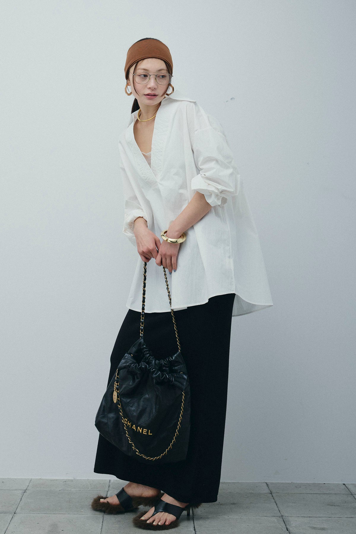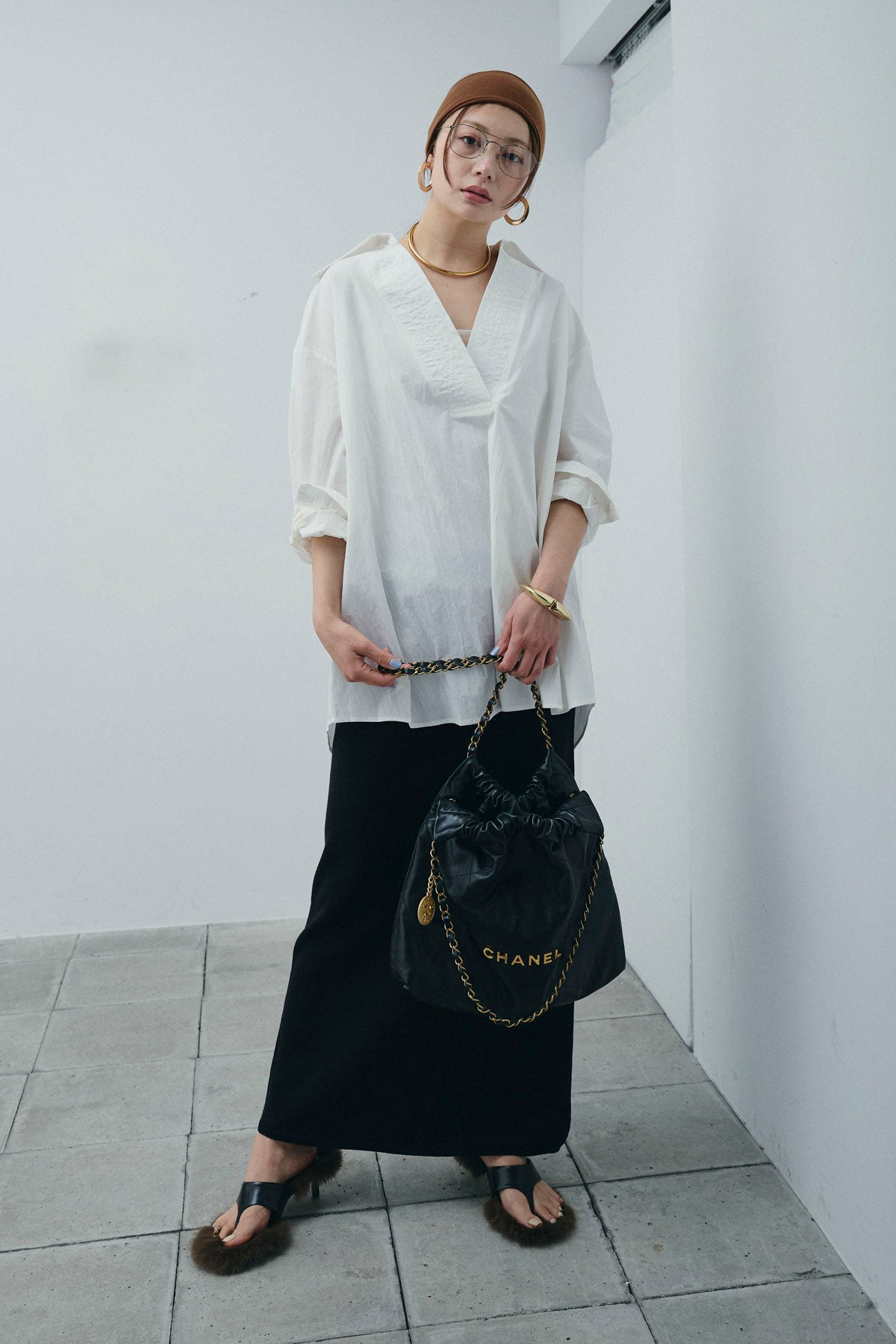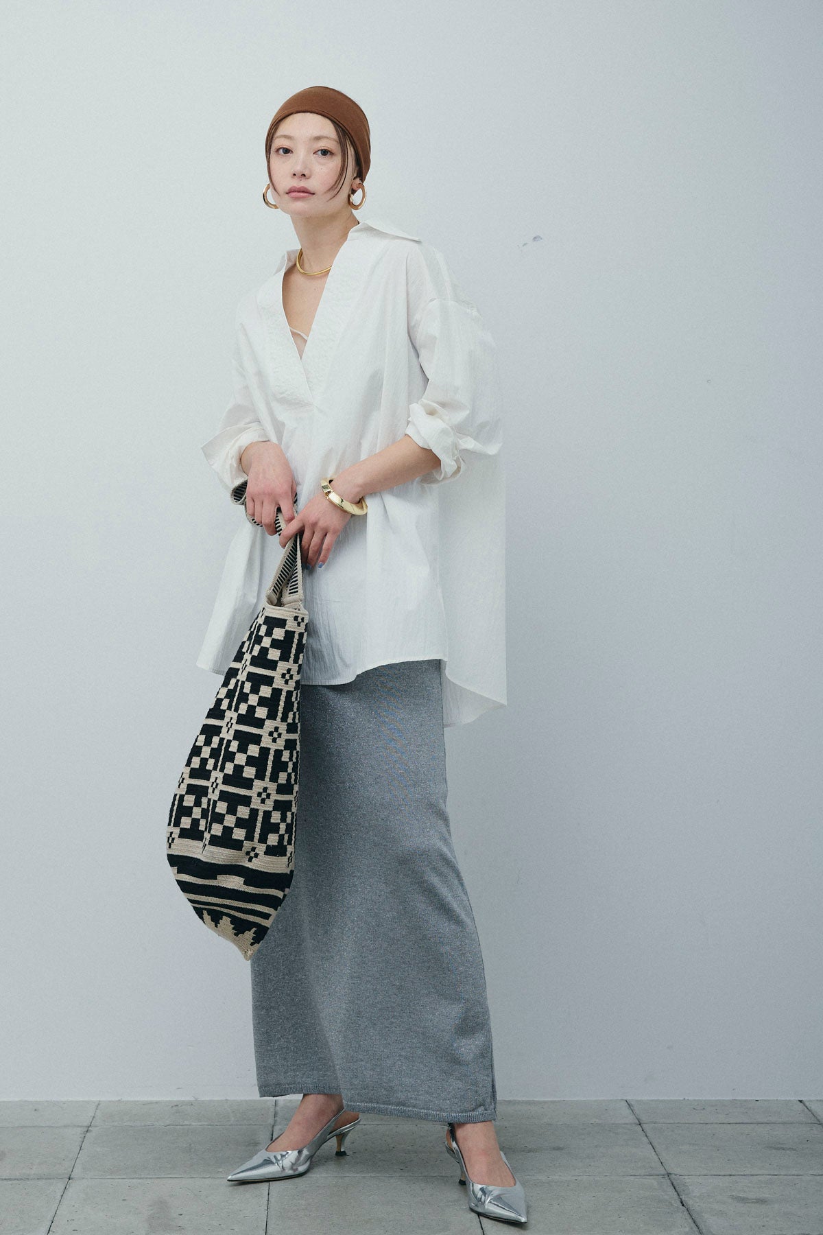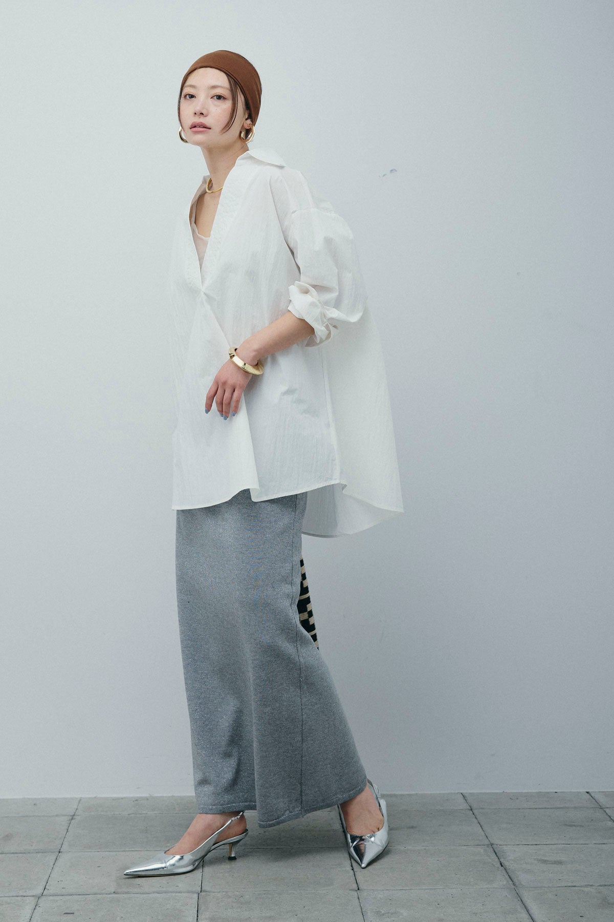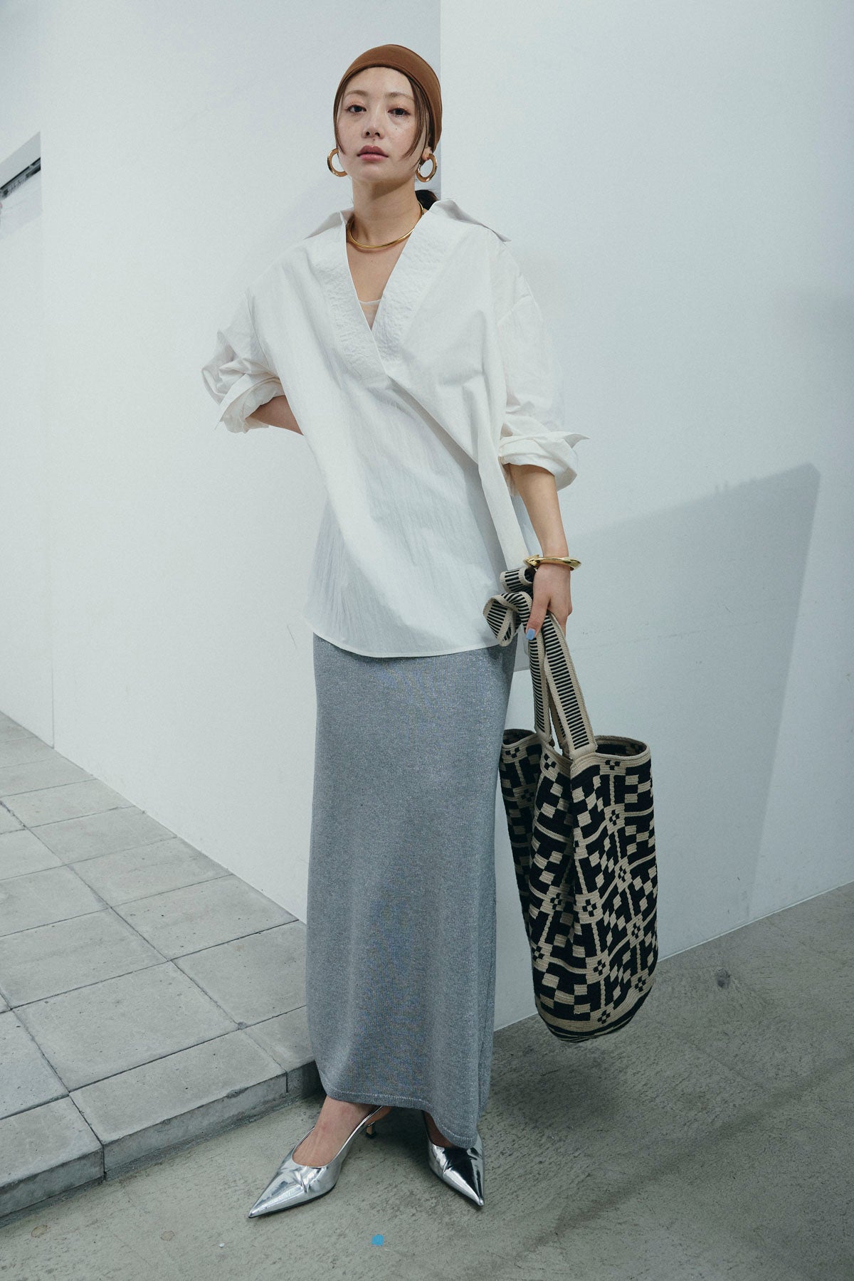 [予約/SET]スキッパービッグシャツ+ラメタイトスカート(2set)