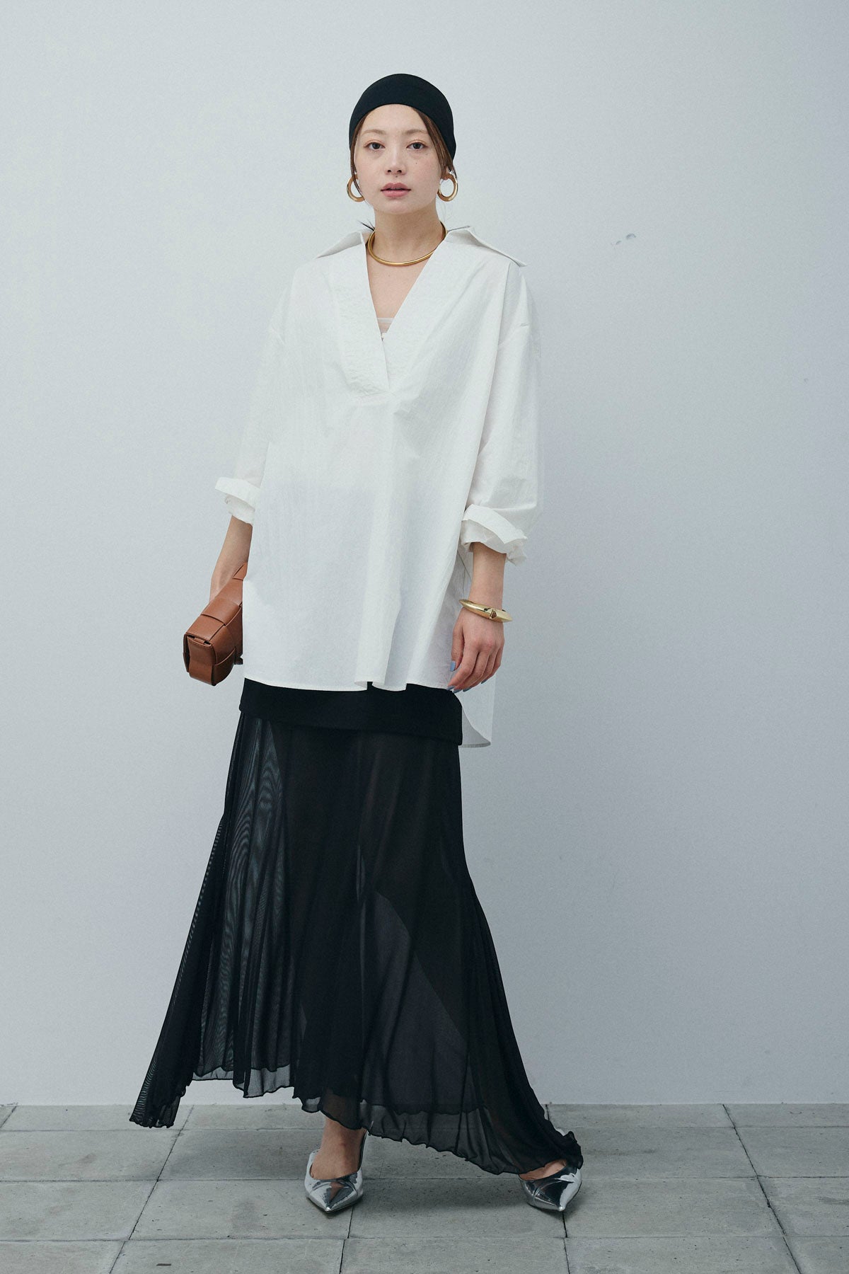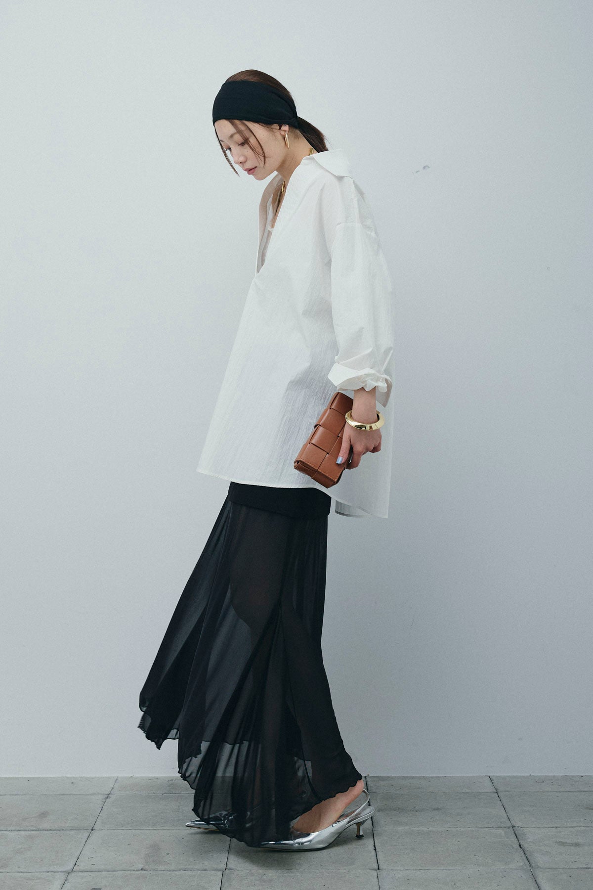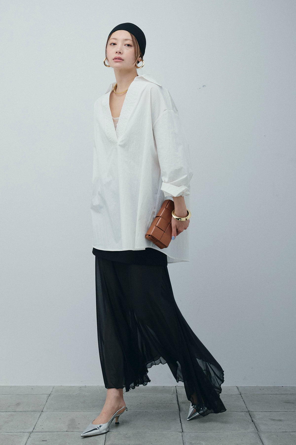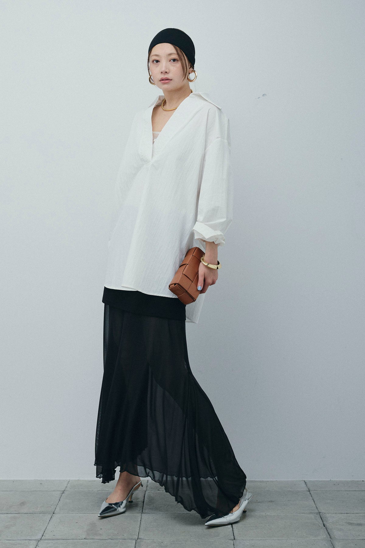 [予約/SET]スキッパービッグシャツ+チュールレイヤードミニスカート(2set)