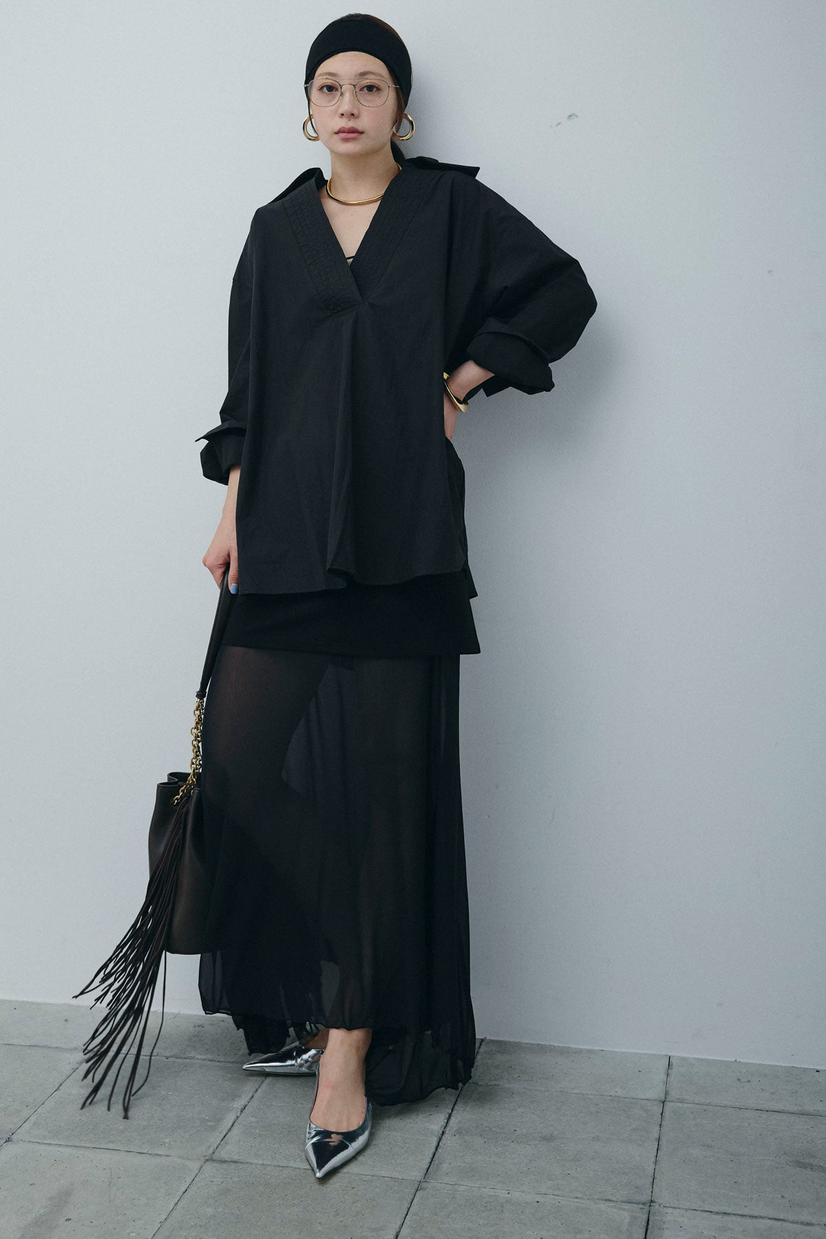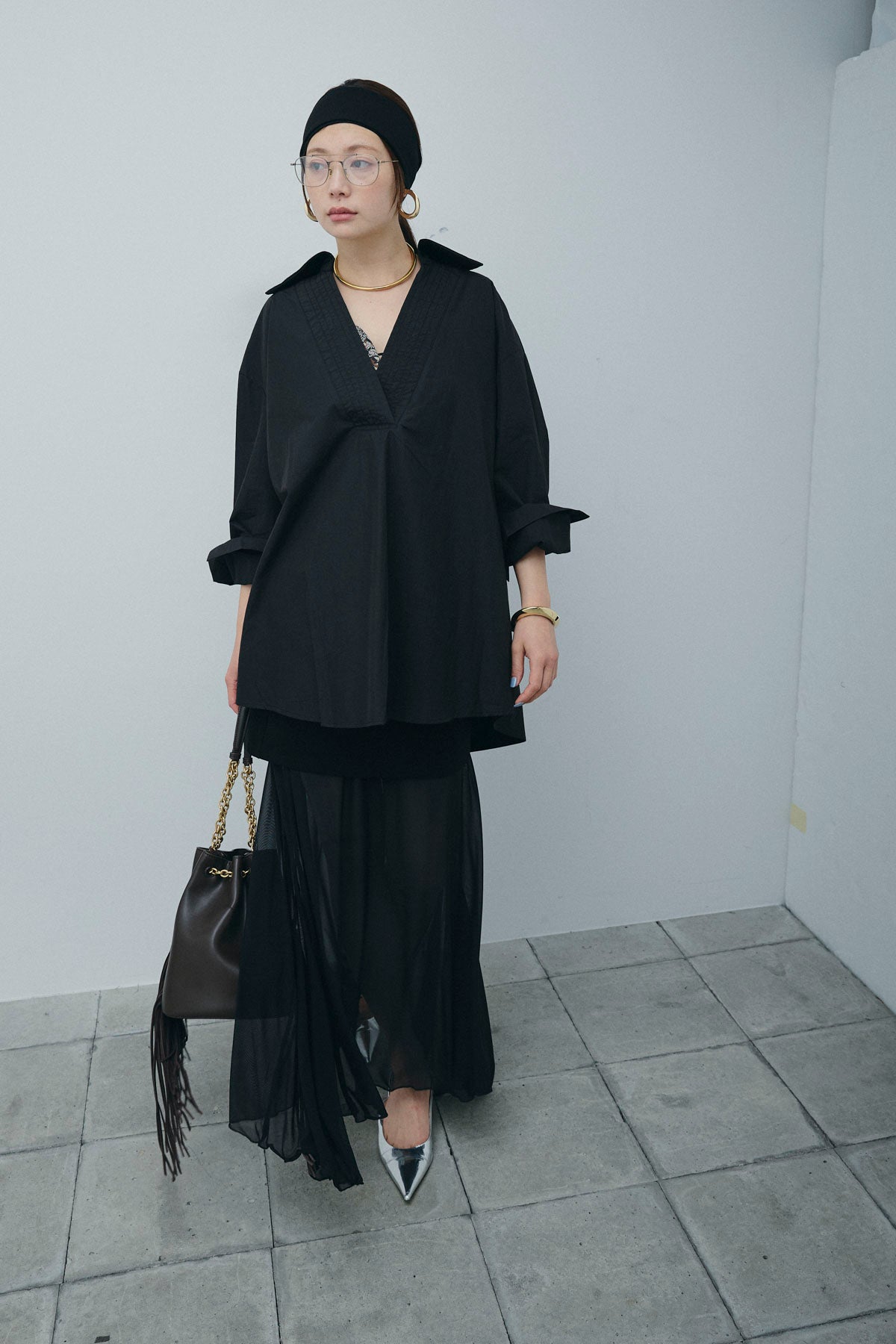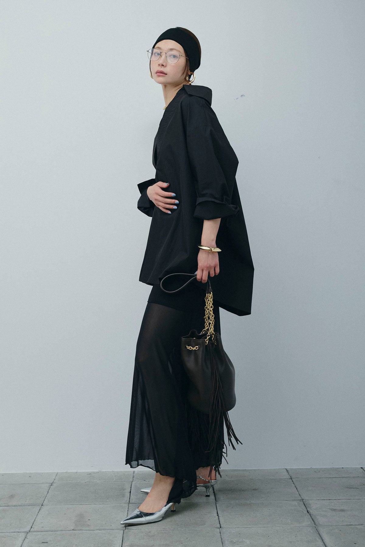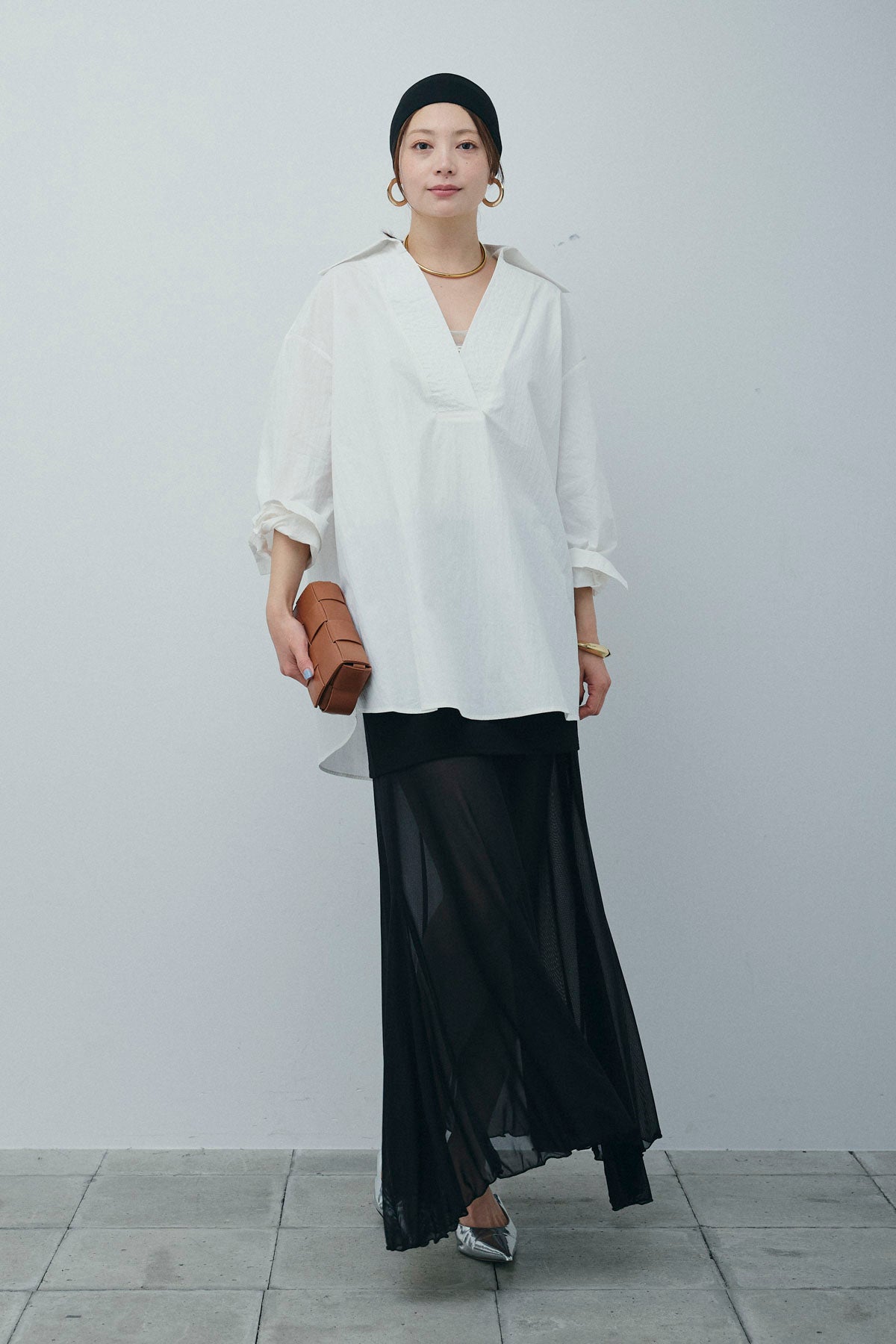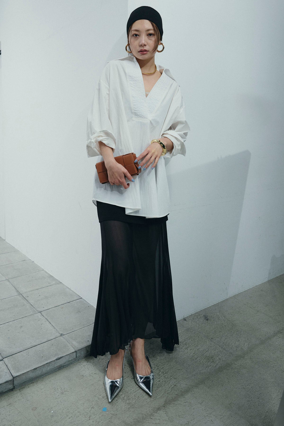 [予約/SET]スキッパービッグシャツ+チュールレイヤードミニスカート(2set)