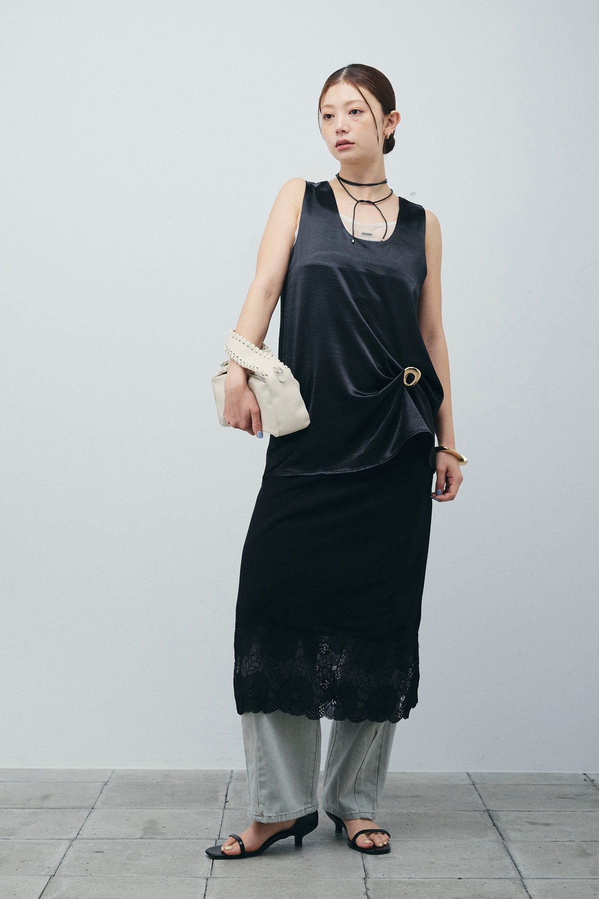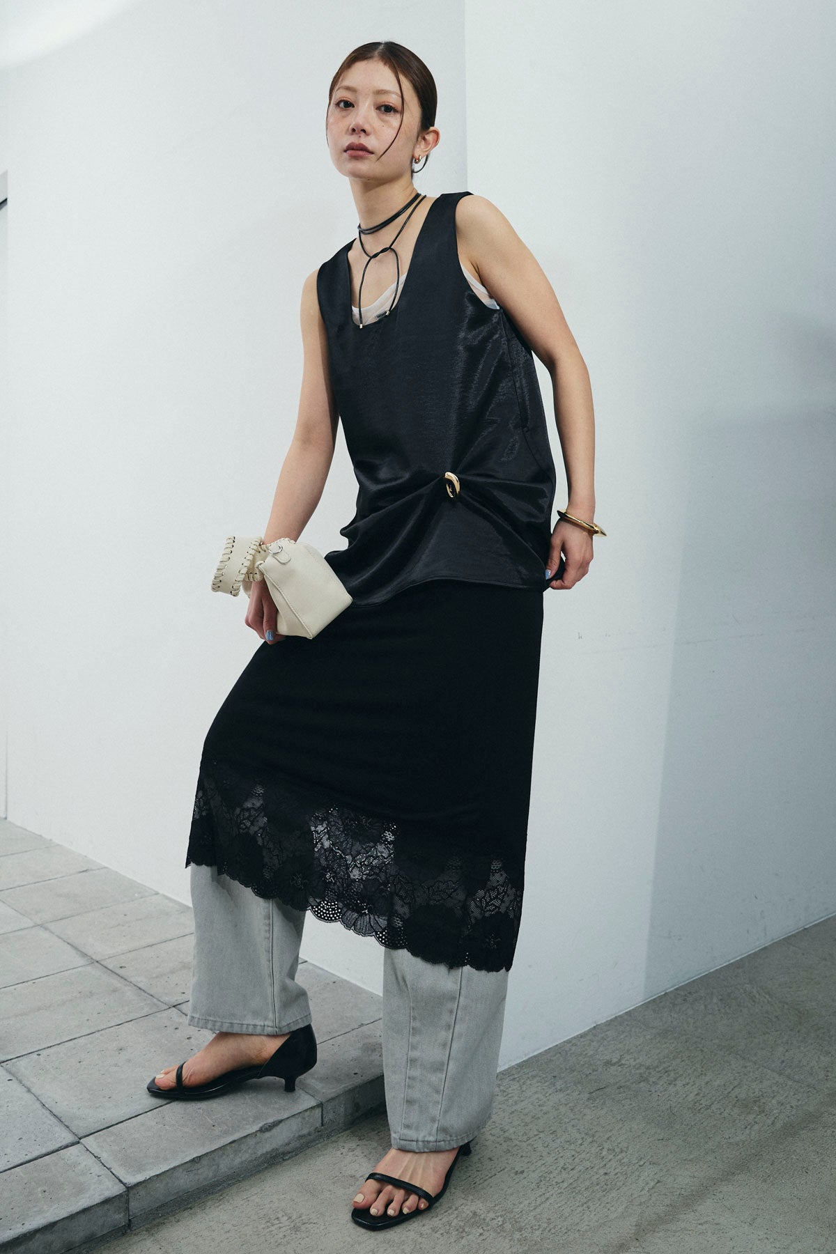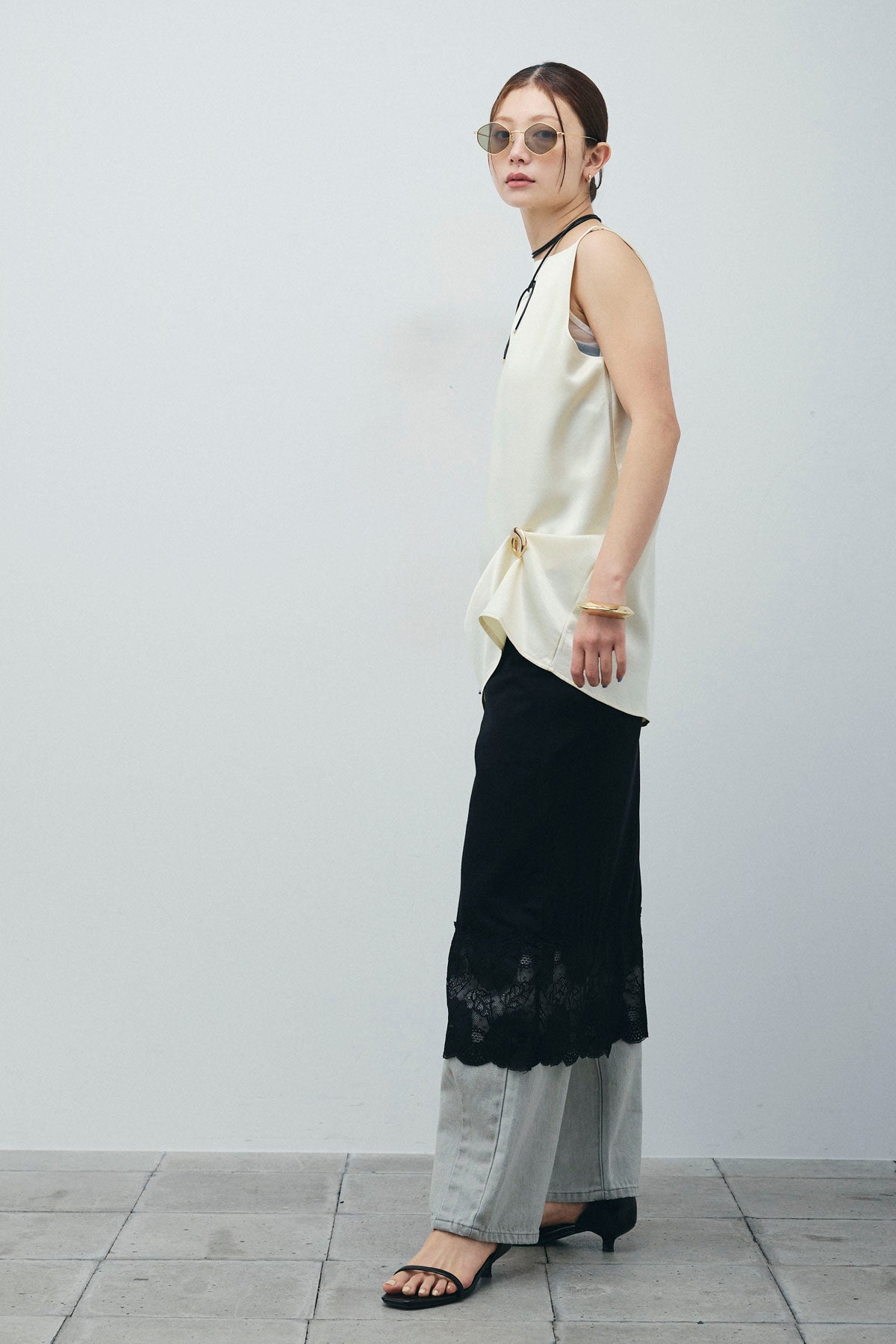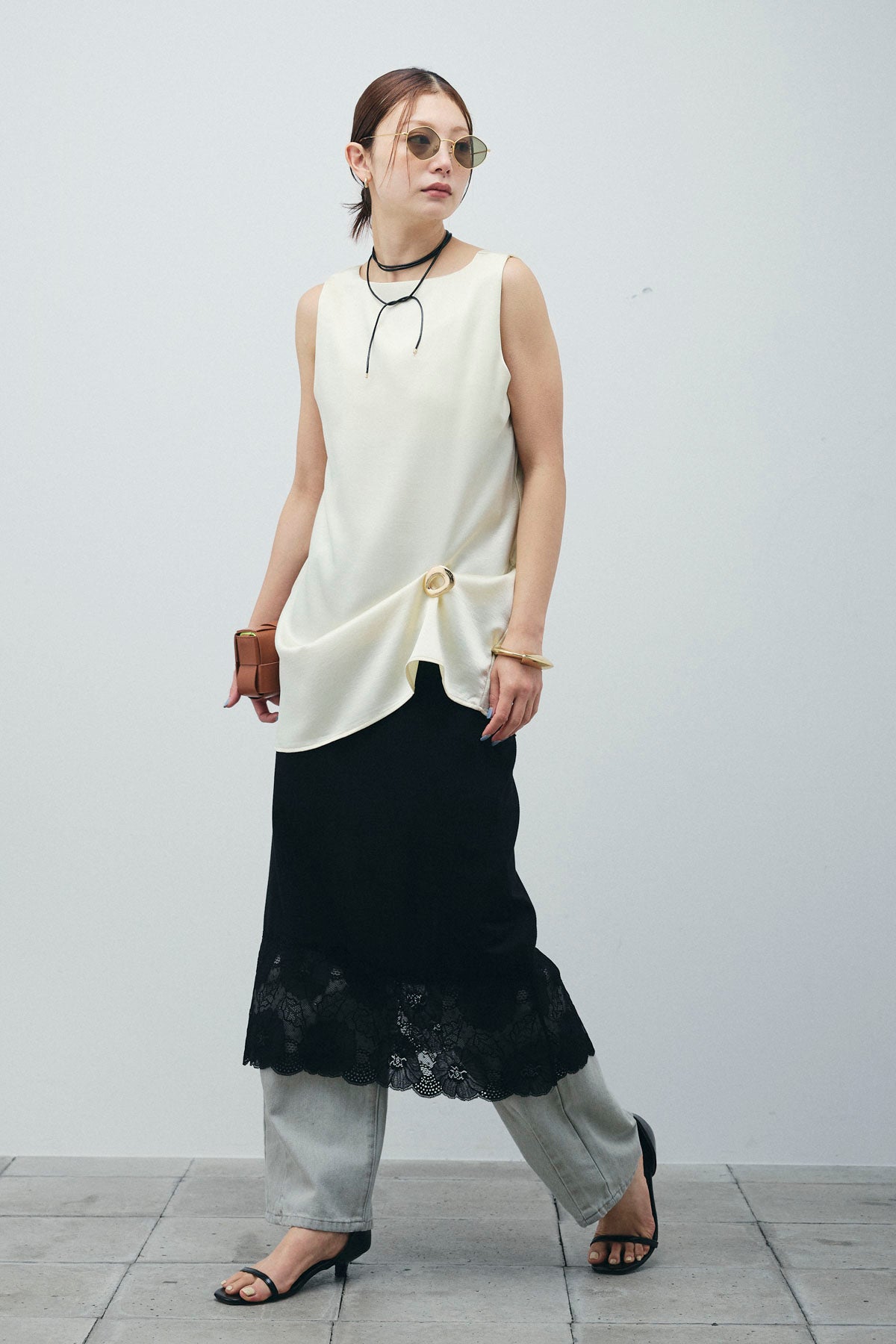 [予約/SET]サテン2wayトップス+レース付きカットスカート+ヴィンテージカーブデニムパンツ(3set)