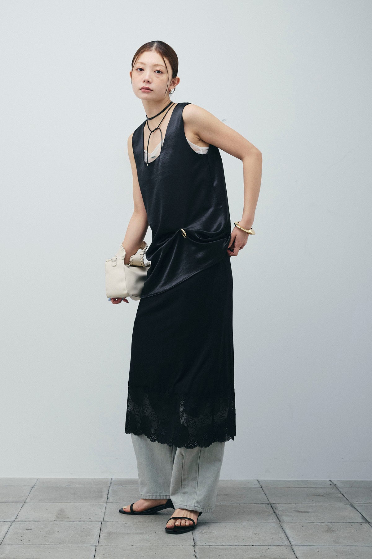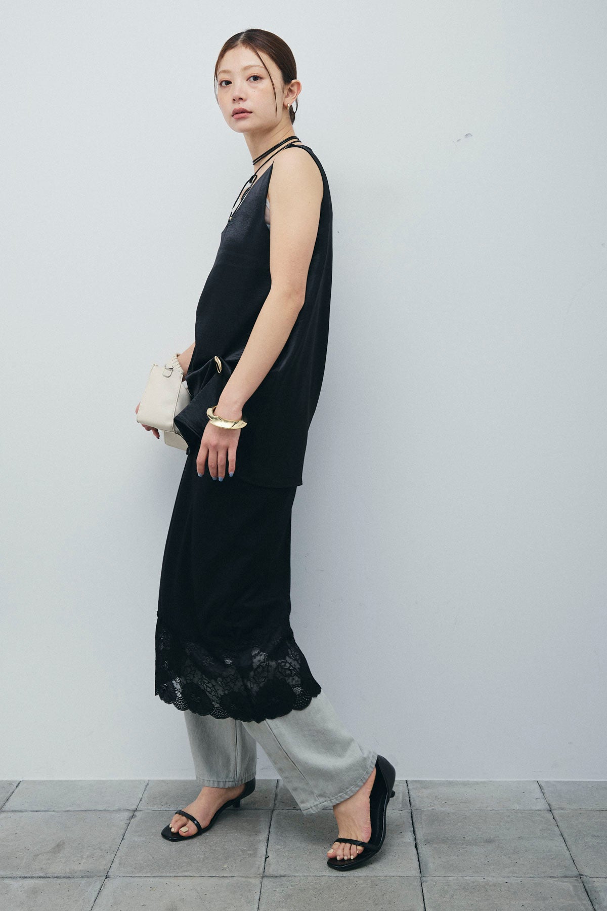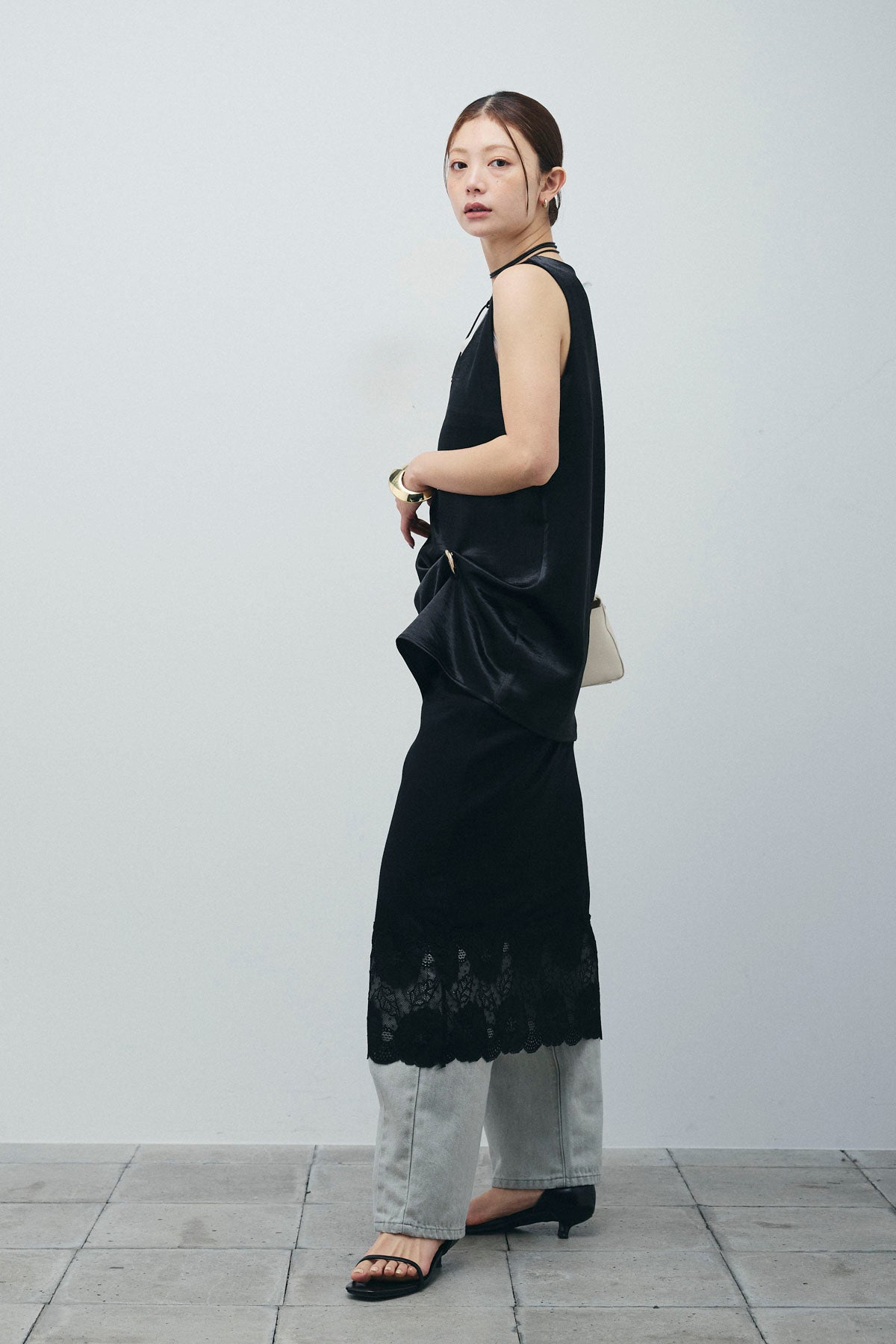 [予約/SET]サテン2wayトップス+レース付きカットスカート+ヴィンテージカーブデニムパンツ(3set)