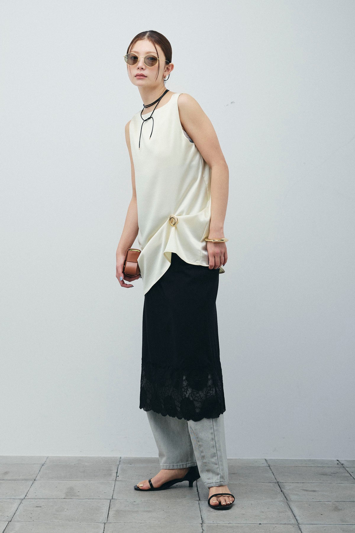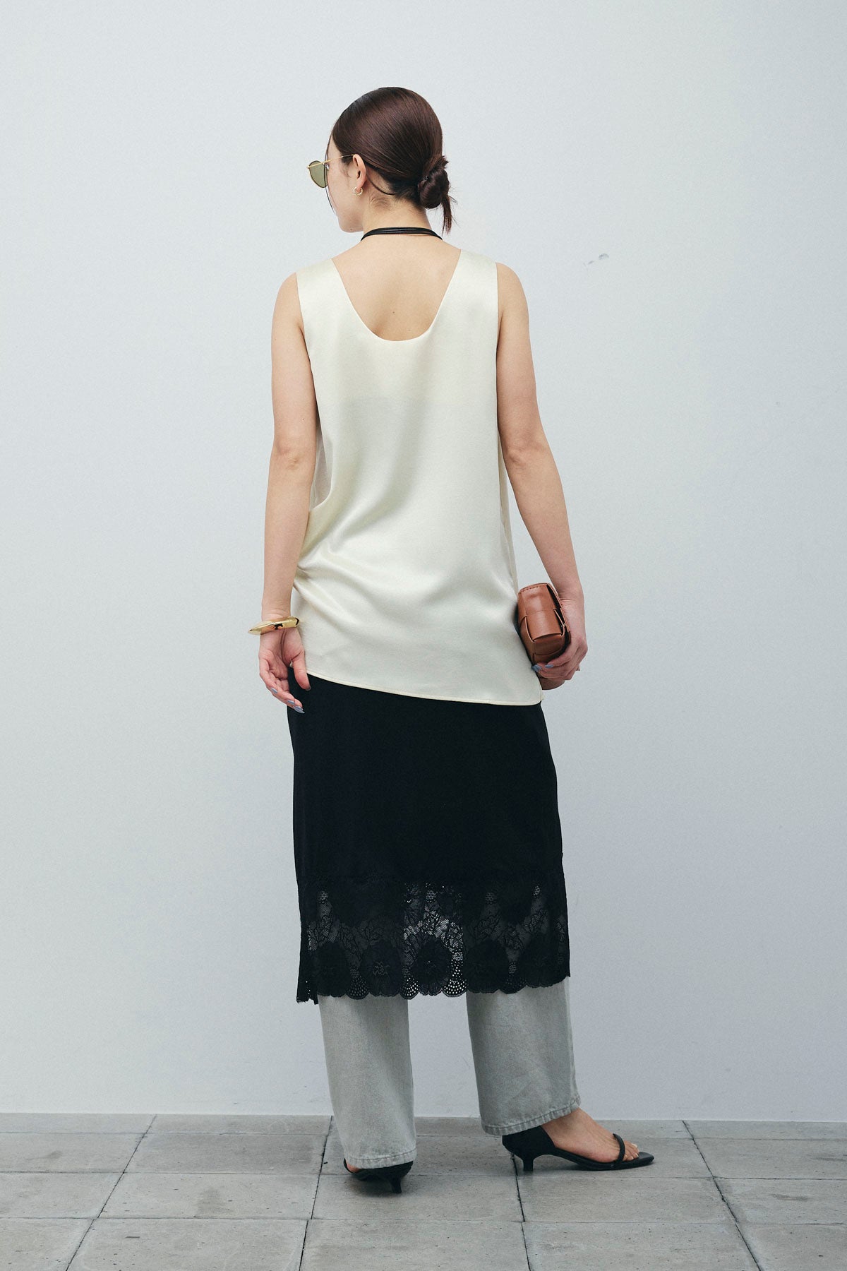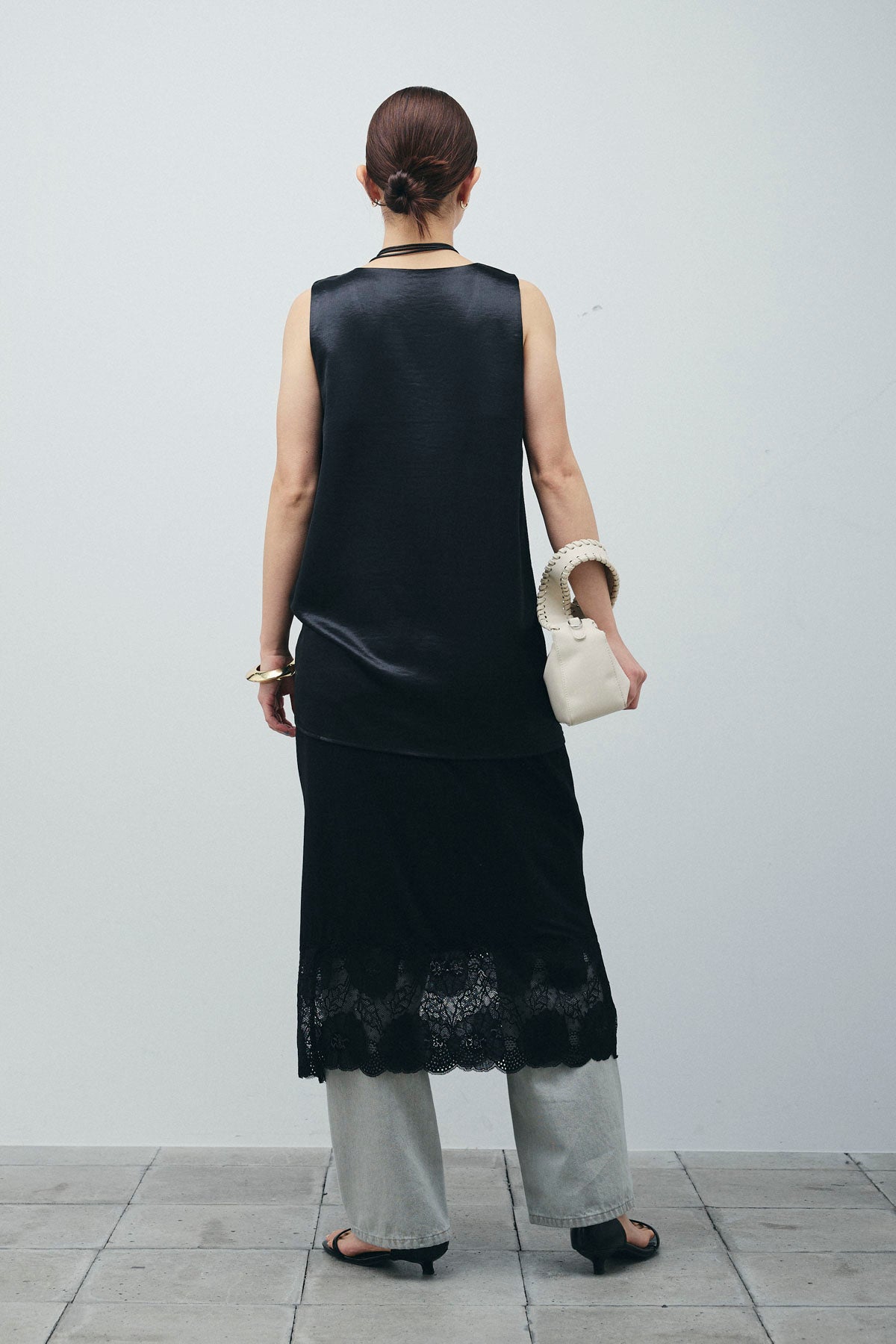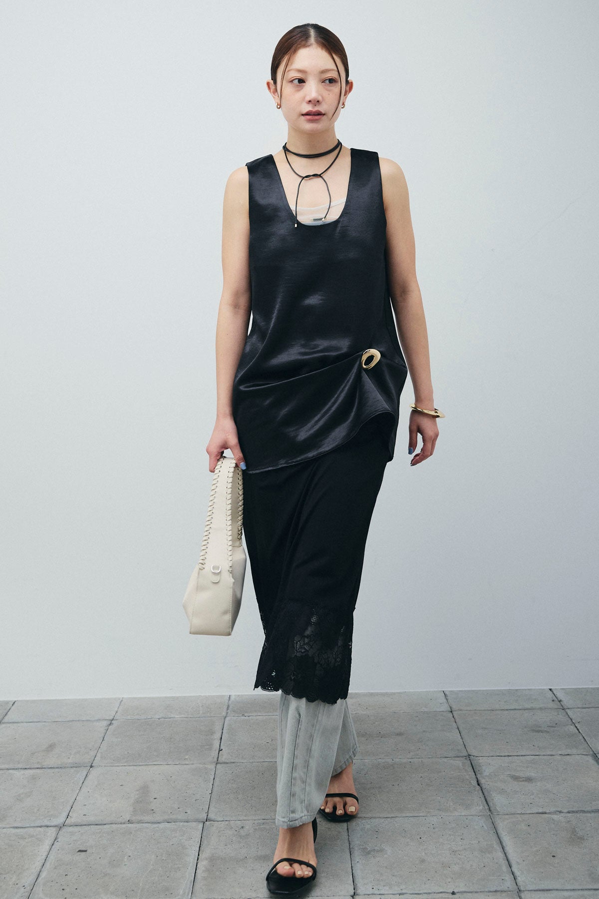 [予約/SET]サテン2wayトップス+レース付きカットスカート+ヴィンテージカーブデニムパンツ(3set)