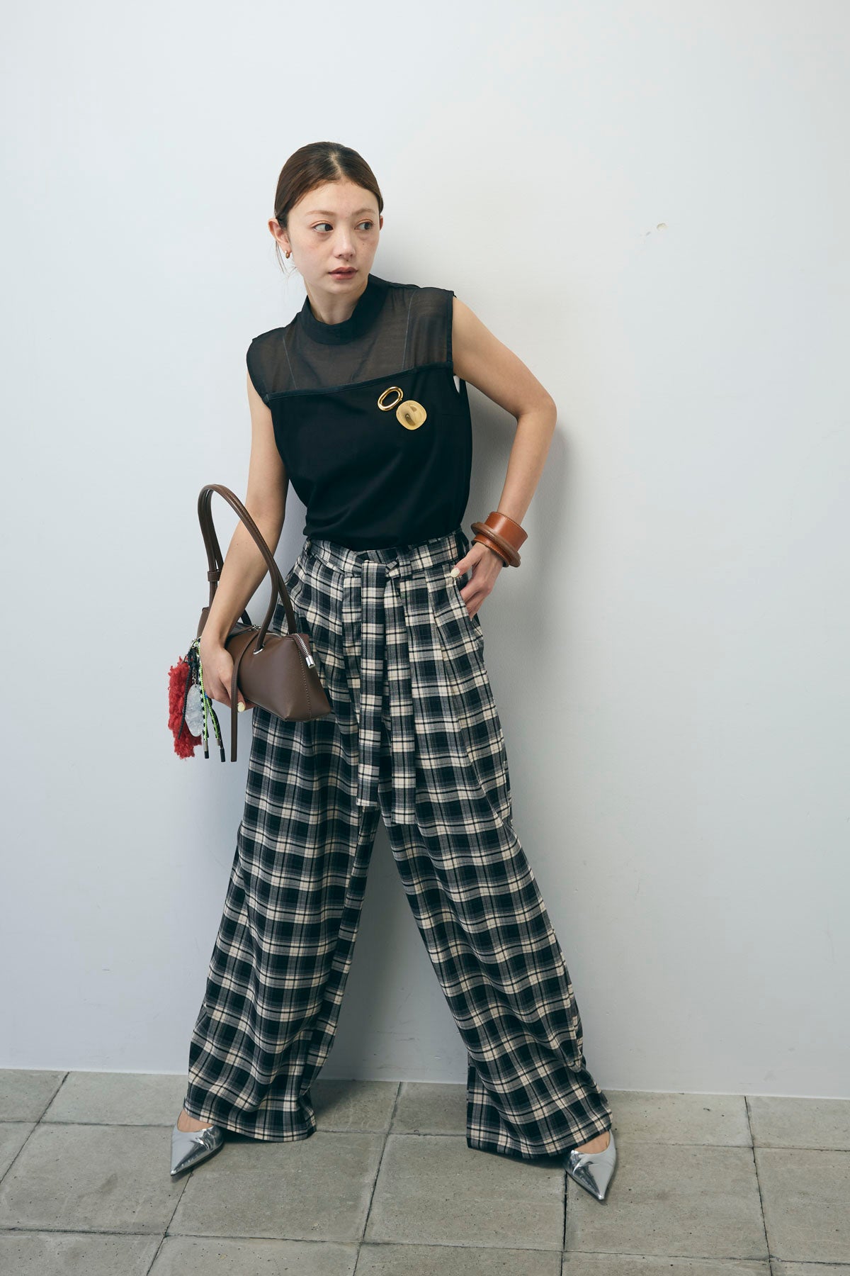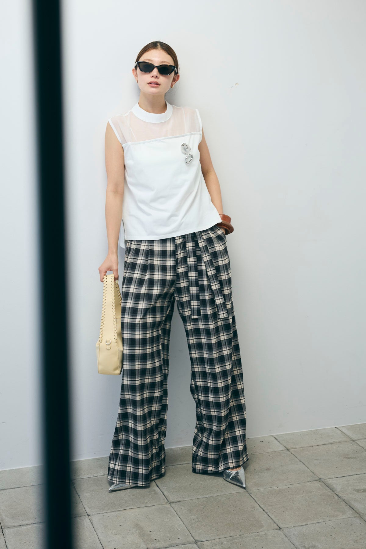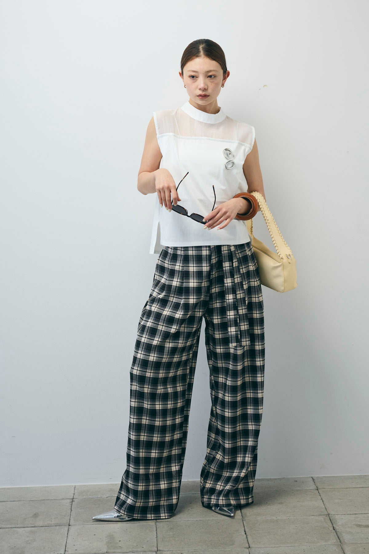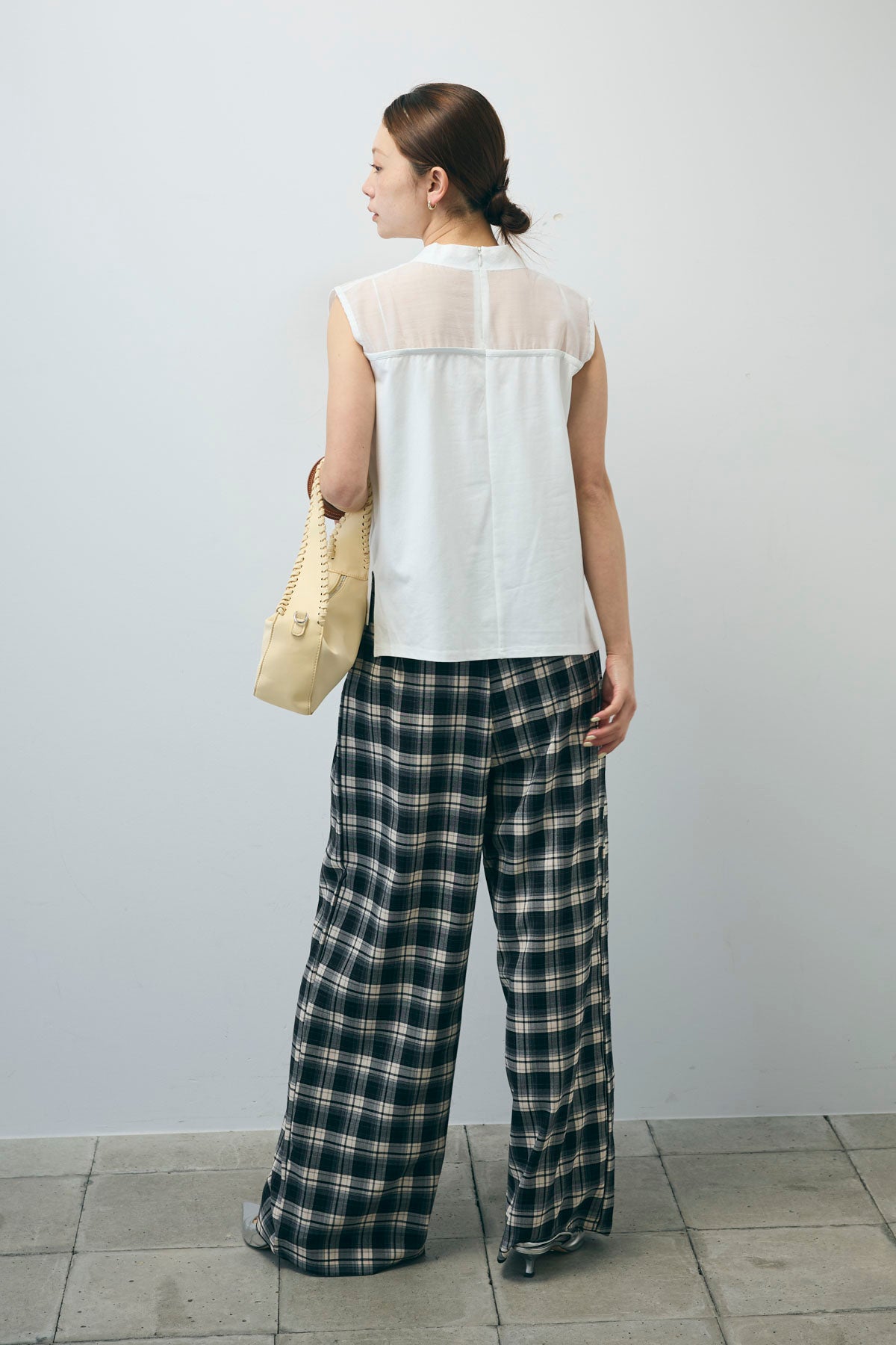 [予約/SET]シアー切替えノースリーブ+チェックパンツ(2set)