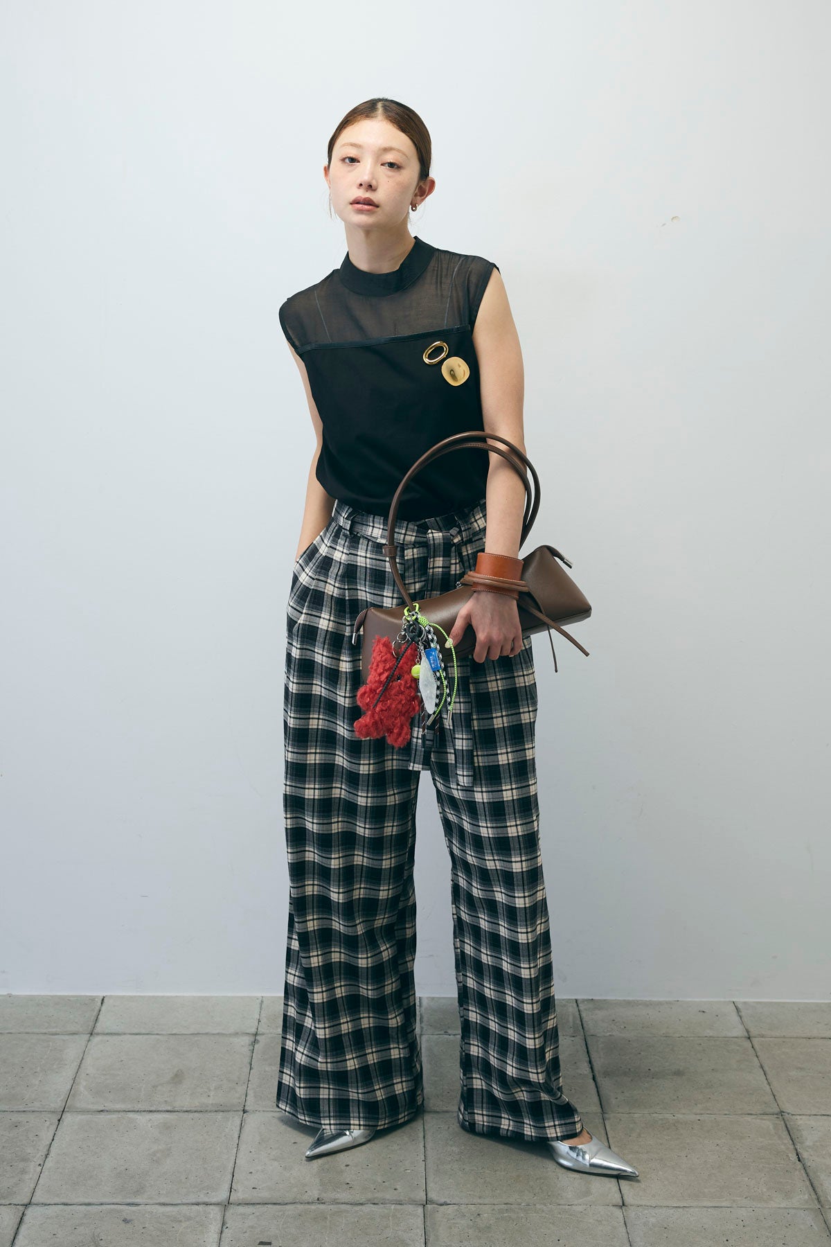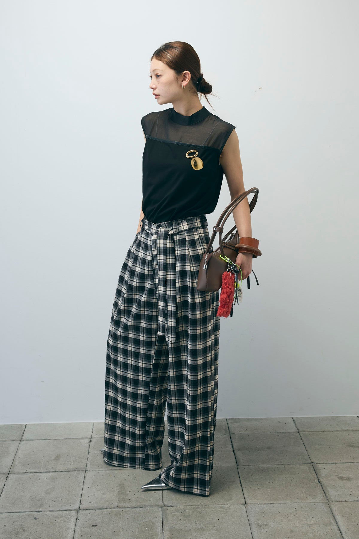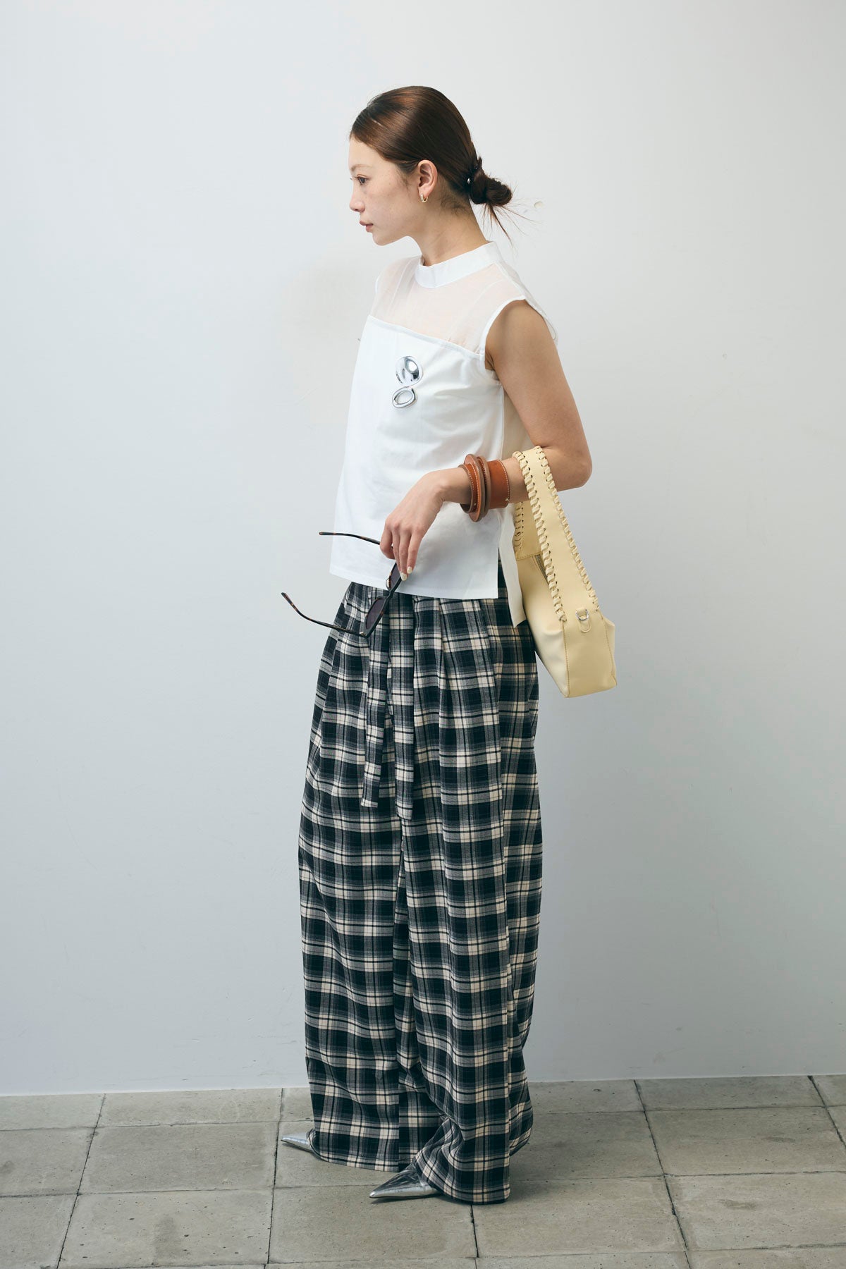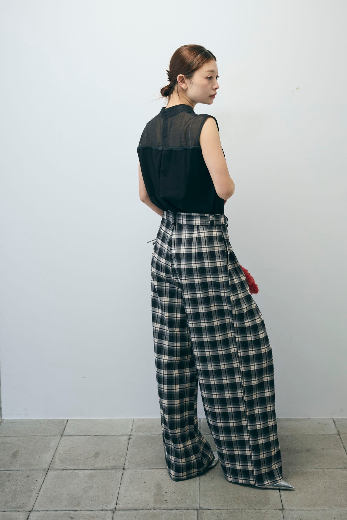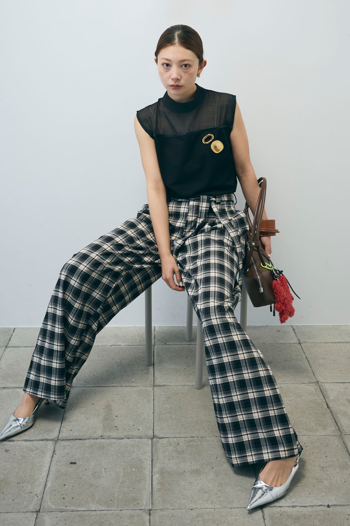 [予約/SET]シアー切替えノースリーブ+チェックパンツ(2set)