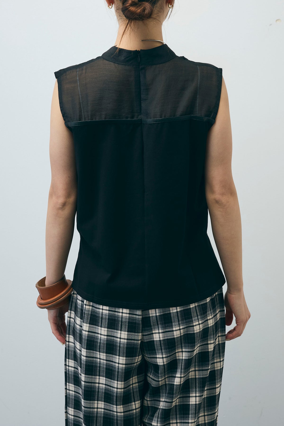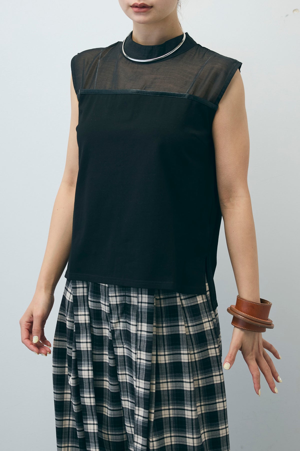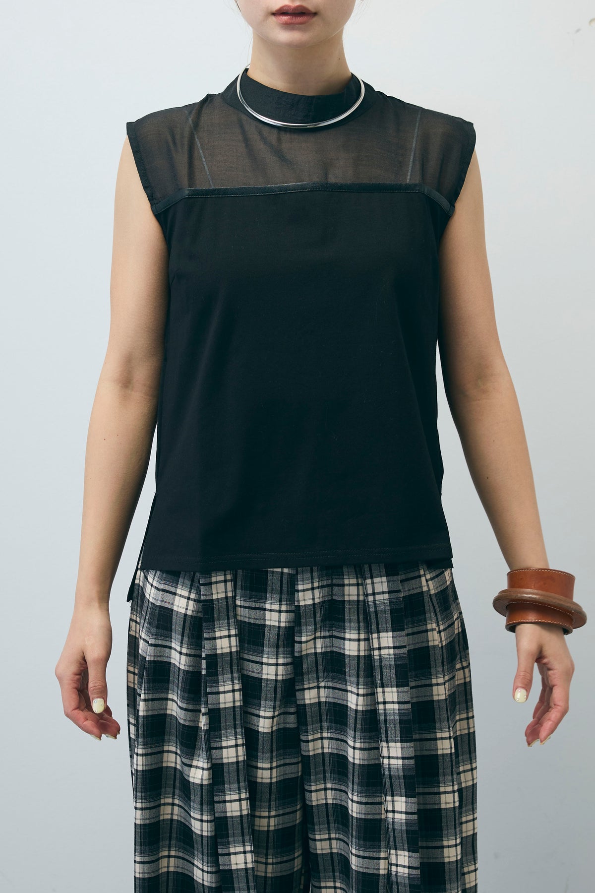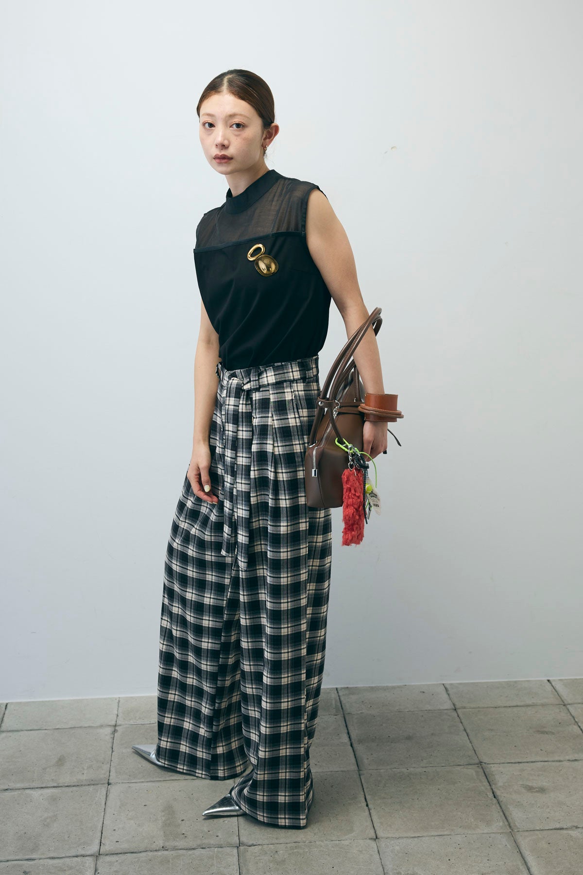 [予約/SET]シアー切替えノースリーブ+チェックパンツ(2set)