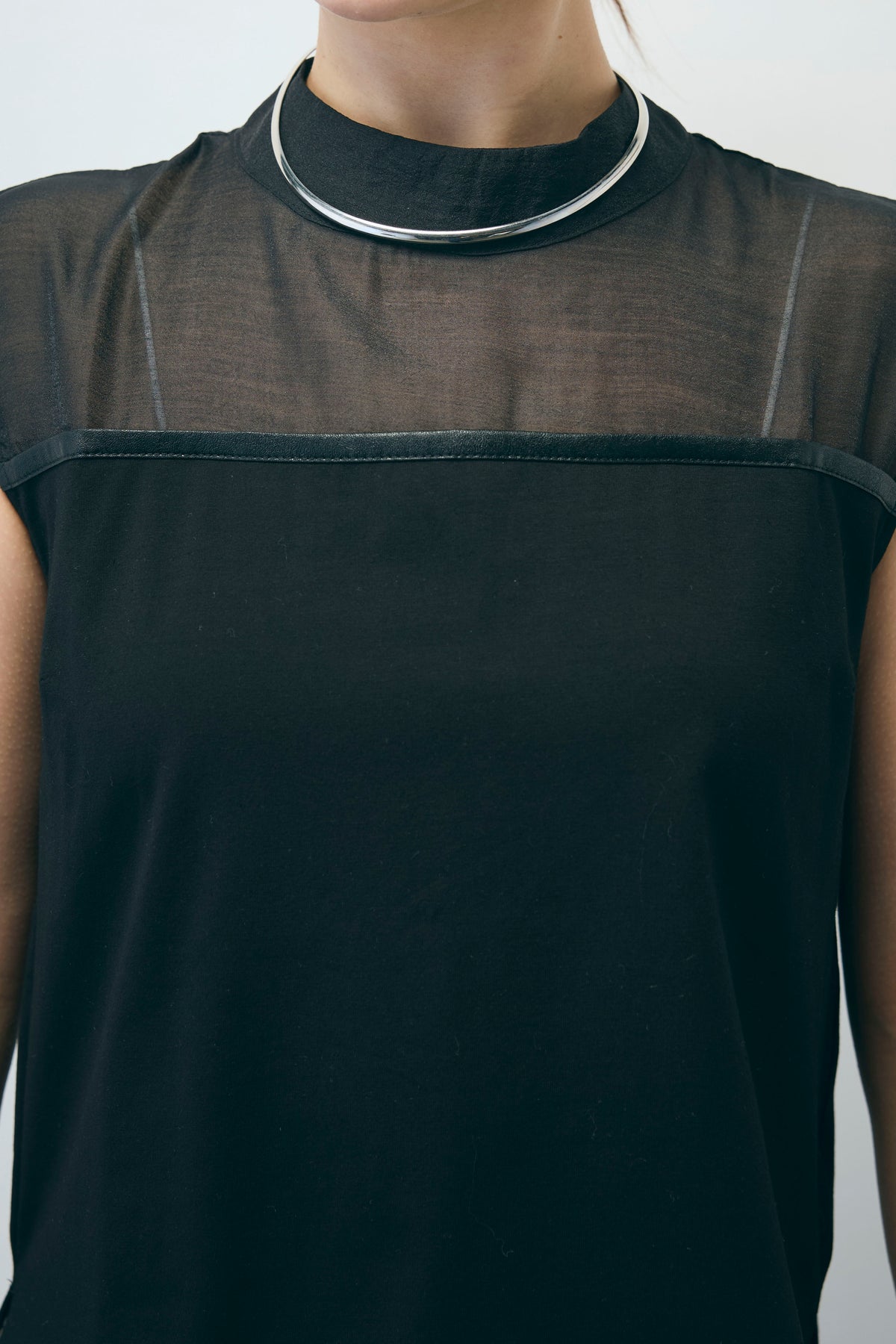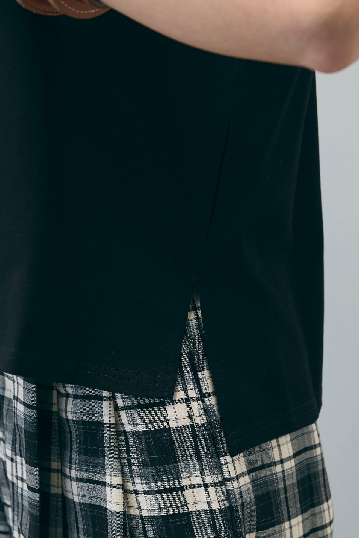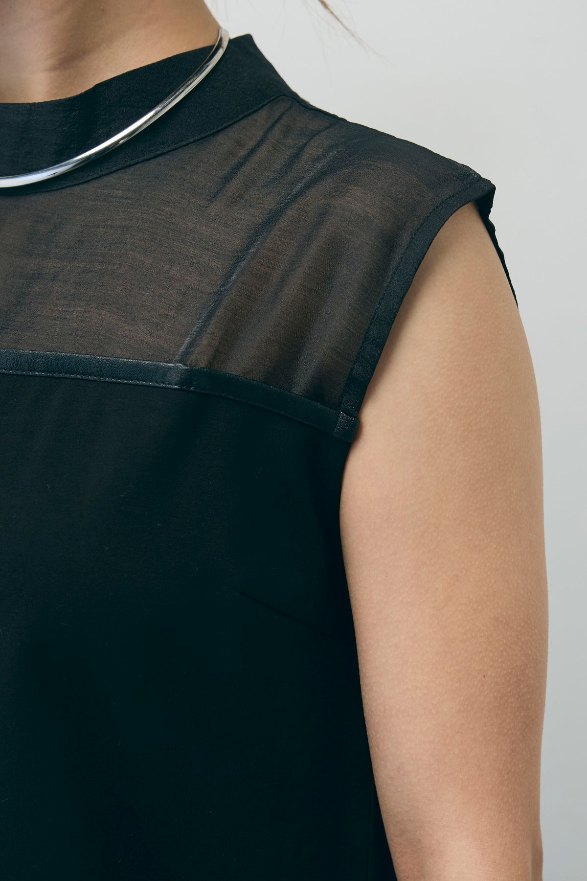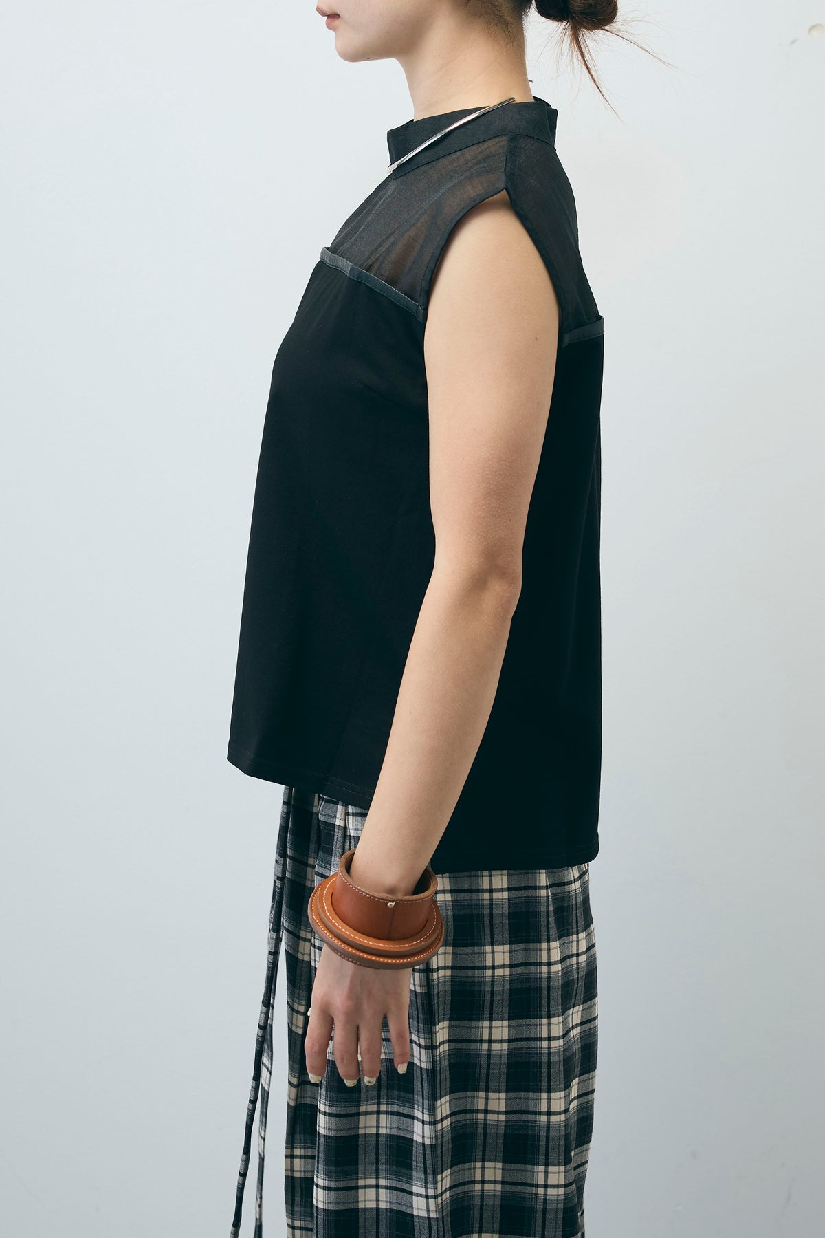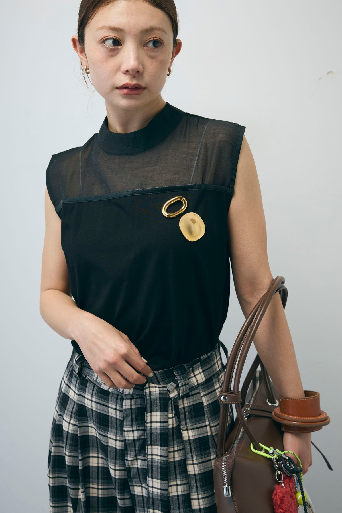 [予約/SET]シアー切替えノースリーブ+チェックパンツ(2set)