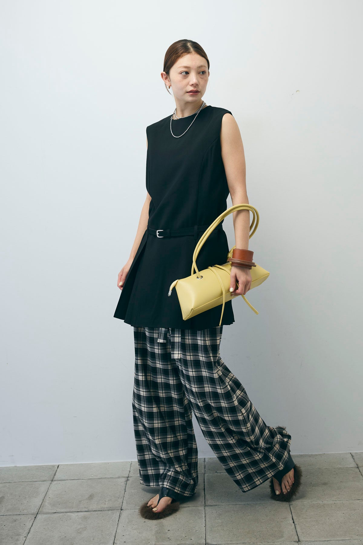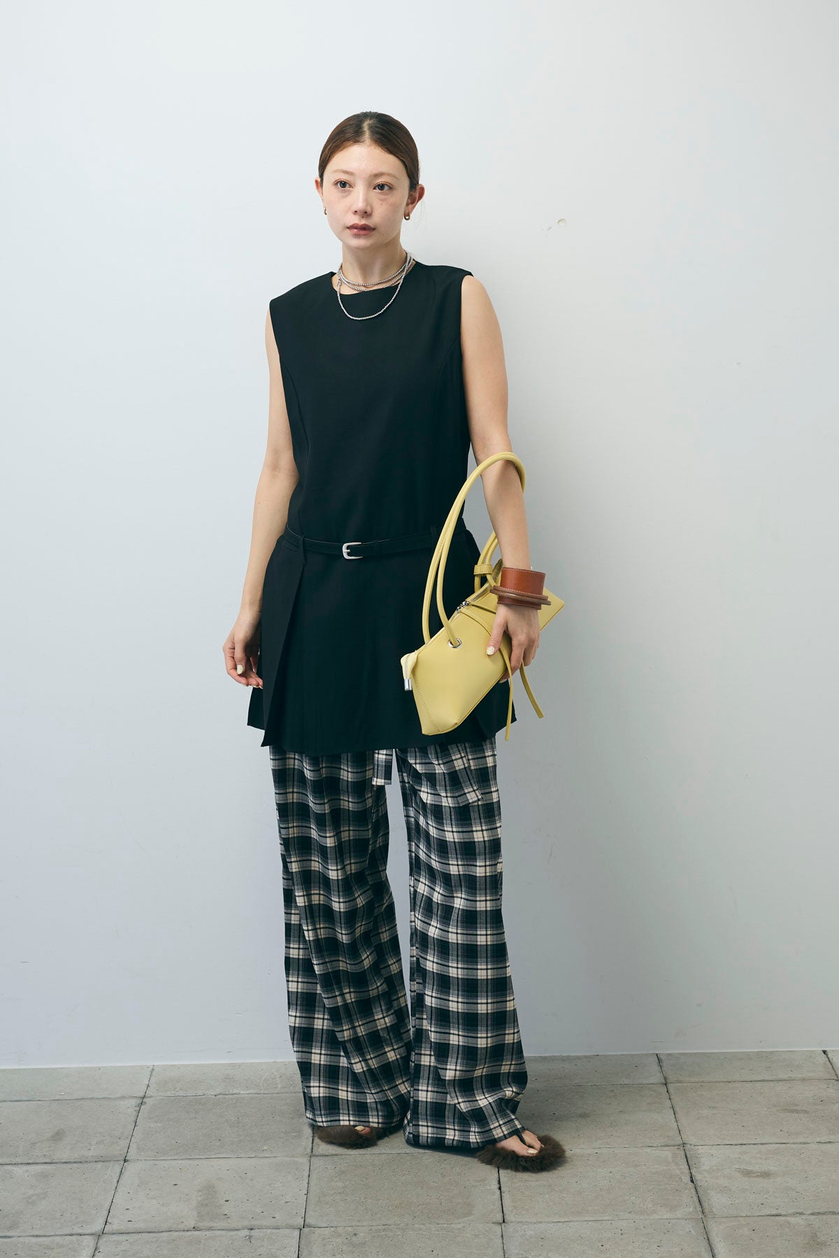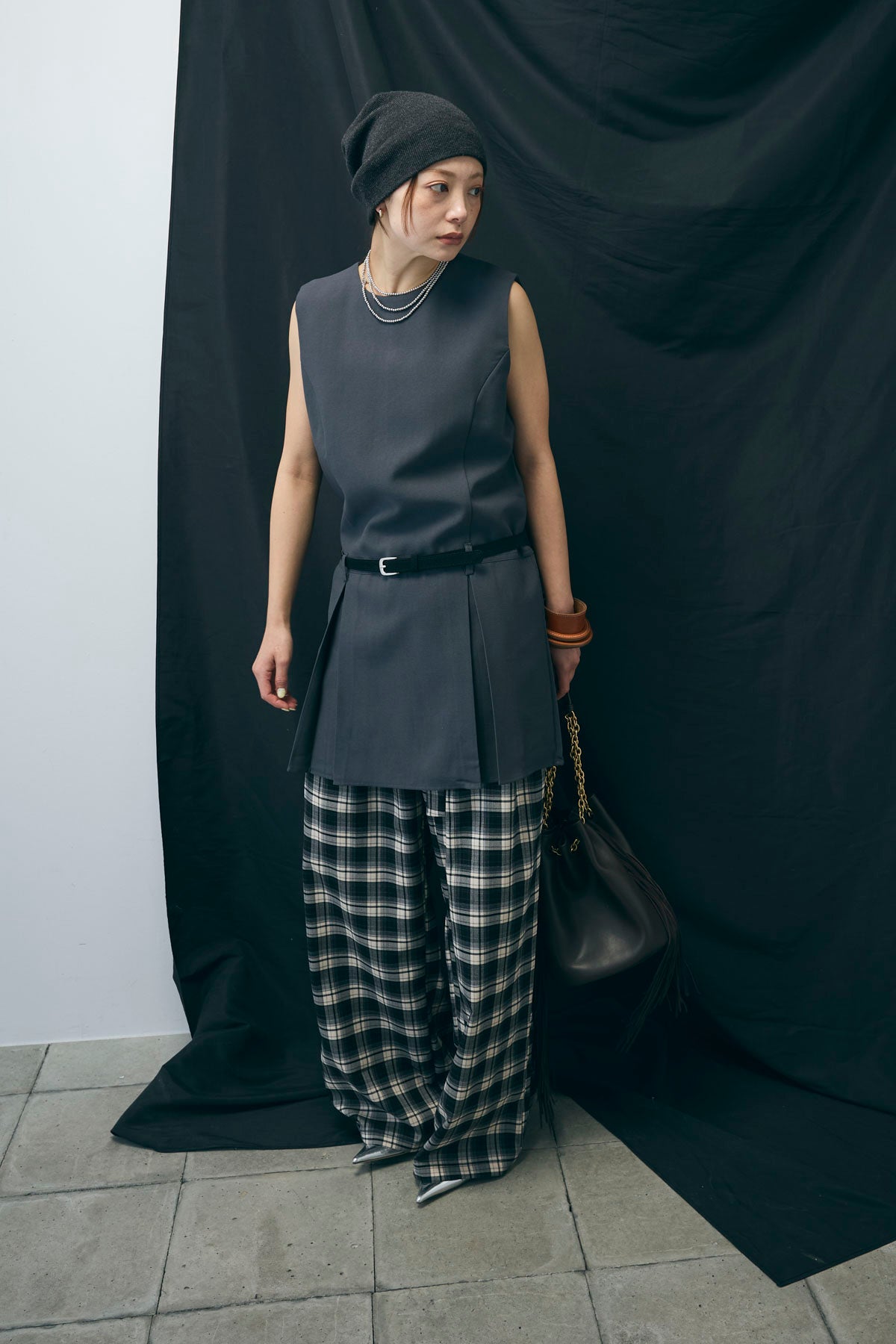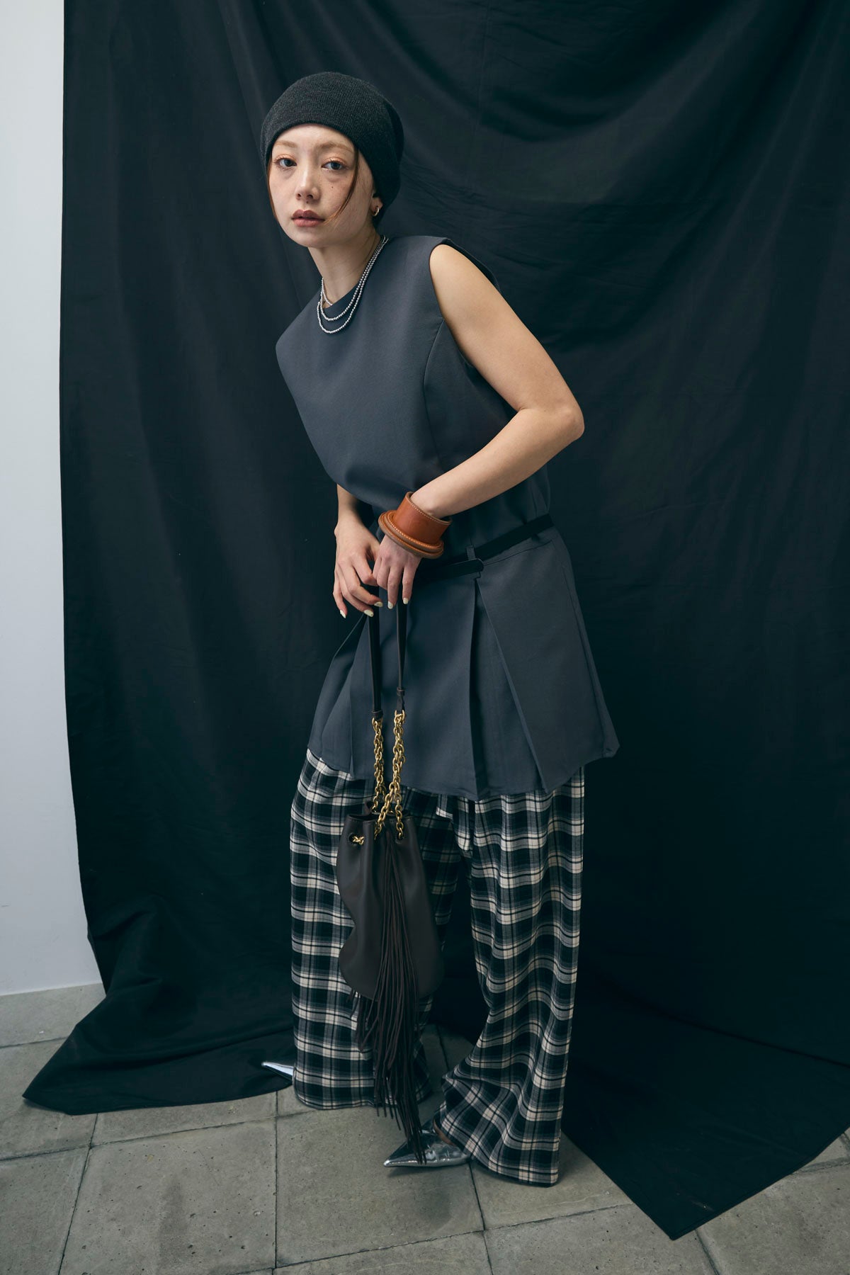[予約/SET]ベルト付きプリーツチュニック+チェックパンツ(2set)