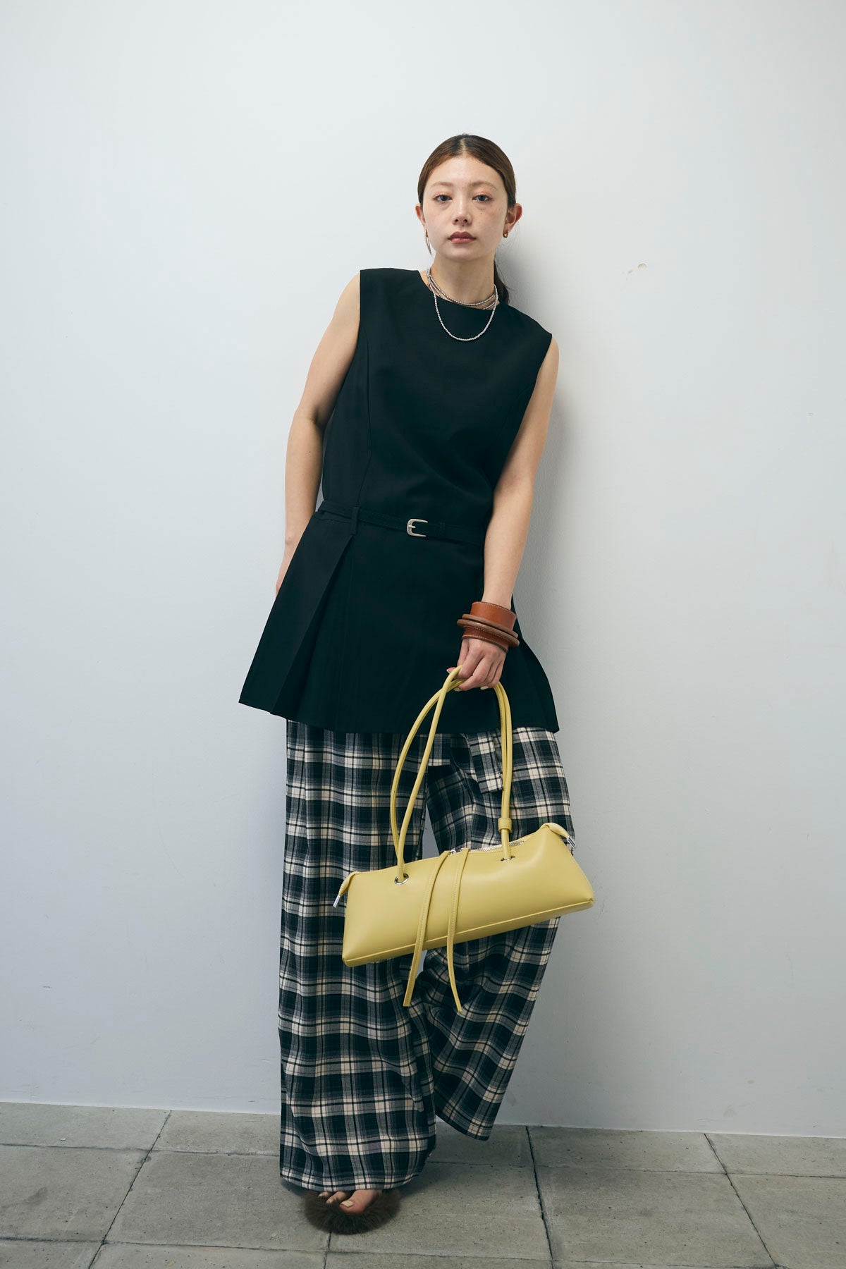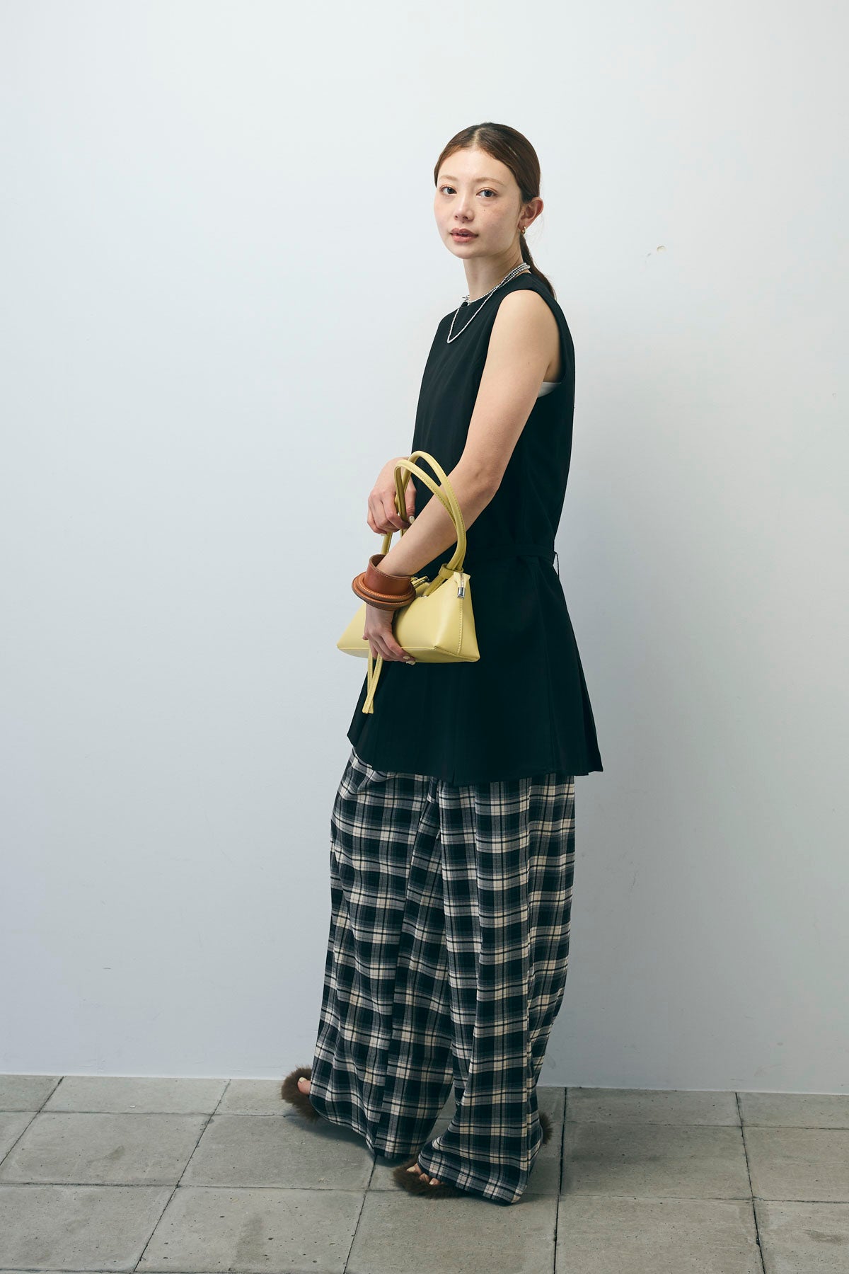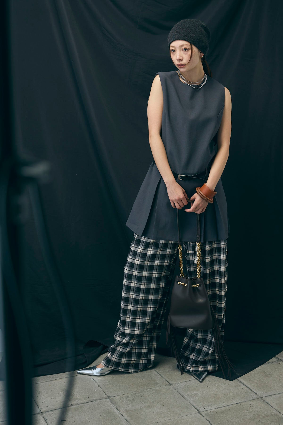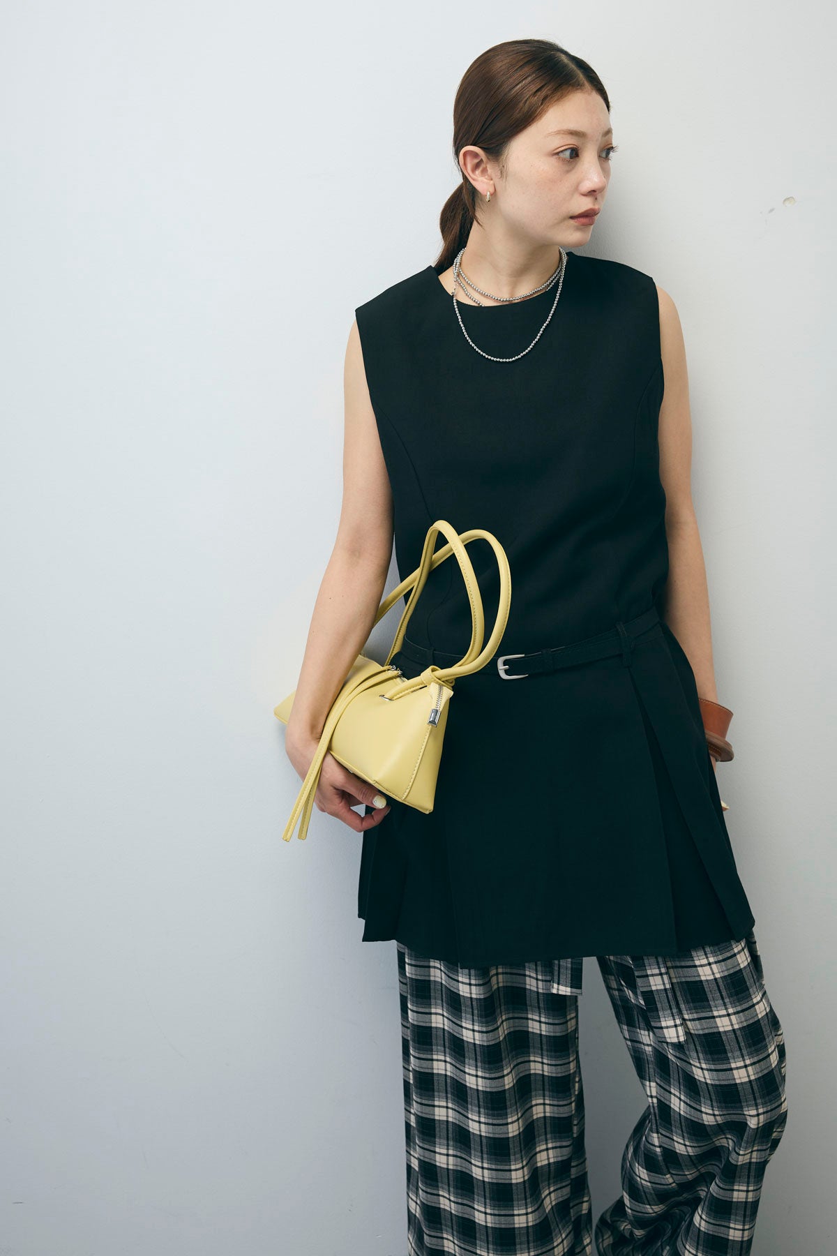 [予約/SET]ベルト付きプリーツチュニック+チェックパンツ(2set)