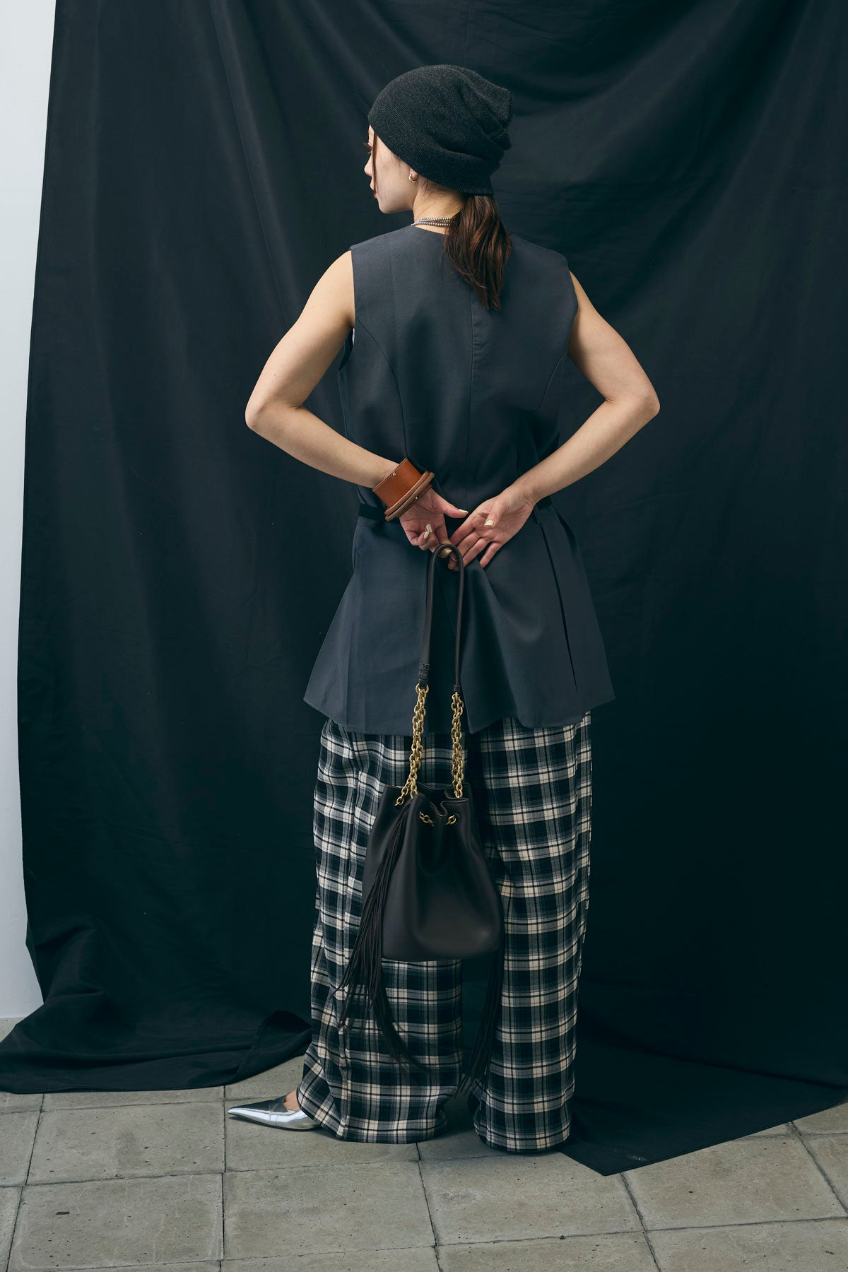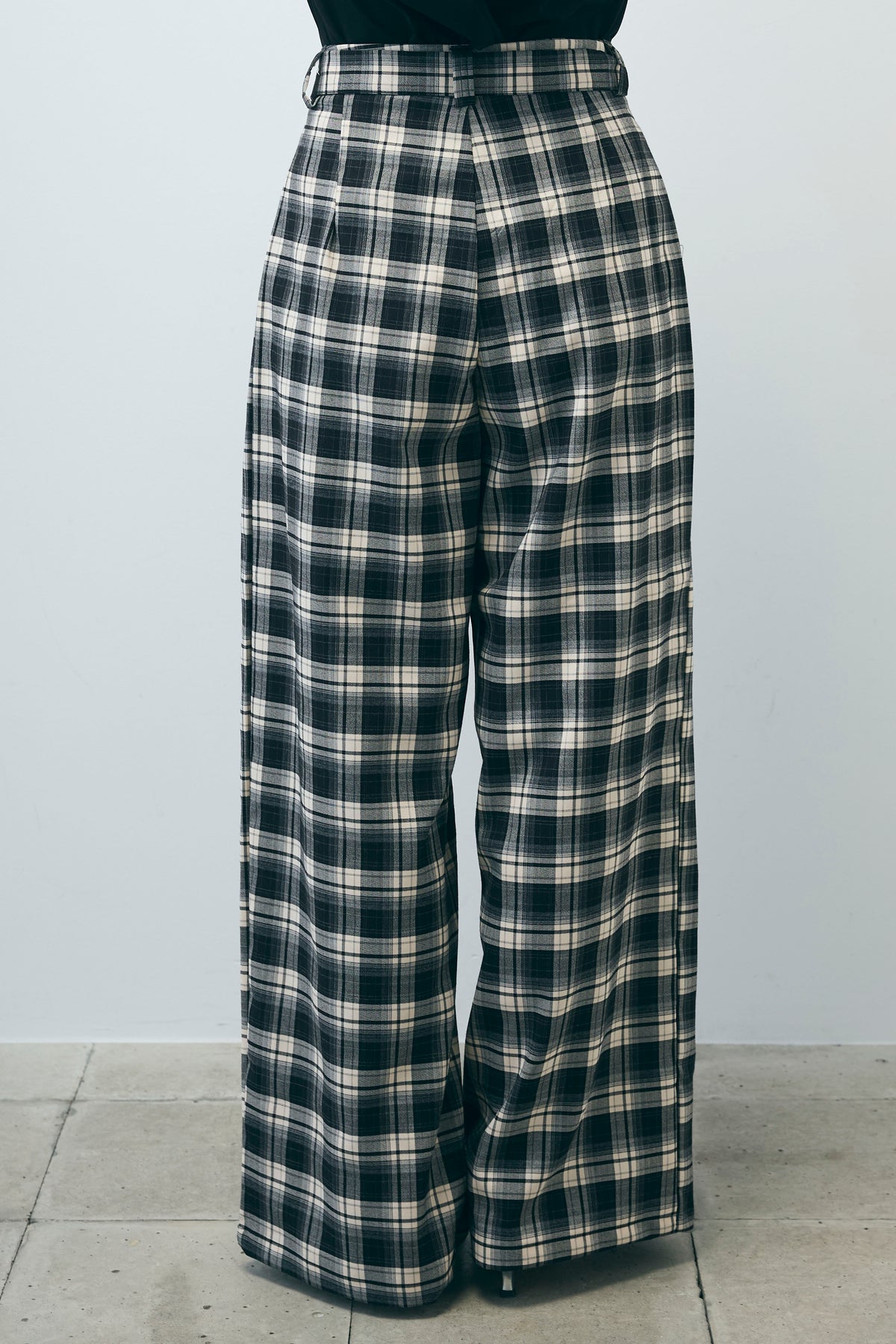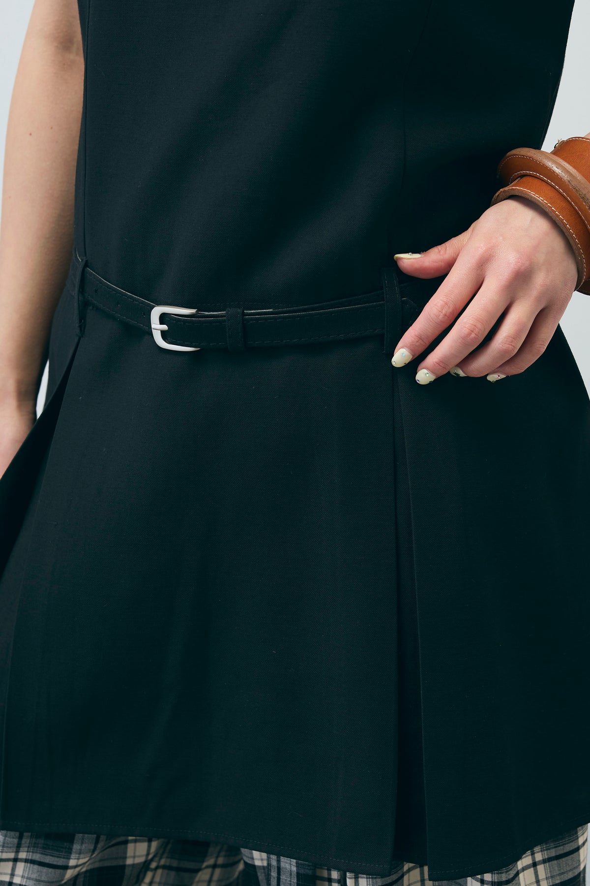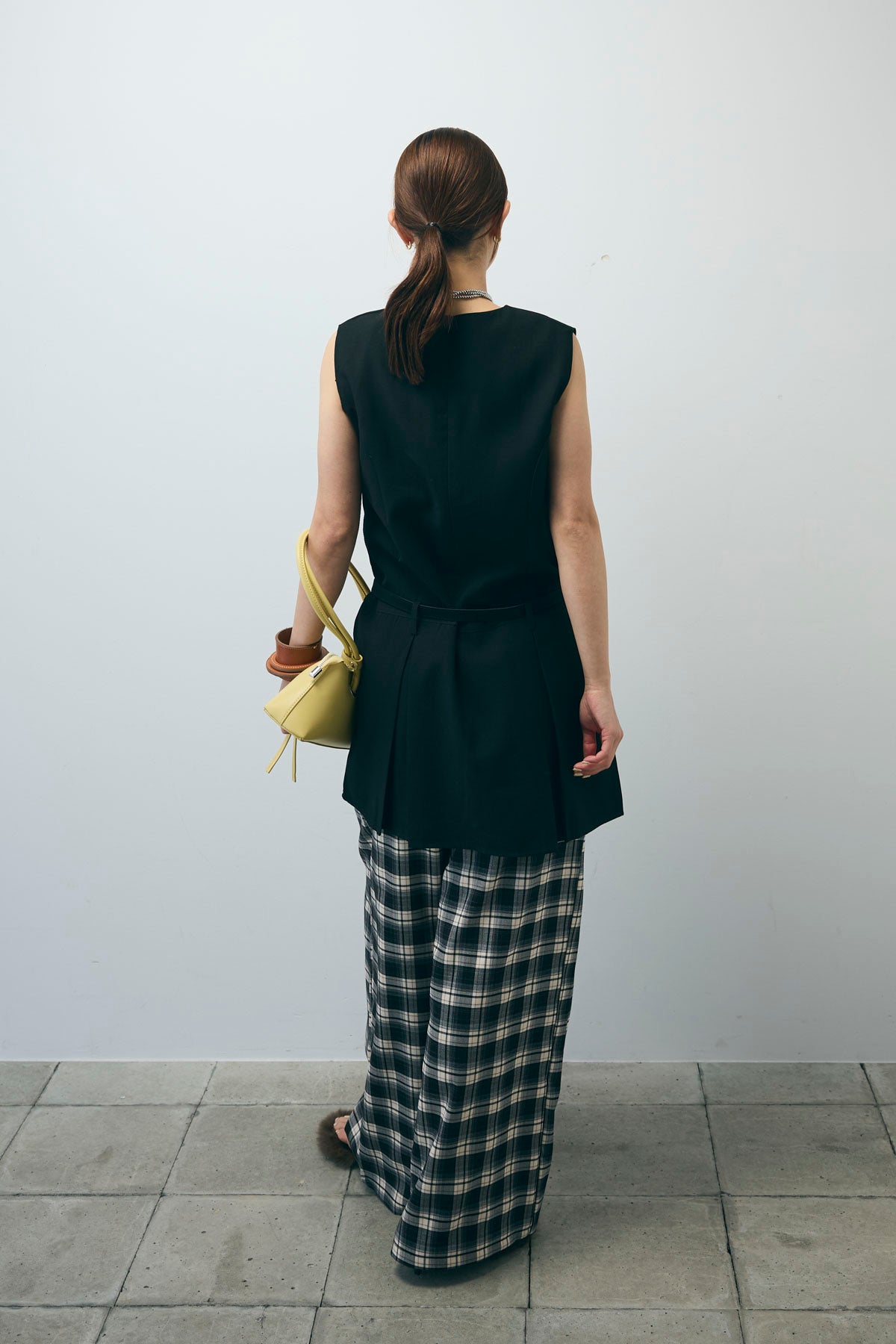 [予約/SET]ベルト付きプリーツチュニック+チェックパンツ(2set)