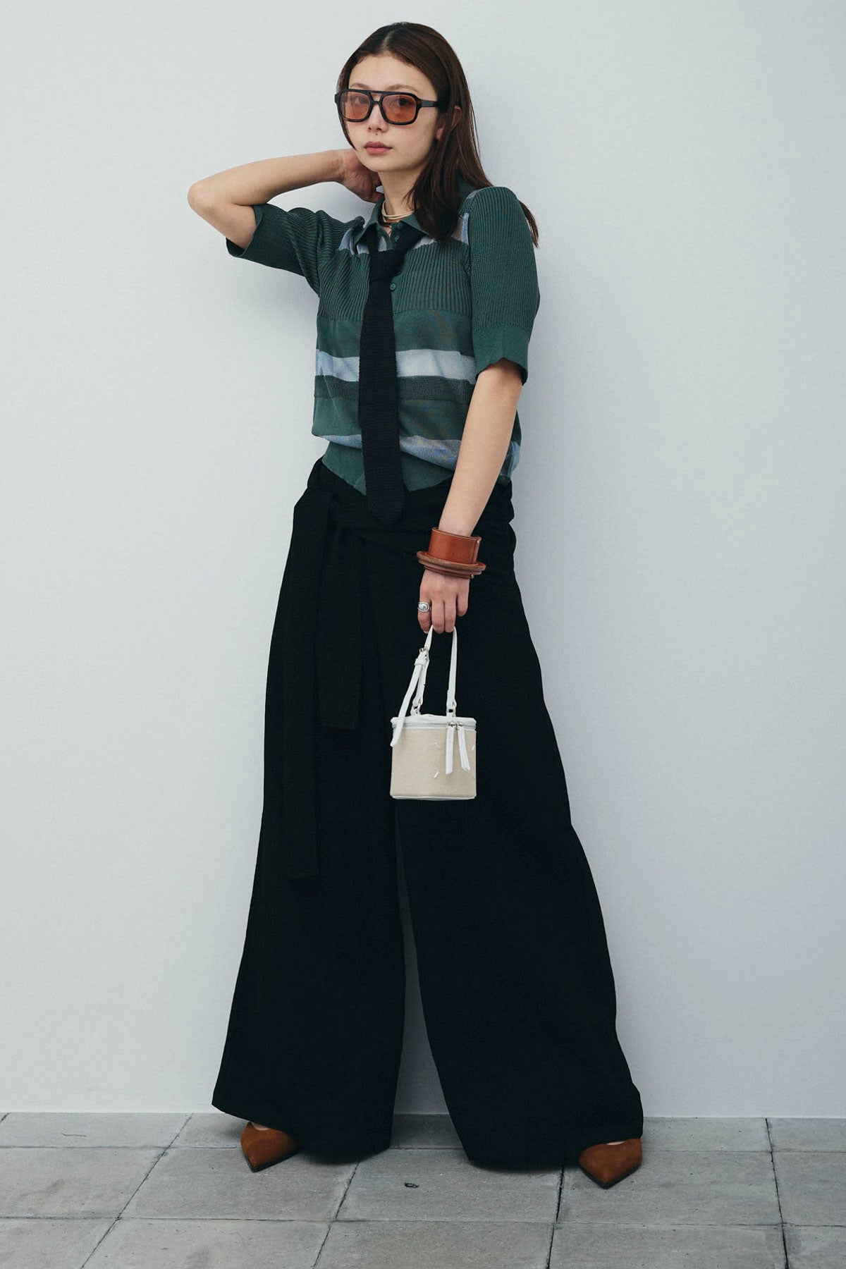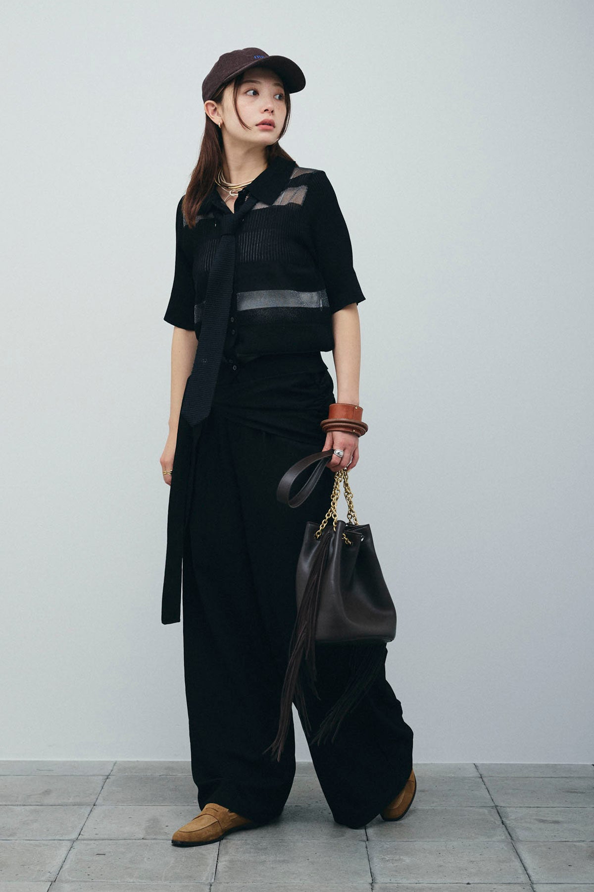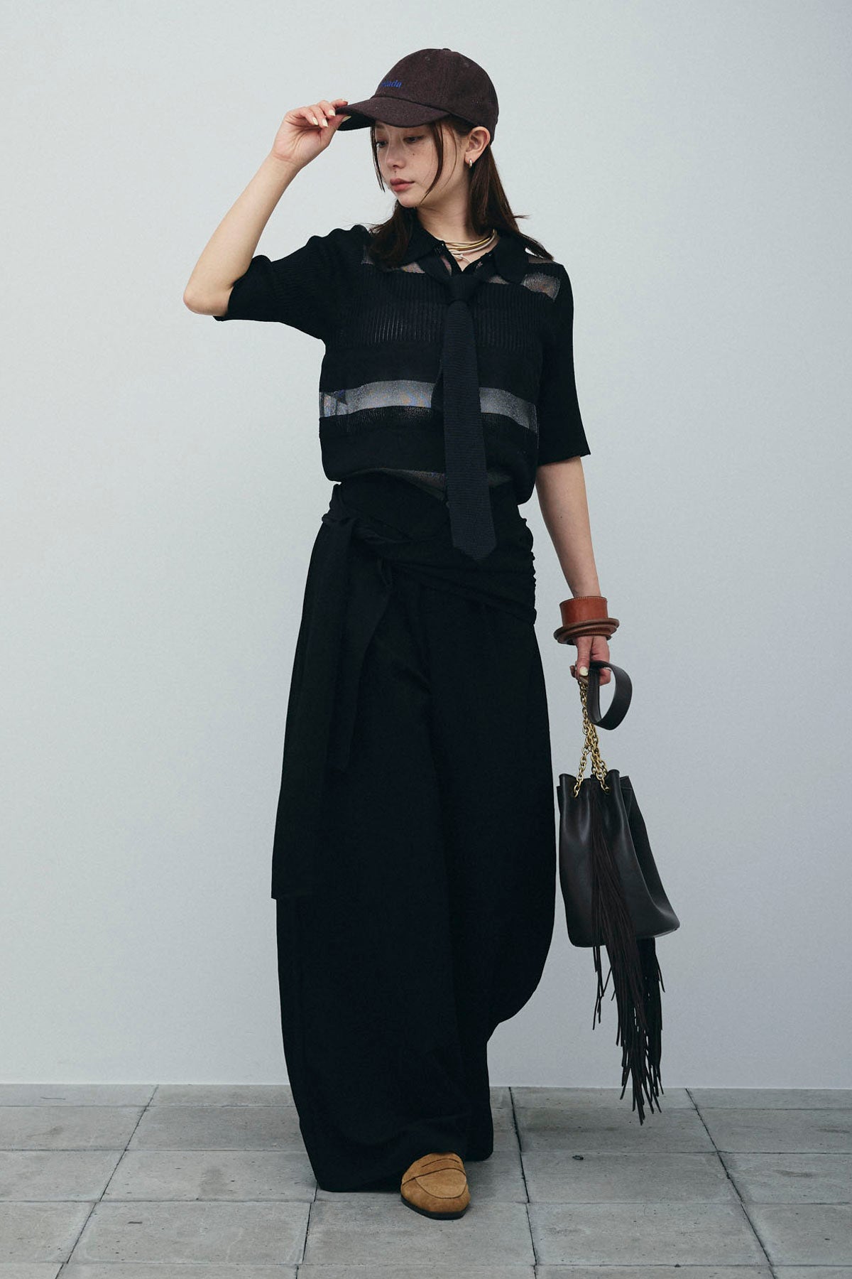 [予約/SET]シアーミックス編みニットポロ+剣先三角シルクニットタイ+サイドラップワイドパンツ(3set)