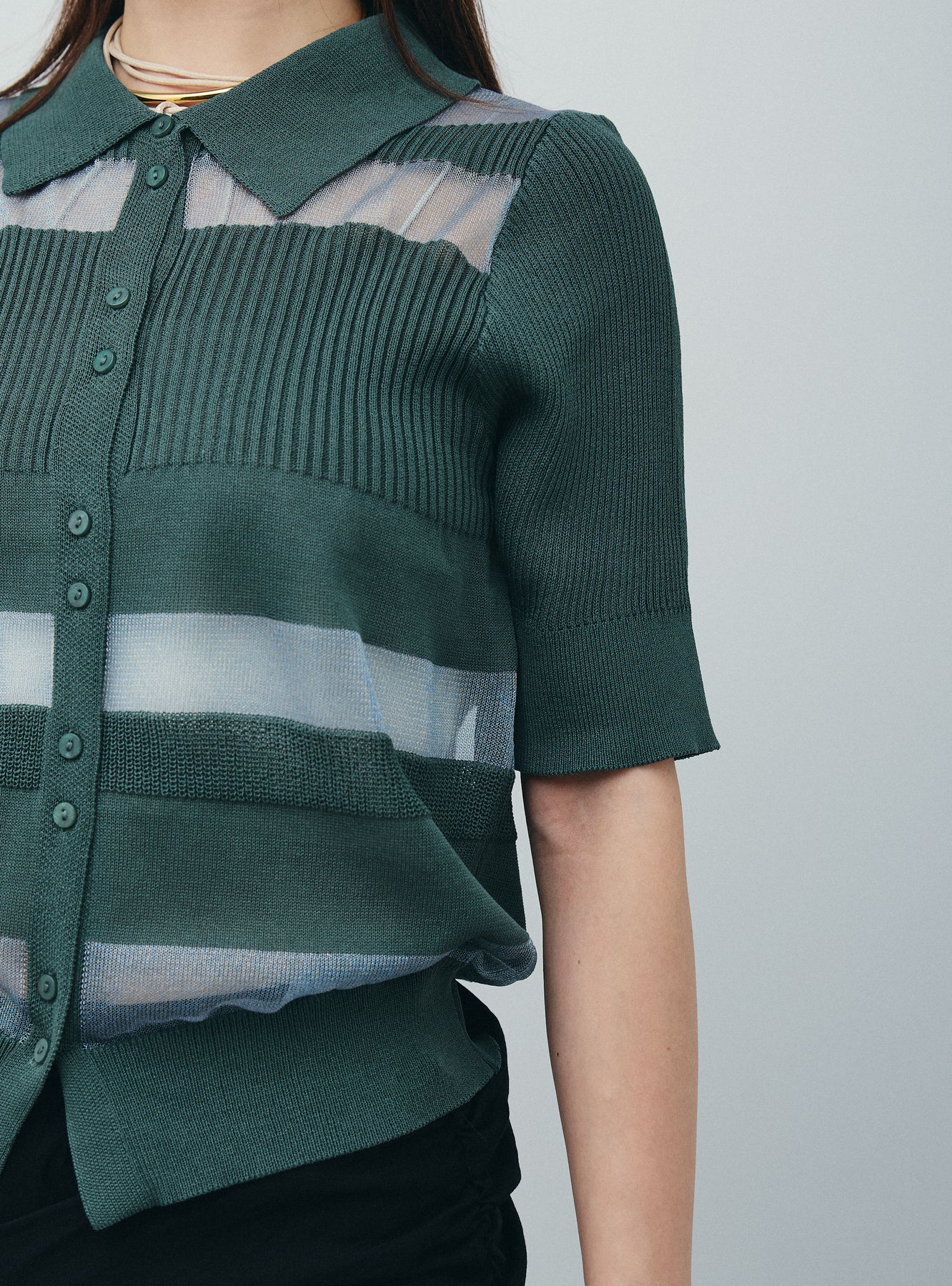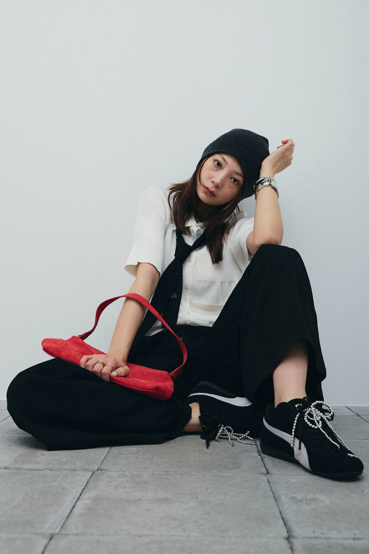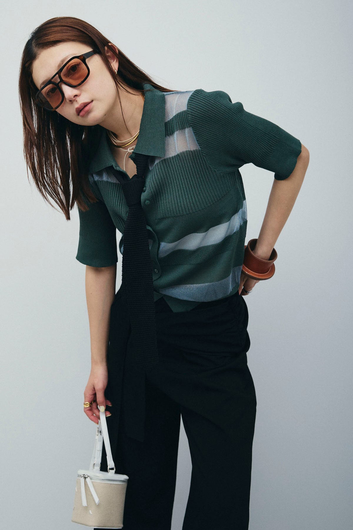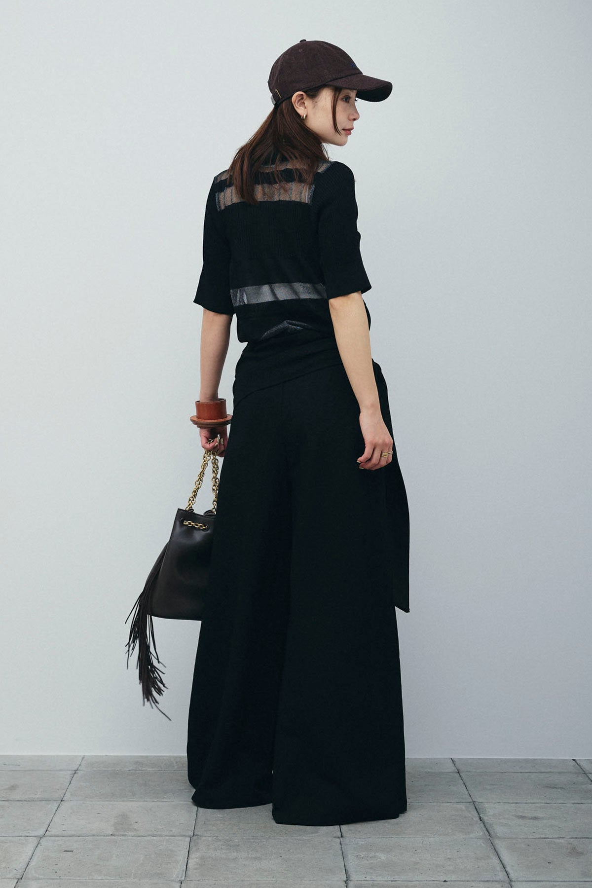 [予約/SET]シアーミックス編みニットポロ+剣先三角シルクニットタイ+サイドラップワイドパンツ(3set)