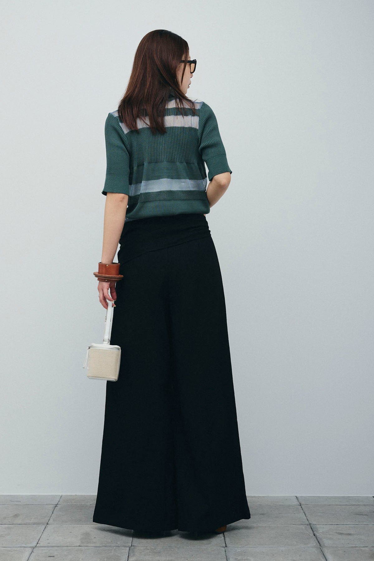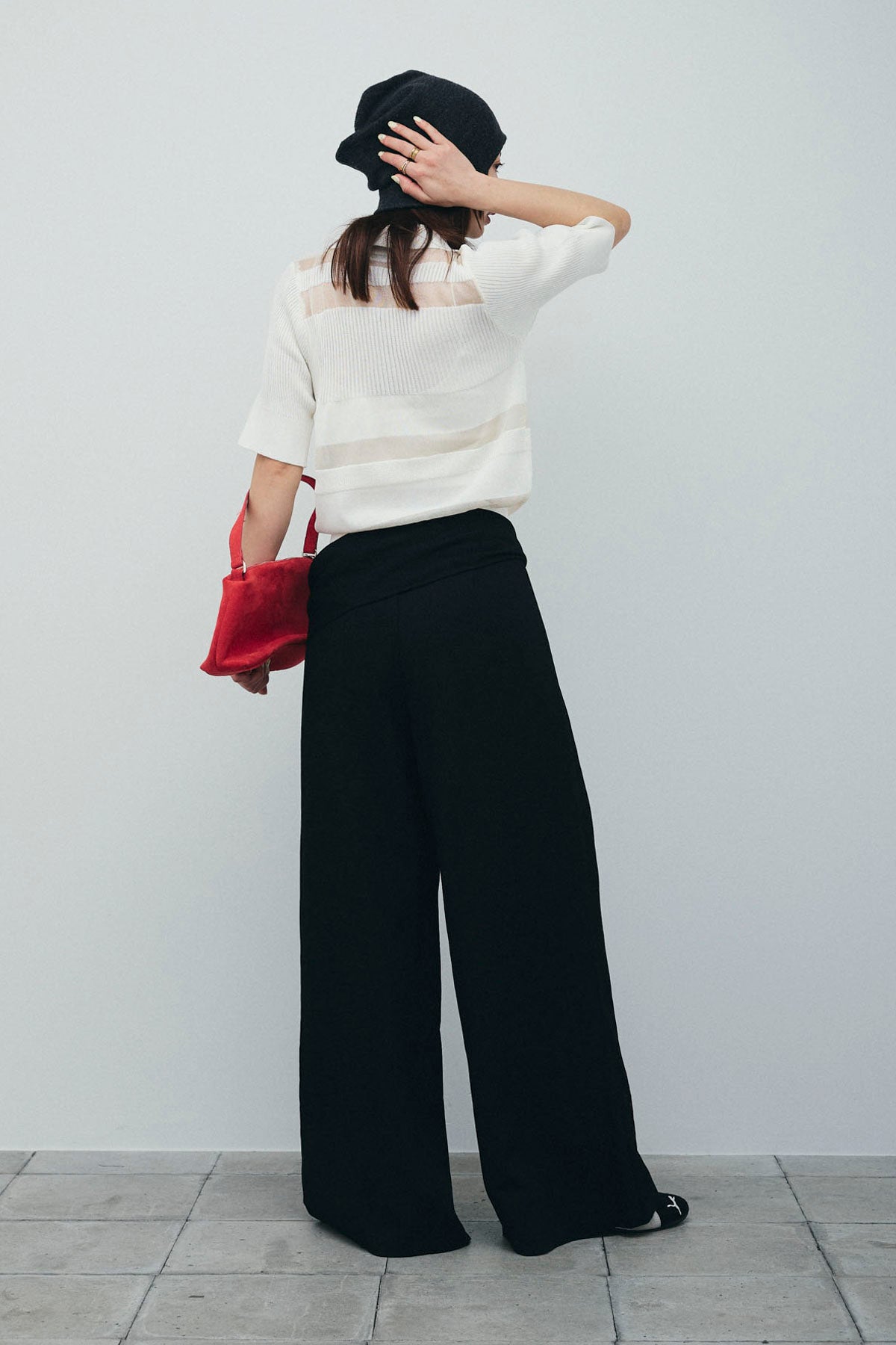 [予約/SET]シアーミックス編みニットポロ+サイドラップワイドパンツ(2set)