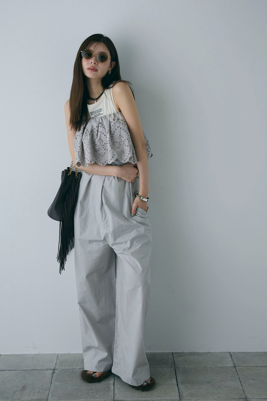 [予約/SET]リネンベスト+ストレッチレースタンク+裾ボタン絞りパンツ(3set)
