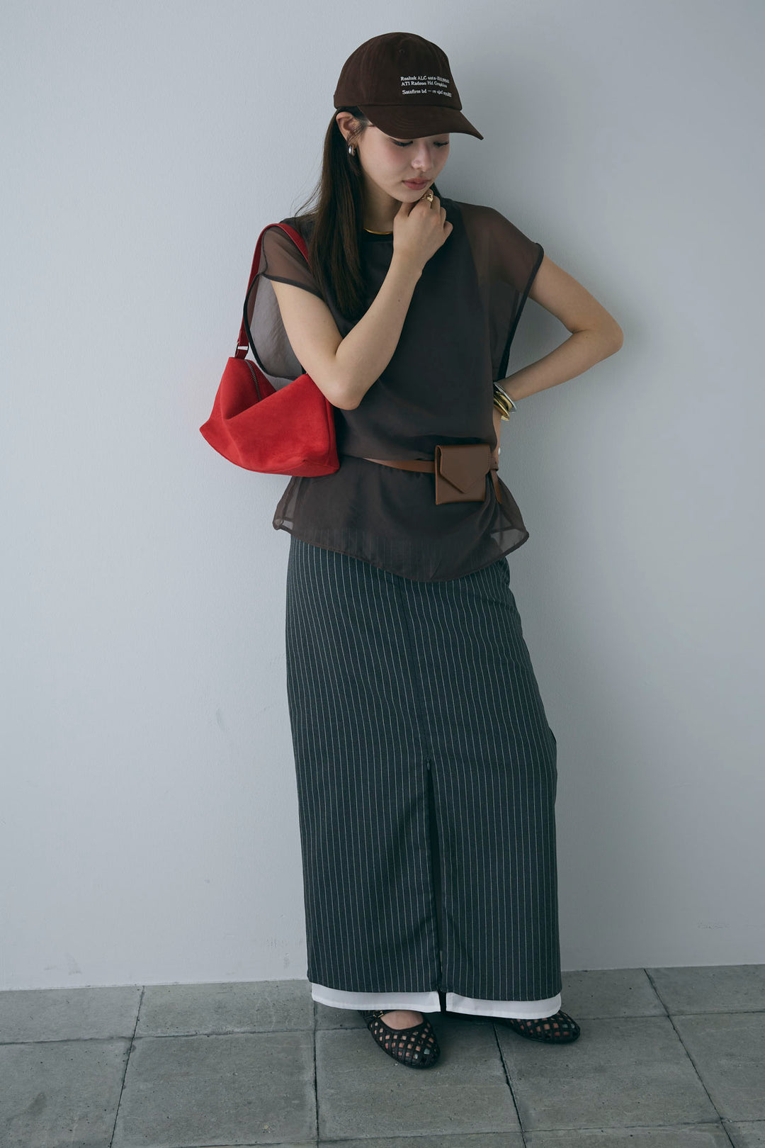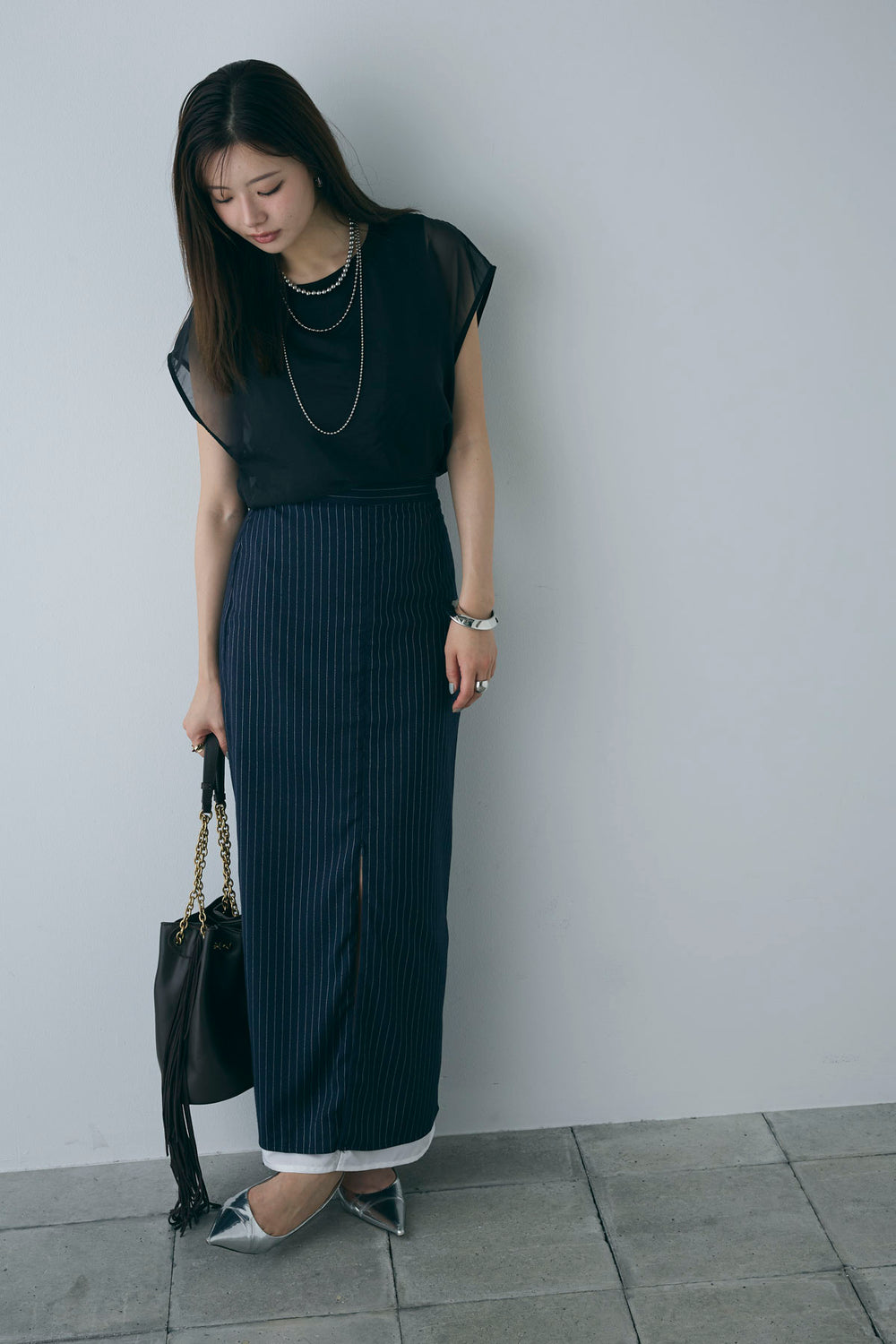 [予約/SET]オーガンジー重ねフレンチスリーブPO+ストライプストレートスカート(2set)