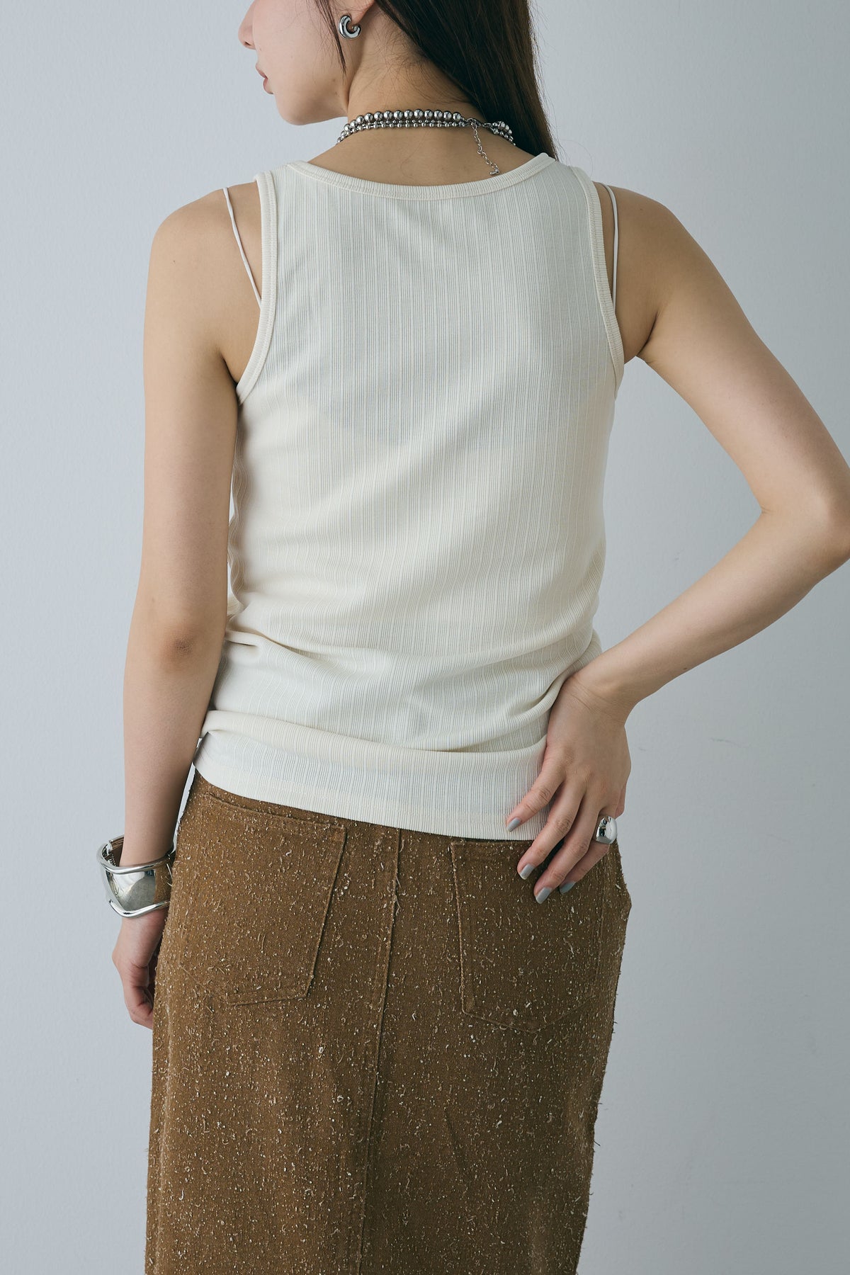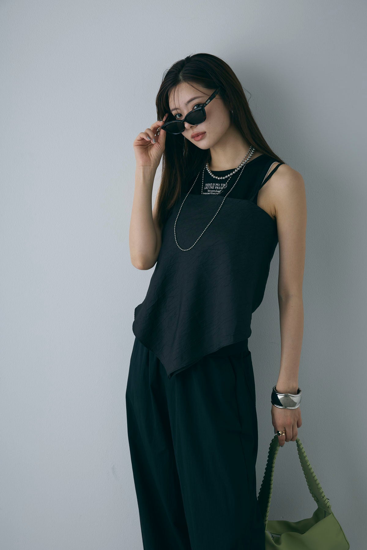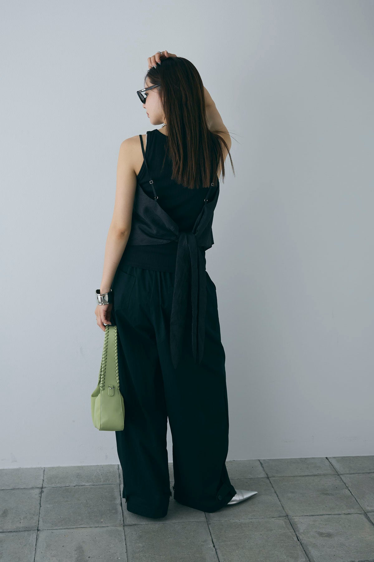[予約/SET]リブロゴタンク+スカーフ風バックリボンキャミソール+裾ボタン絞りパンツ(3set)