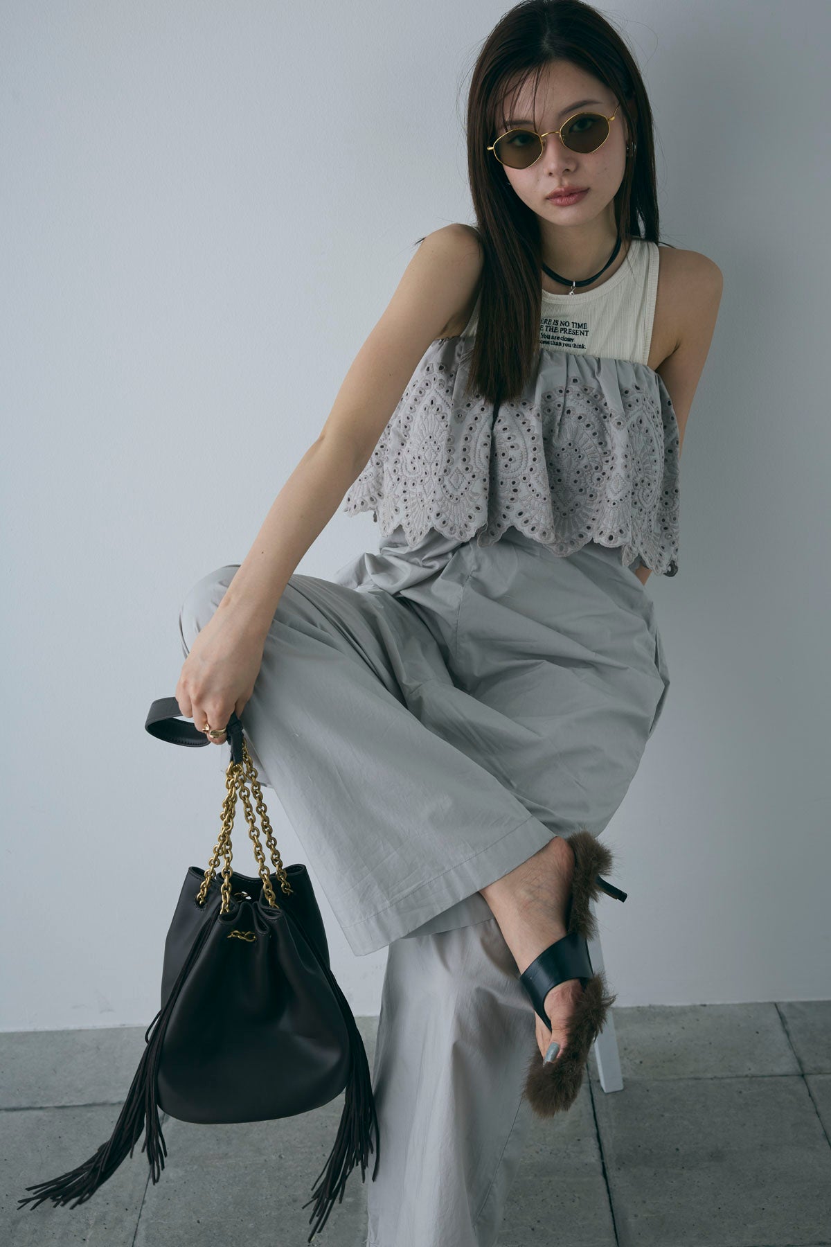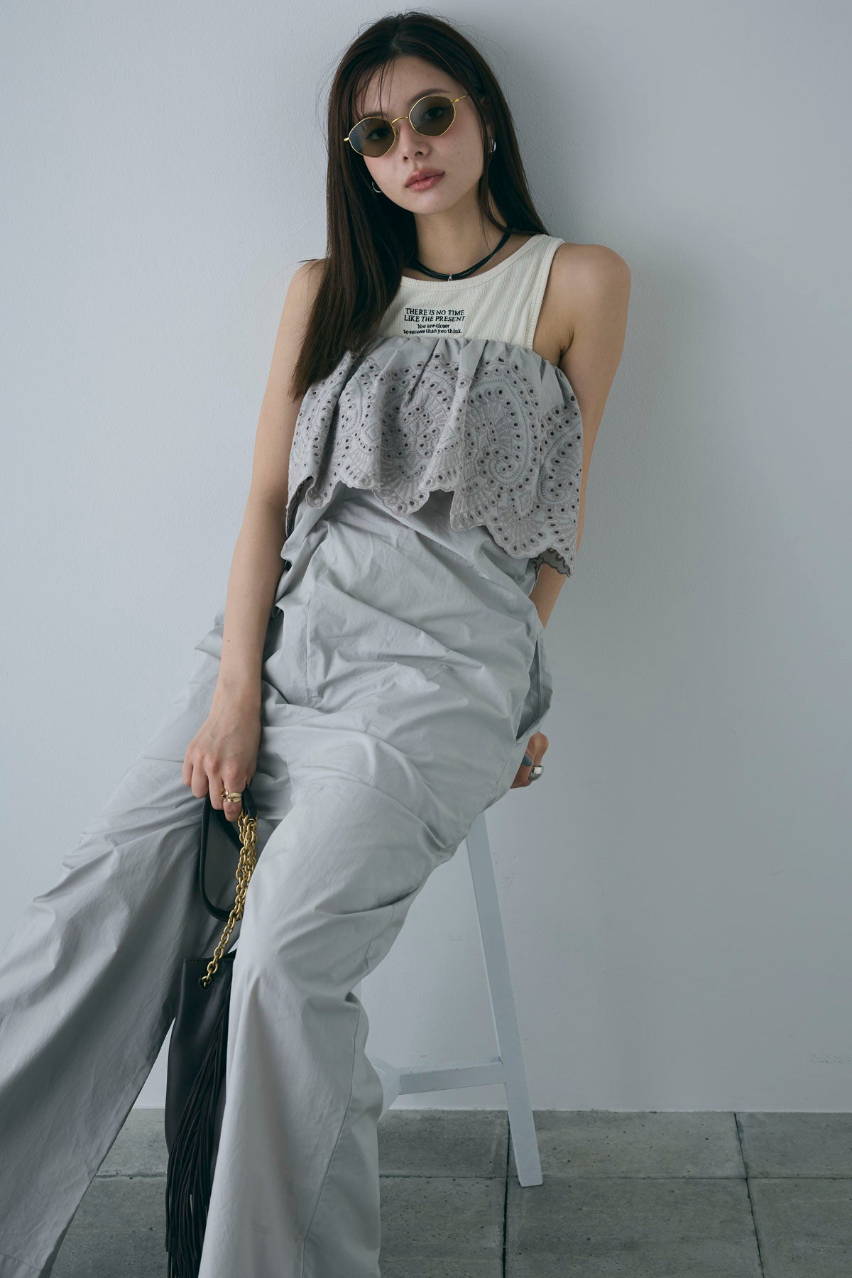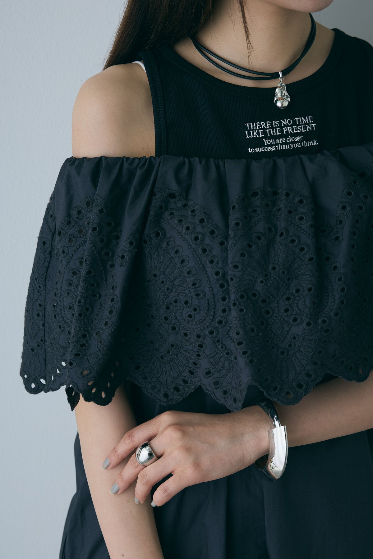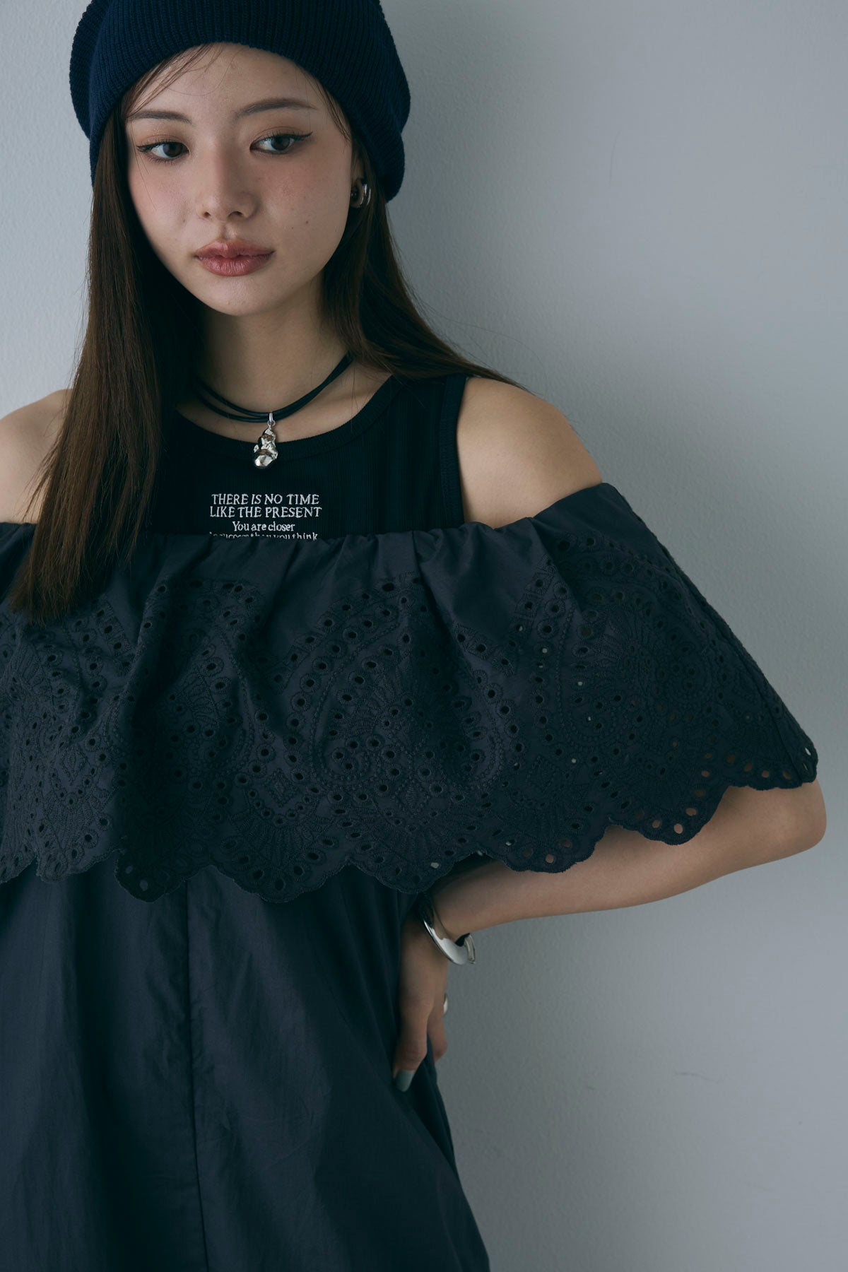 [予約/SET]リブロゴタンク+オフショルレースコンビネゾン(2set)