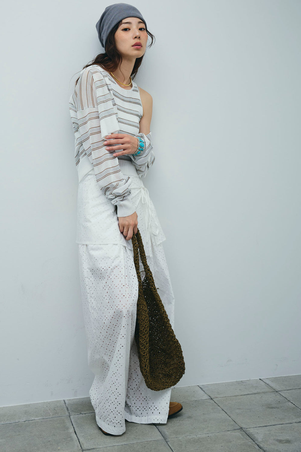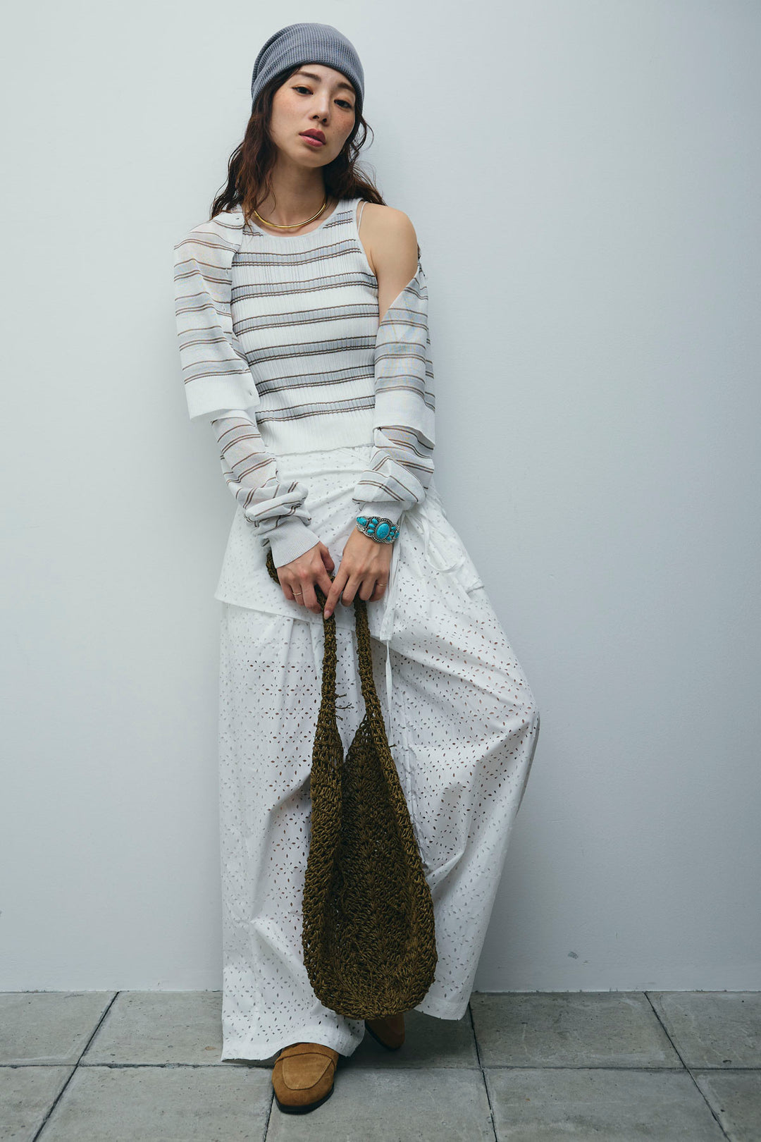 [予約/SET]ランダムボーダーシアーカーデ+アイレットレースラップ付きパンツ(2set)