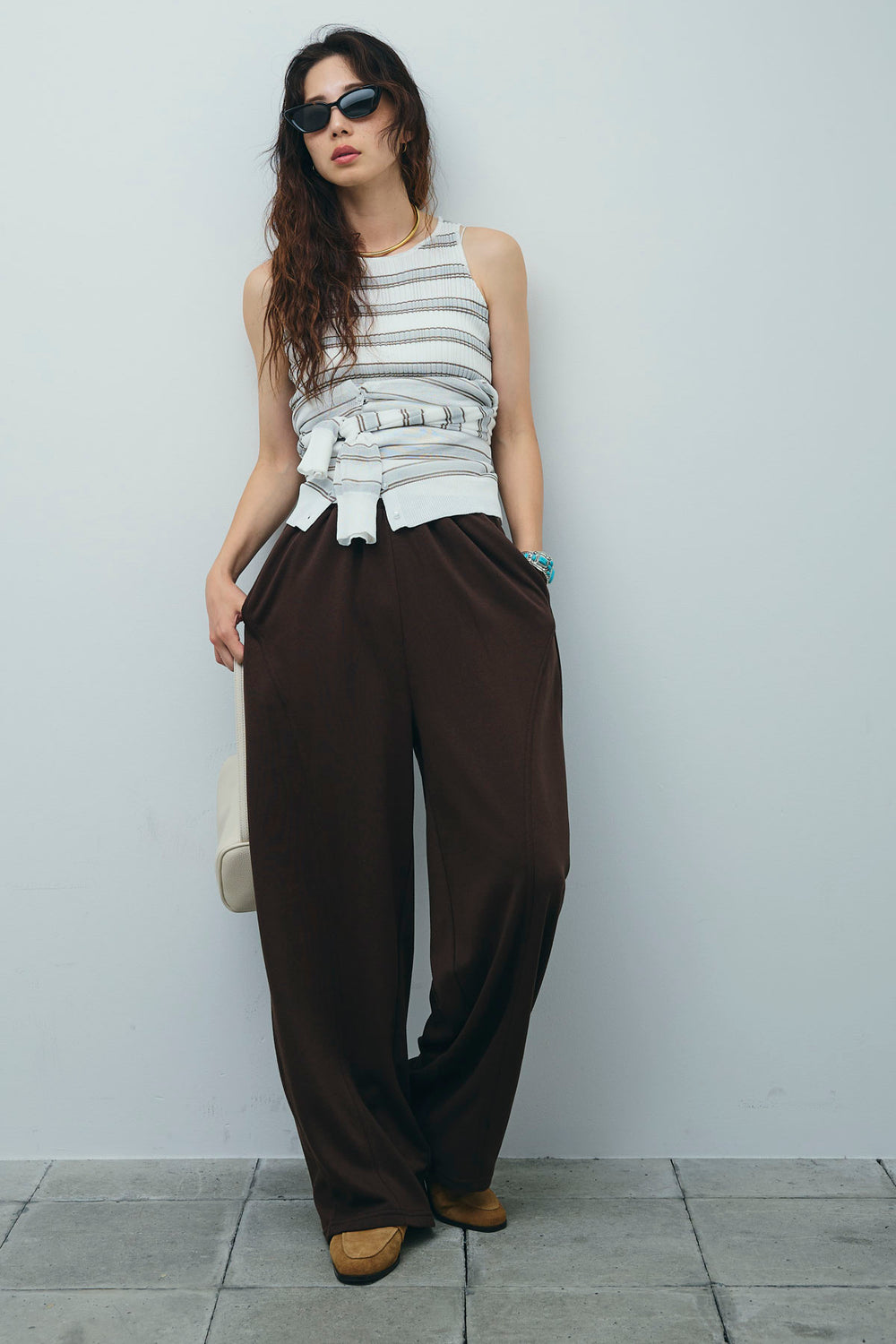 [予約/SET]バックリボンドレープブラウス+サマーツイードタックパンツ(2set)