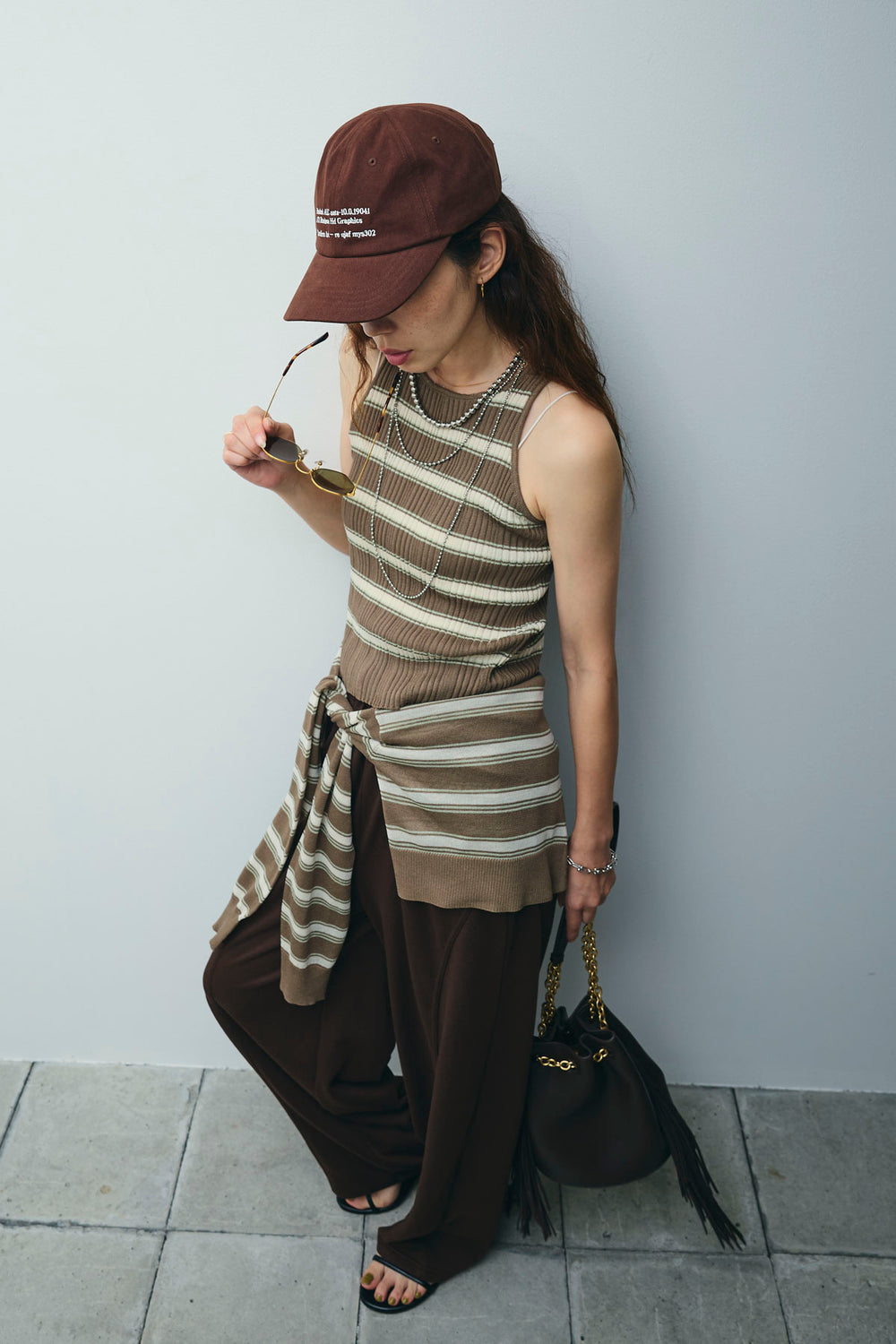 [予約/SET]ランダムボーダーアメスリタンク+ランダムボーダーシアーカーデ+アイレットレースラップ付きパンツ(3set)