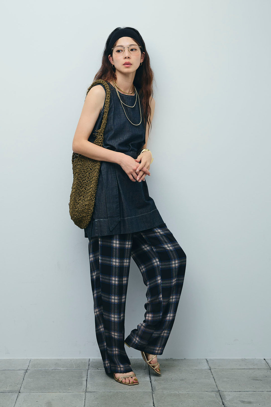 [予約/SET]オーバーサイズデニムベスト+チェックサッカー地パンツ(2set)